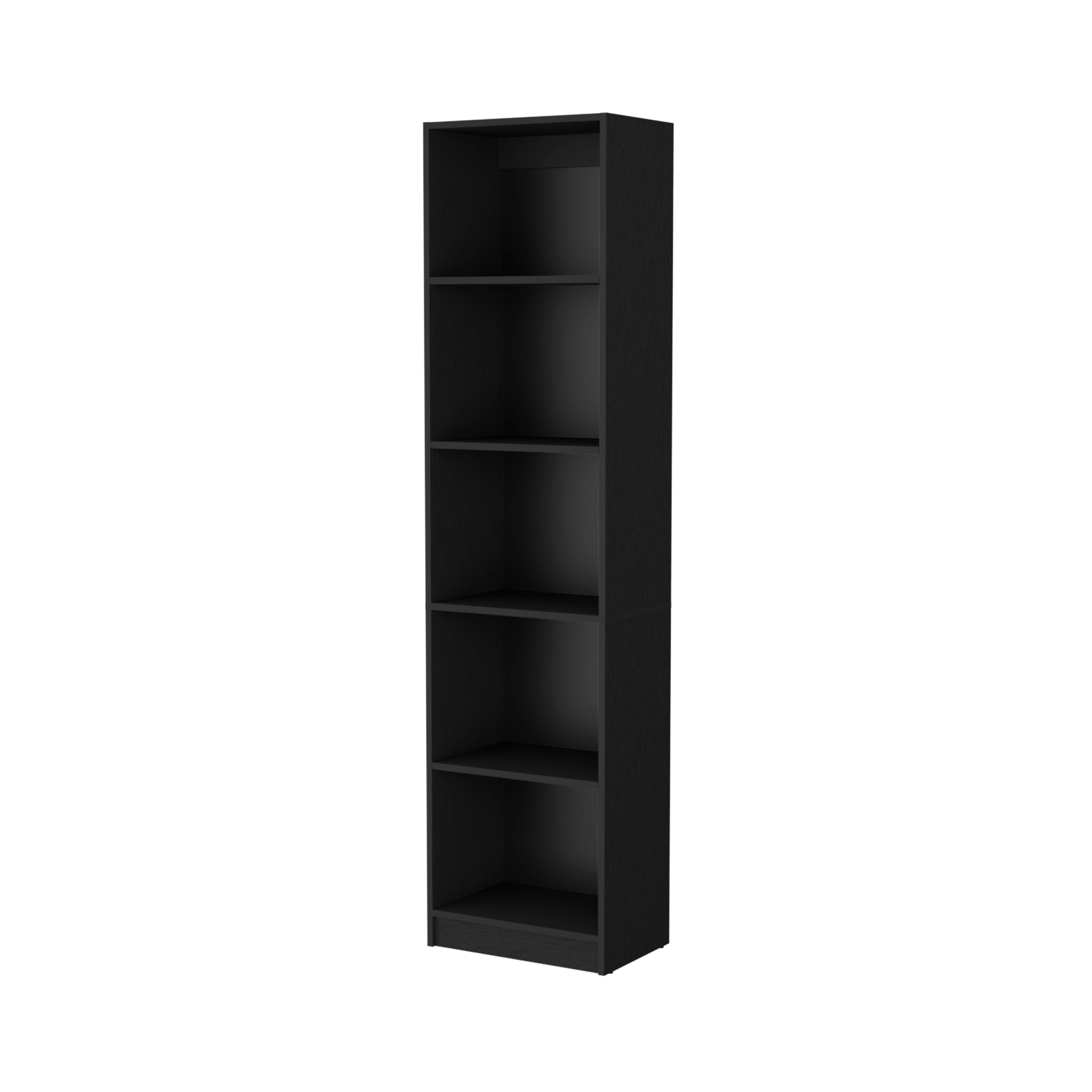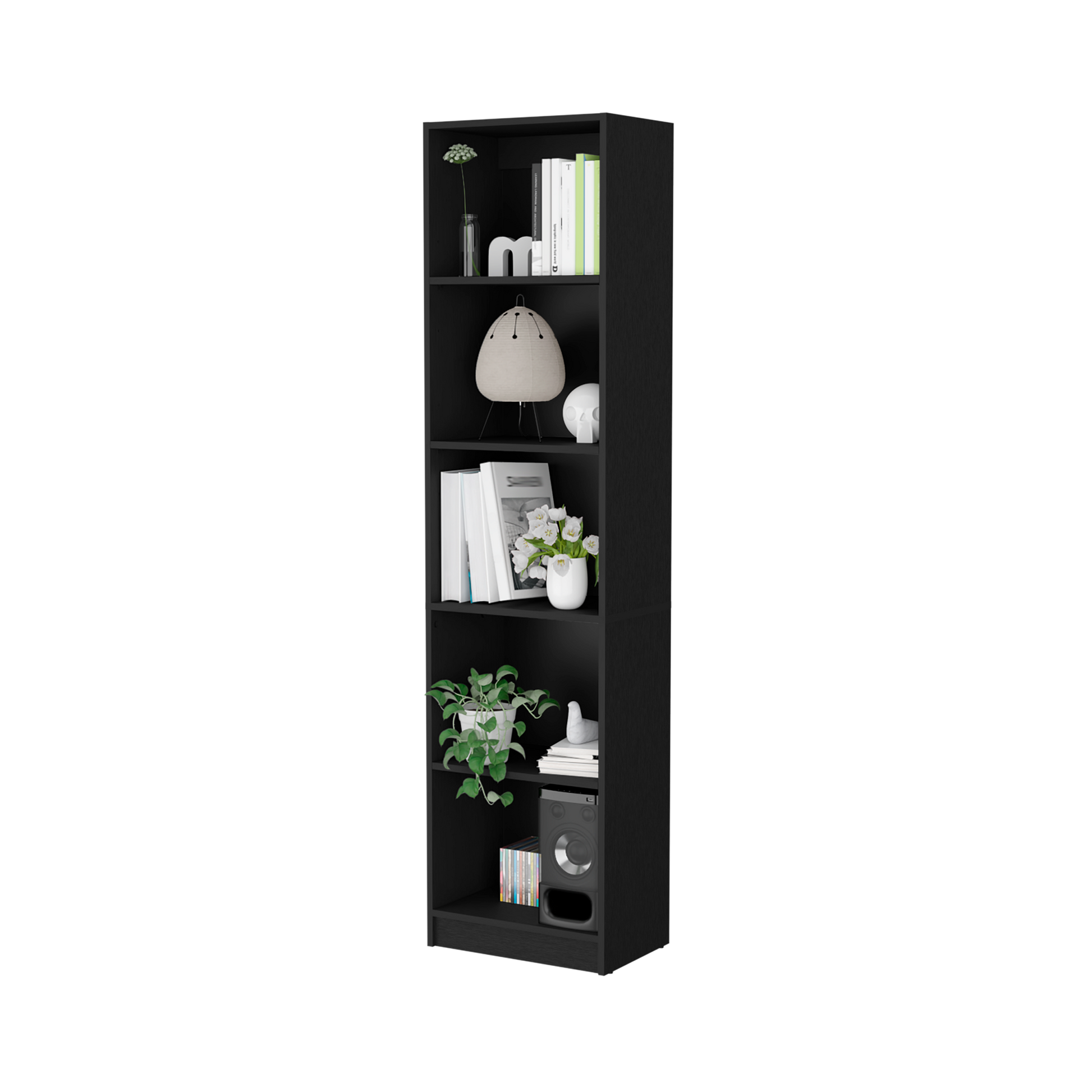 Sutton Slim Bookcase With Modern 5 Shelf Design Black Particle Board Engineered Wood