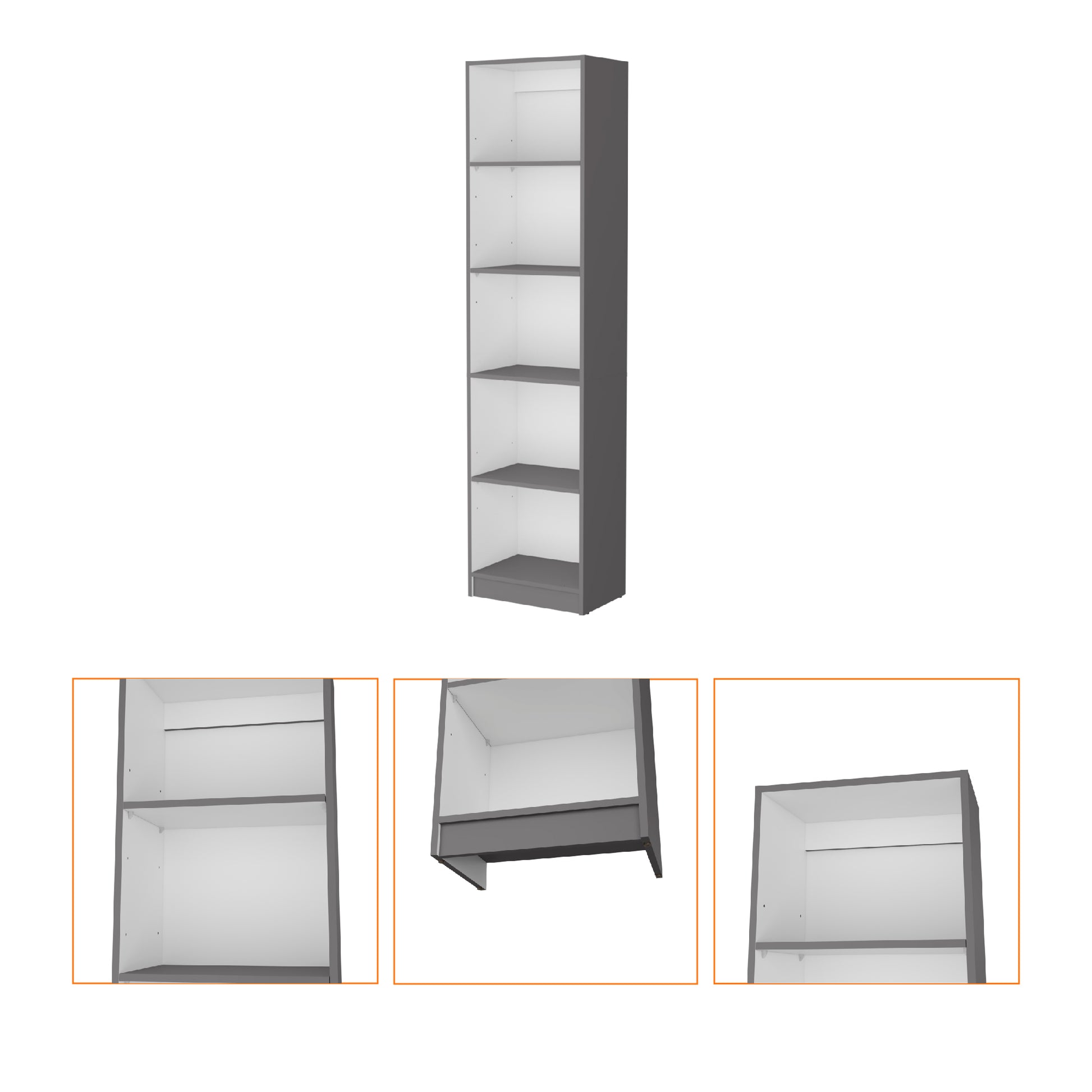 Sutton Slim Bookcase With Modern 5 Shelf Design Vertical 5 Or More Spaces Multicolor Open Storage Space Contemporary,Modern Pine Particle Board Engineered Wood