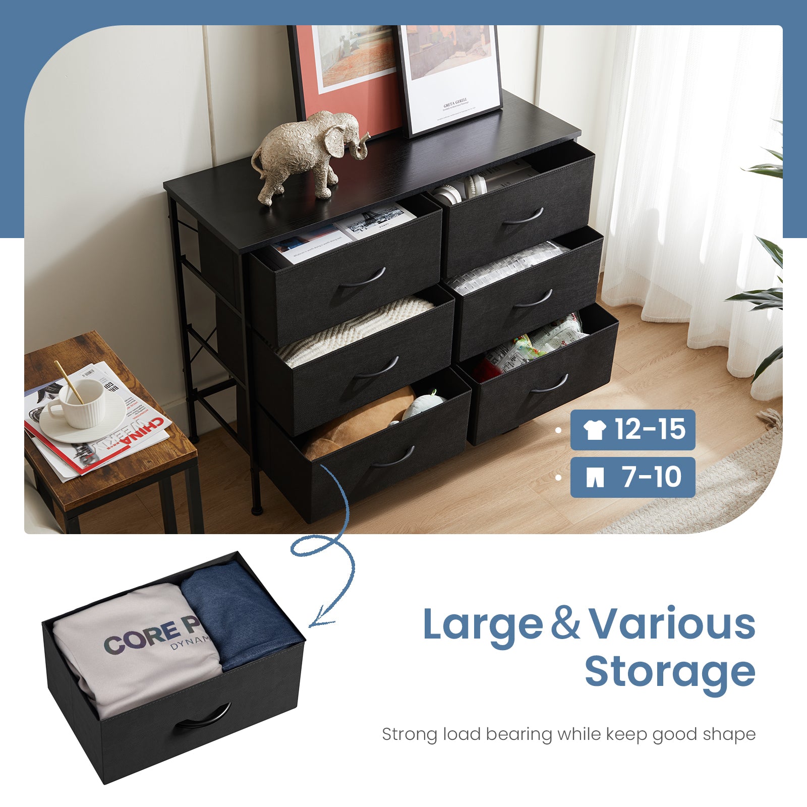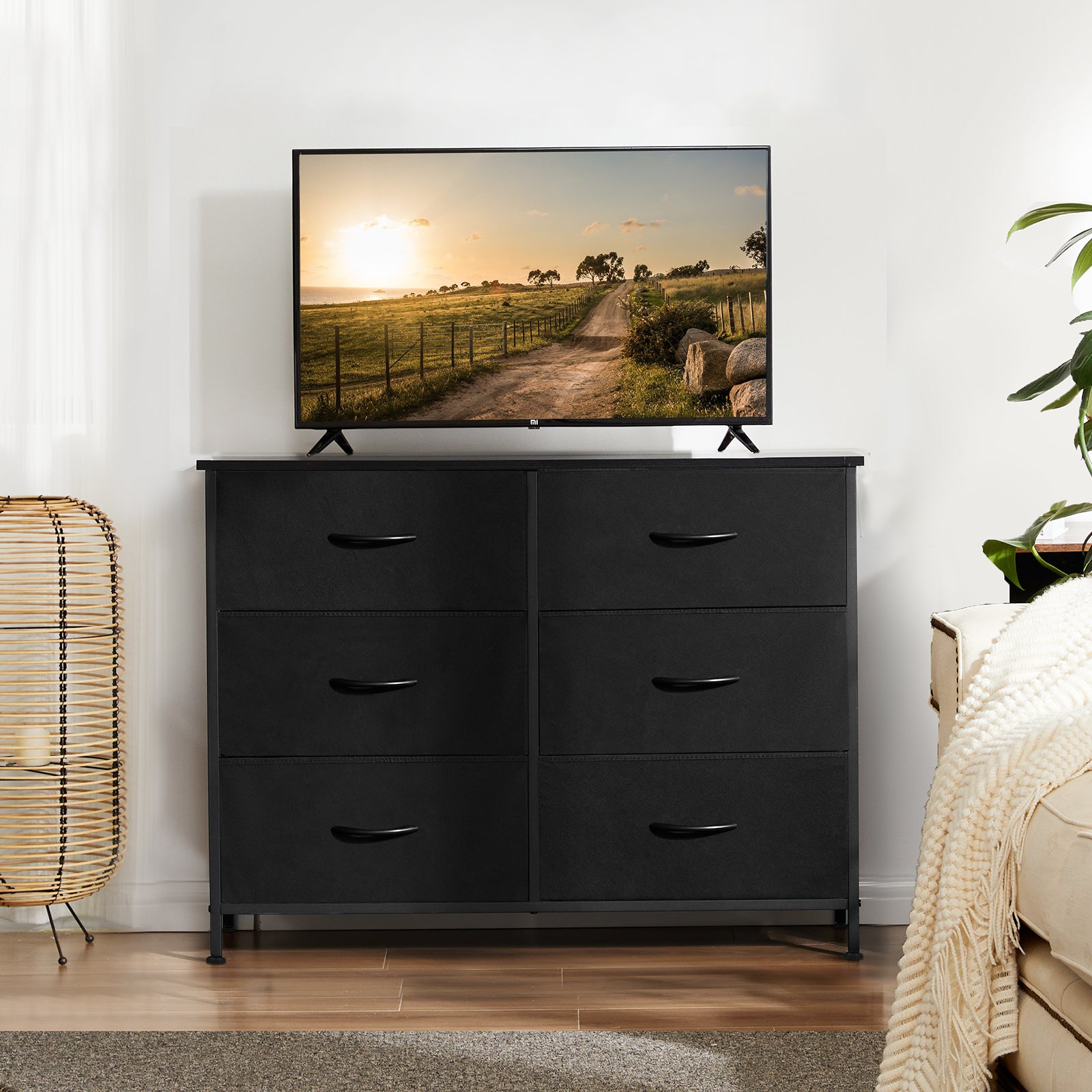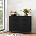 Sweetcrispy Dresser For Bedroom 6 Drawers Wide Fabric Storage Units Chest Of Drawers For Bedroom With Metal Frame And Wooden Top For Tv Black Metal