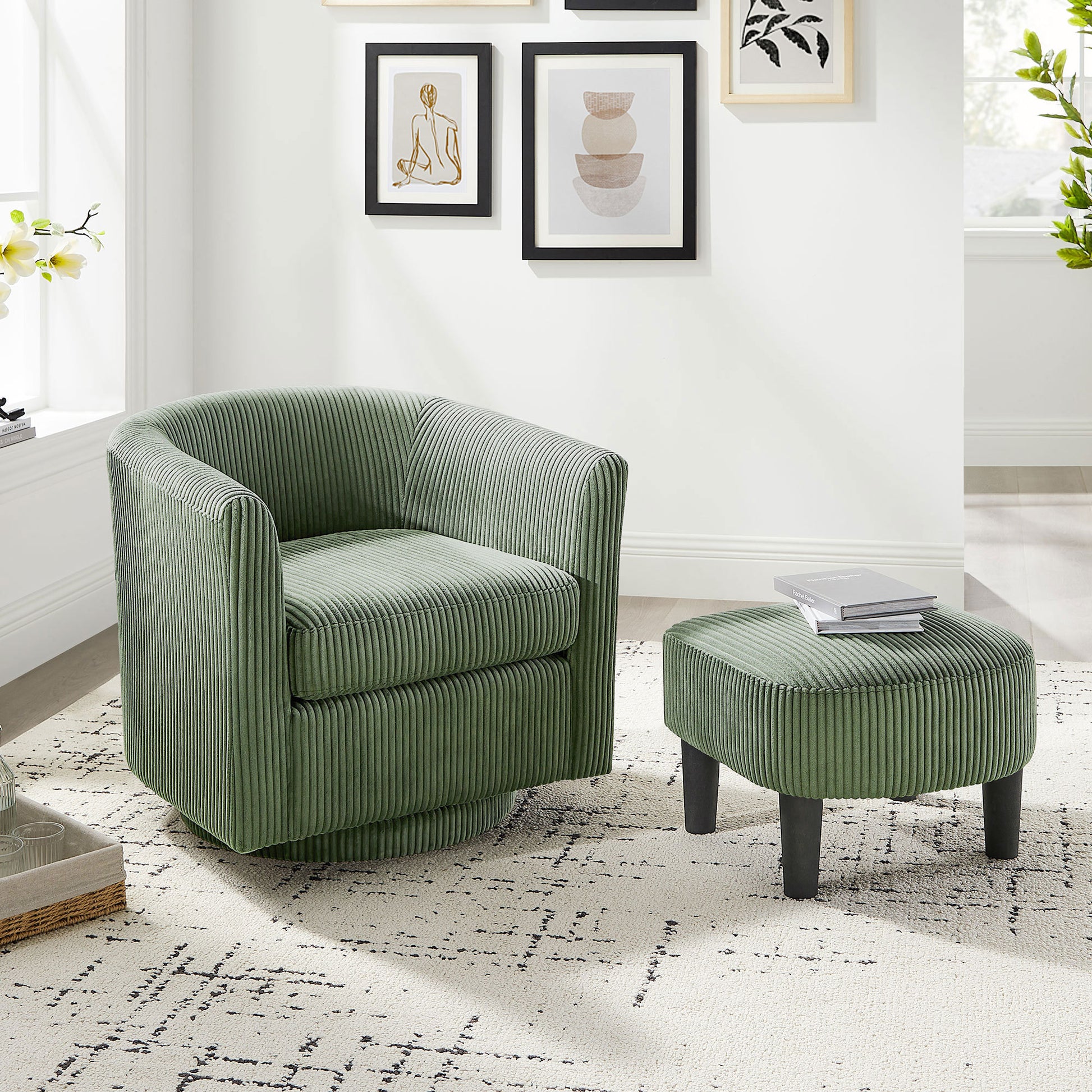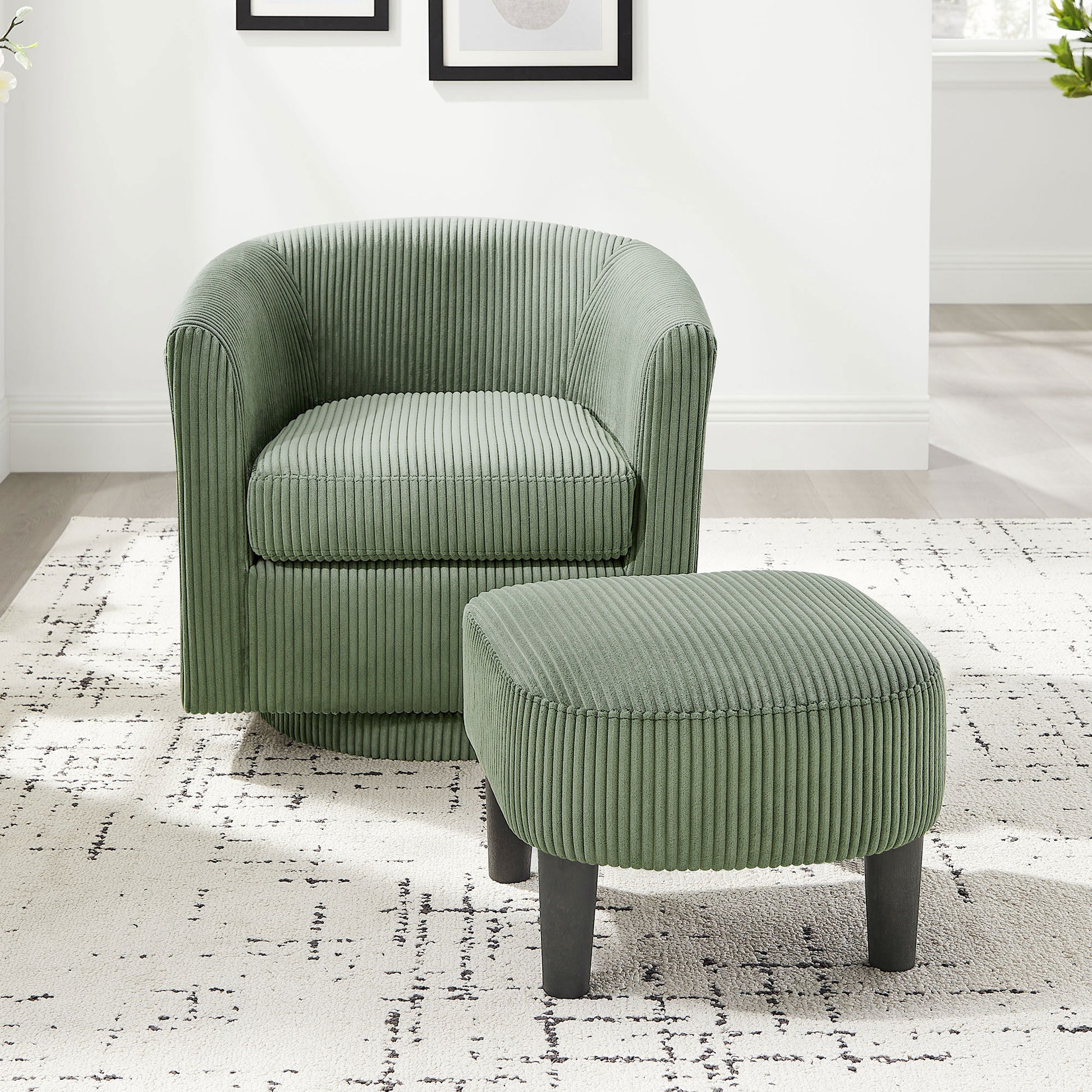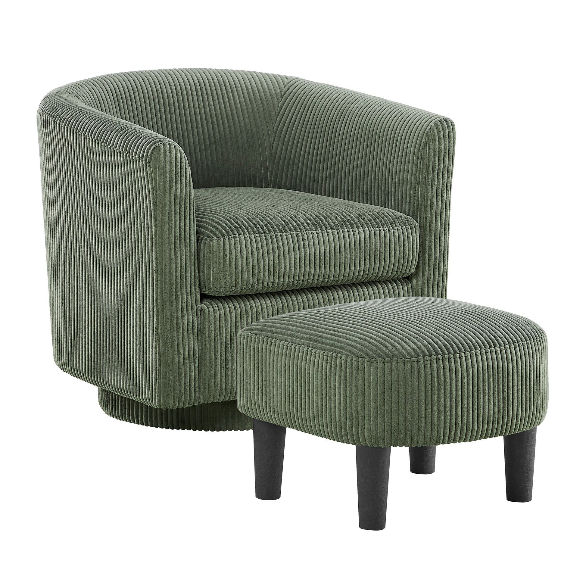 Swivel Accent Chair 360 Comfy Recliner Corduroy Arm Chair Single Sofa With Ottoman For Living Room Bedroom Green Fabric