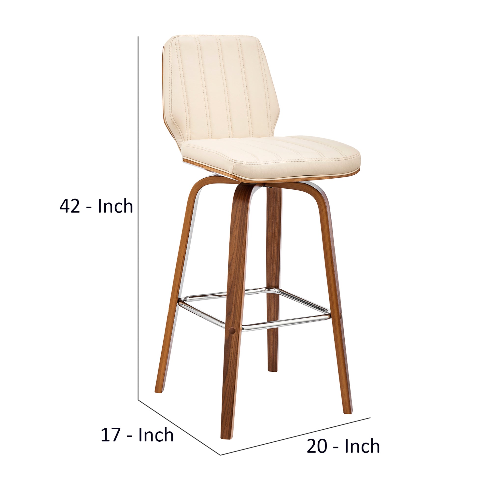 Swivel Barstool With Channel Stitching And Wooden Support, Brown And Cream Cream Brown Wood Metal
