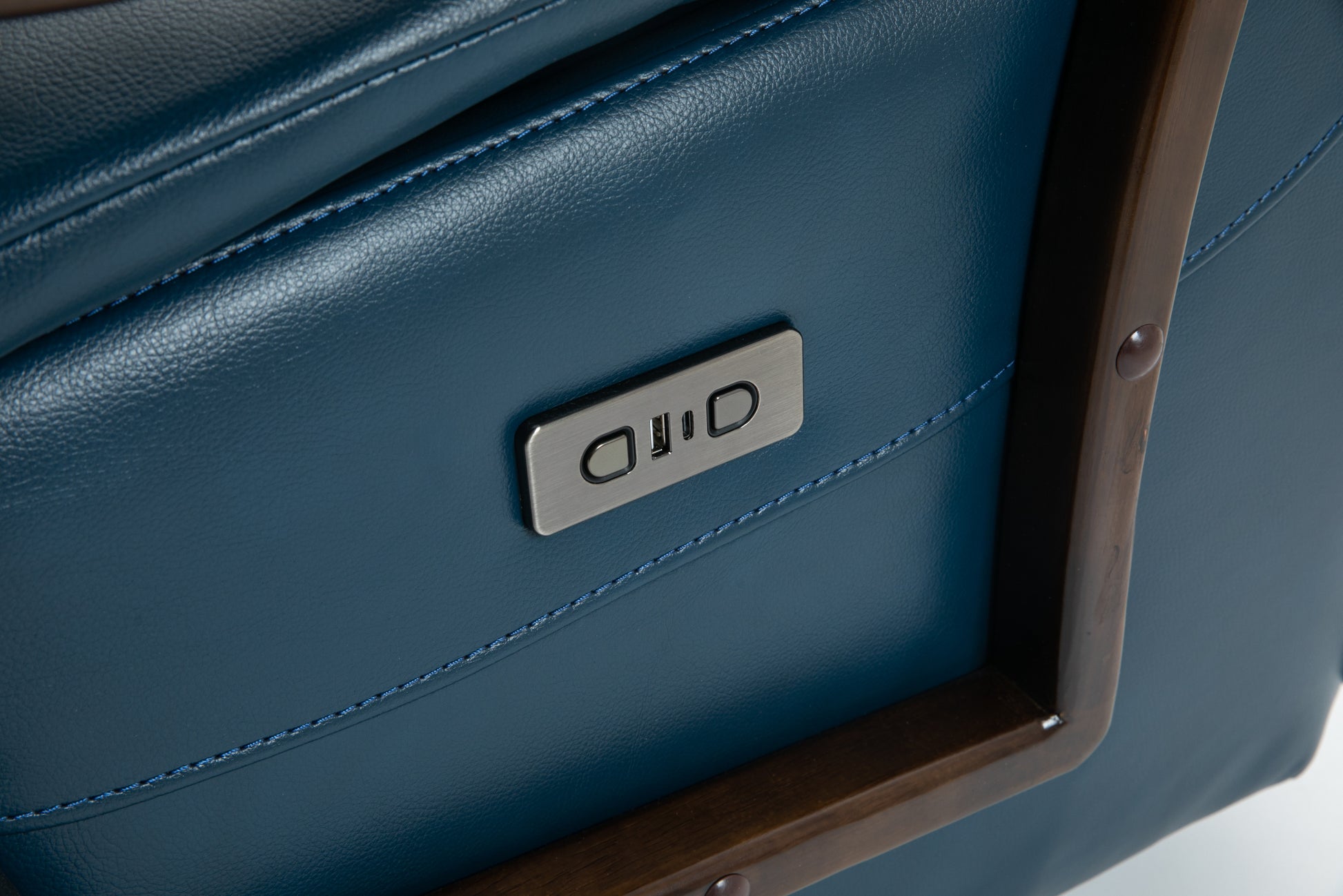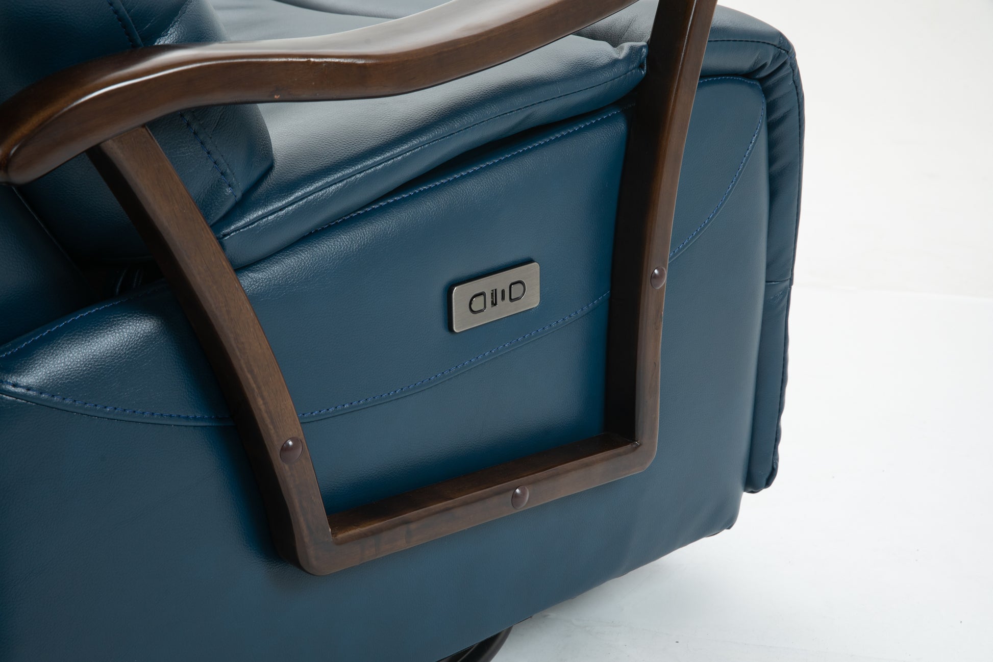 Swivel Rocker Recliner Power Glider Chair With Solid Wood Armrests Extra Wide Reclining Sofa Chair Upholstered Faux Leather Living Room Single Sofa 350 Lbs Blue Pu Leather
