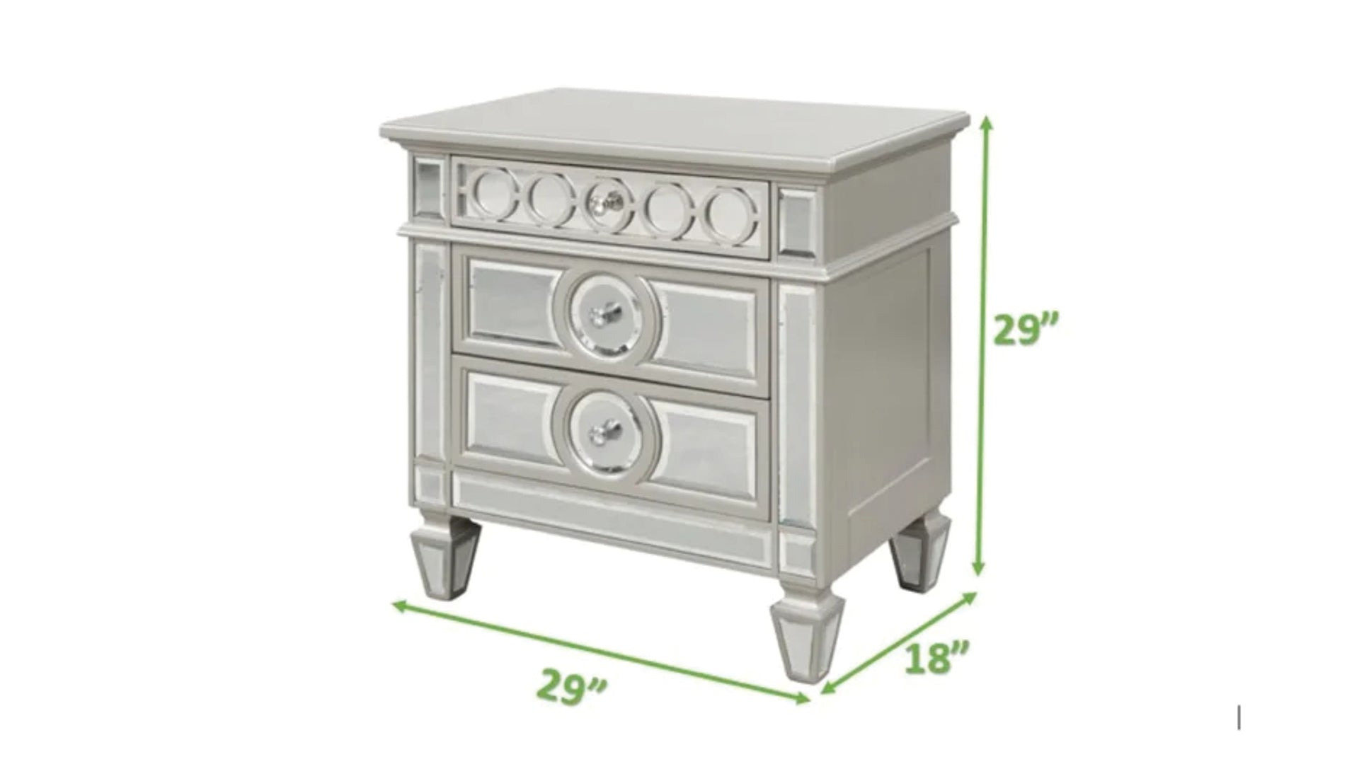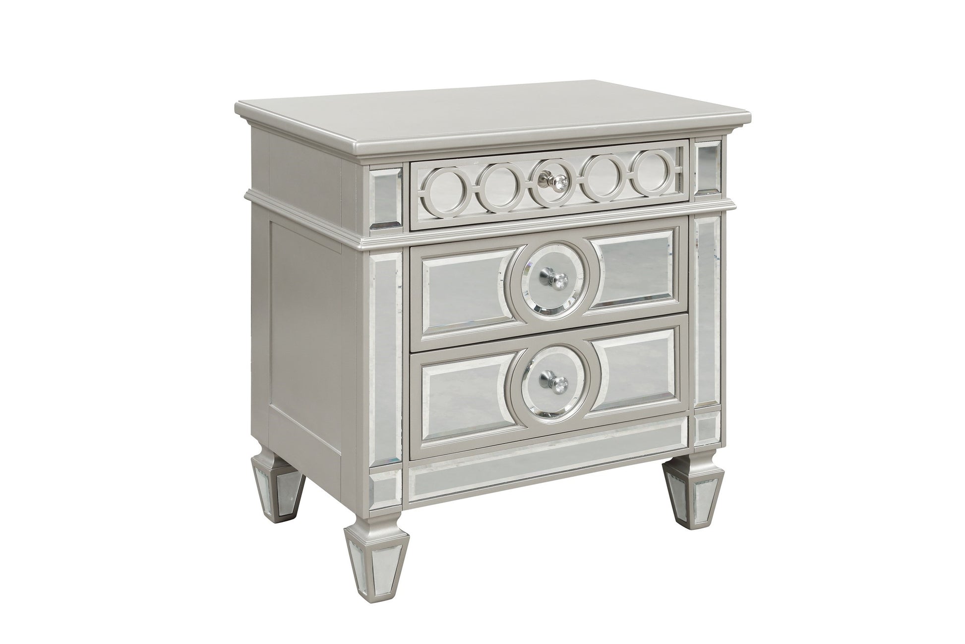 Symphony Modern Style Mirror Front 2 Drawer Nightstand Made With Wood In Silver Silver 2 Drawers Bedroom Bedside Cabinet Modern Drawers Silver Solid Wood Mdf Wood
