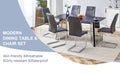 Table And Chair Set.63"X31.5X30" Black Marble Patterned Slabs Tabletop With Stainless Steel Butterfly Legs.Paried With 6 Dark Gray High Quality Pu Chairs With Silver Metal Legs. Dark Gray,Silver