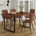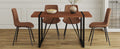 Table And Chair Set. A Minimalist Retro Rectangular Dining Table With A Specially Textured Top And Black Metal Legs, Paired With Soft Chairs And Black Metal Legs, Showcases A Beautiful Home Style.