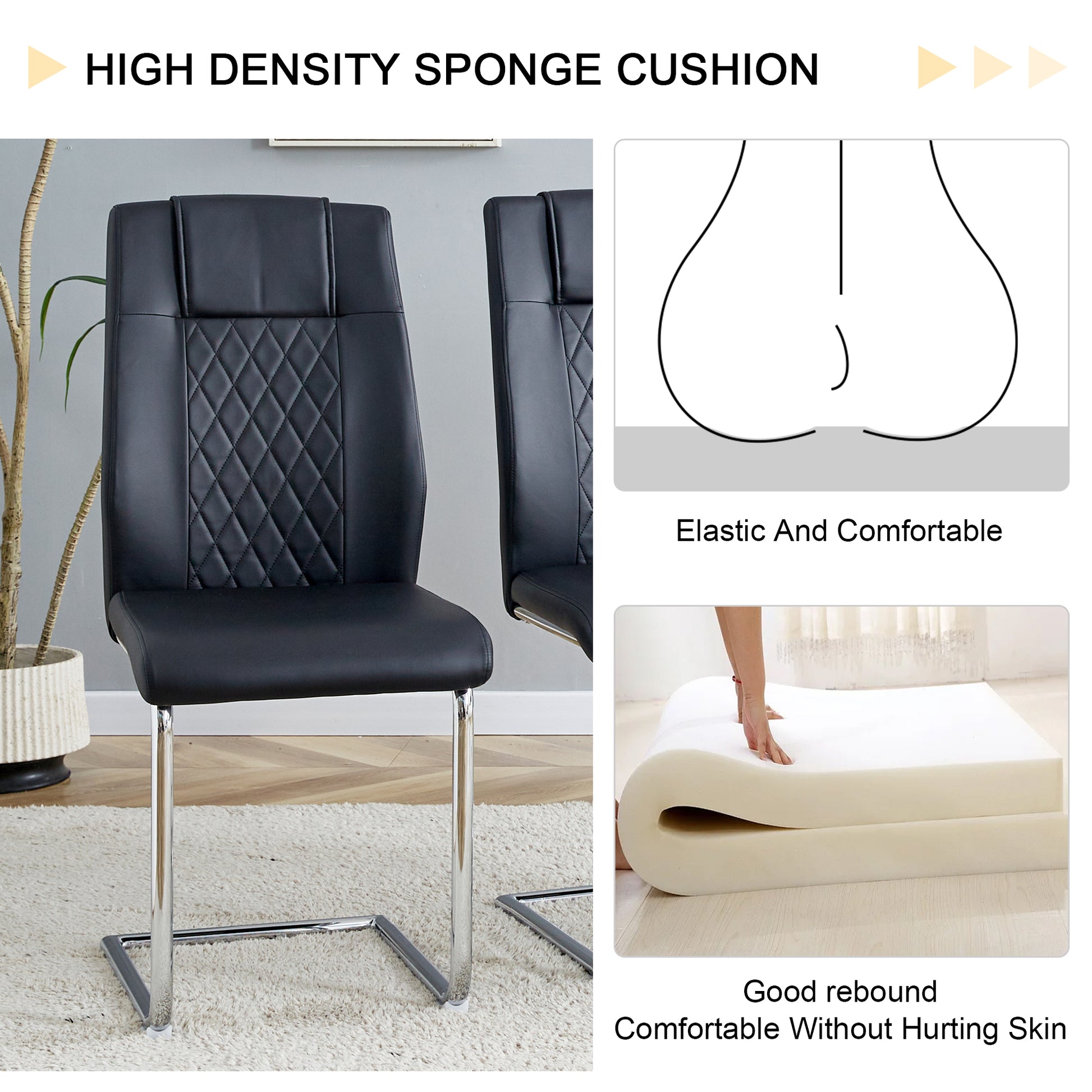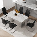 Table And Chair Set, Modern And Minimalist Dining Table. Imitation Marble Glass Sticker Desktop, Stainless Steel Legs, Stable And Beautiful. Comfortable Pu Seats. Dt 69 Silver Glass