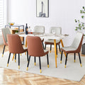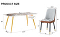 Table And Chair Set.Modern Minimalist Dining Table. White Imitation Marble Pattern Sintered Stone Desktop With Golden Metal Legs.Paried With 6 Comfortable Chairs With Pu Seats And Black Metal Legs.