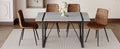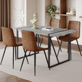 Table And Chair Set. Modern Minimalist Grey Marble Textured Mdf Dining Table With Metal Frame. Paired With 4 Chairs With Soft Suede Cushions And Black Metal Legs. Brown Seats 4 Mdf Metal