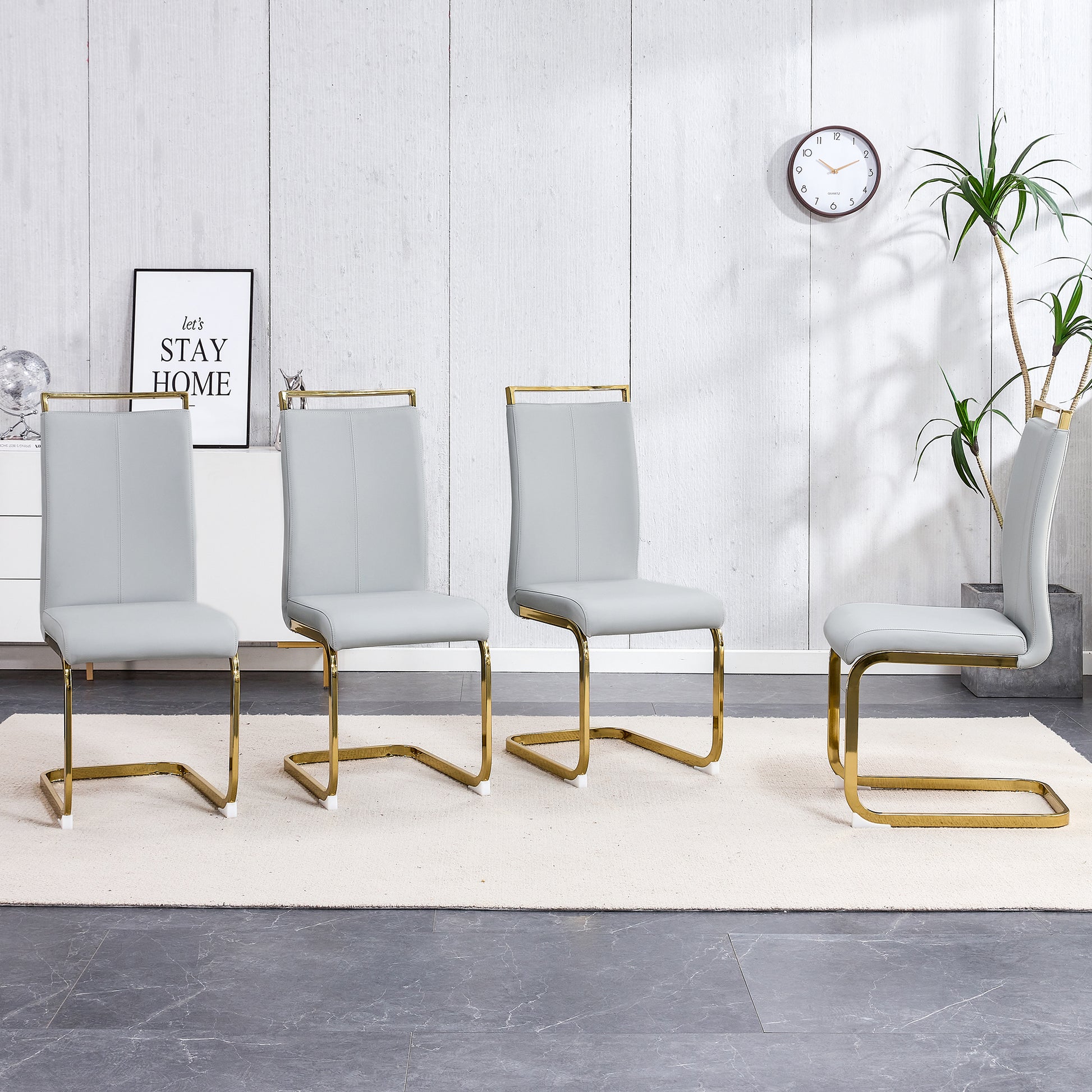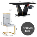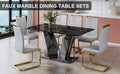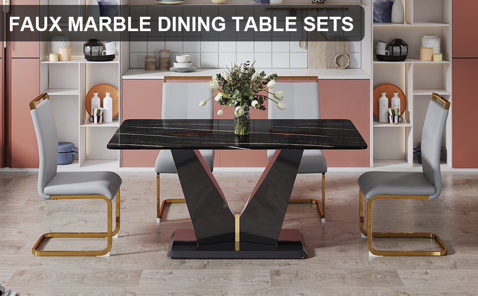 Table And Chair Set,Modern Rectangular Dining Table, 0.4 Inch Thick, With A Black Imitation Marble Pattern Glass Desktop And Black Mdf Legs. Comfortable Pu Seats,Perfect For Dinner, Meet. Grey Black Seats 4 Mdf Glass
