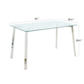 Table And Chair Set, One Table And Four Chairs. Clear Tempered Glass Table Top, 0.3 Feet Thick, Silver Metal Legs. Bow Chair With Electroplated Metal Legs. Upholstered Chair Glass Light Gray Metal
