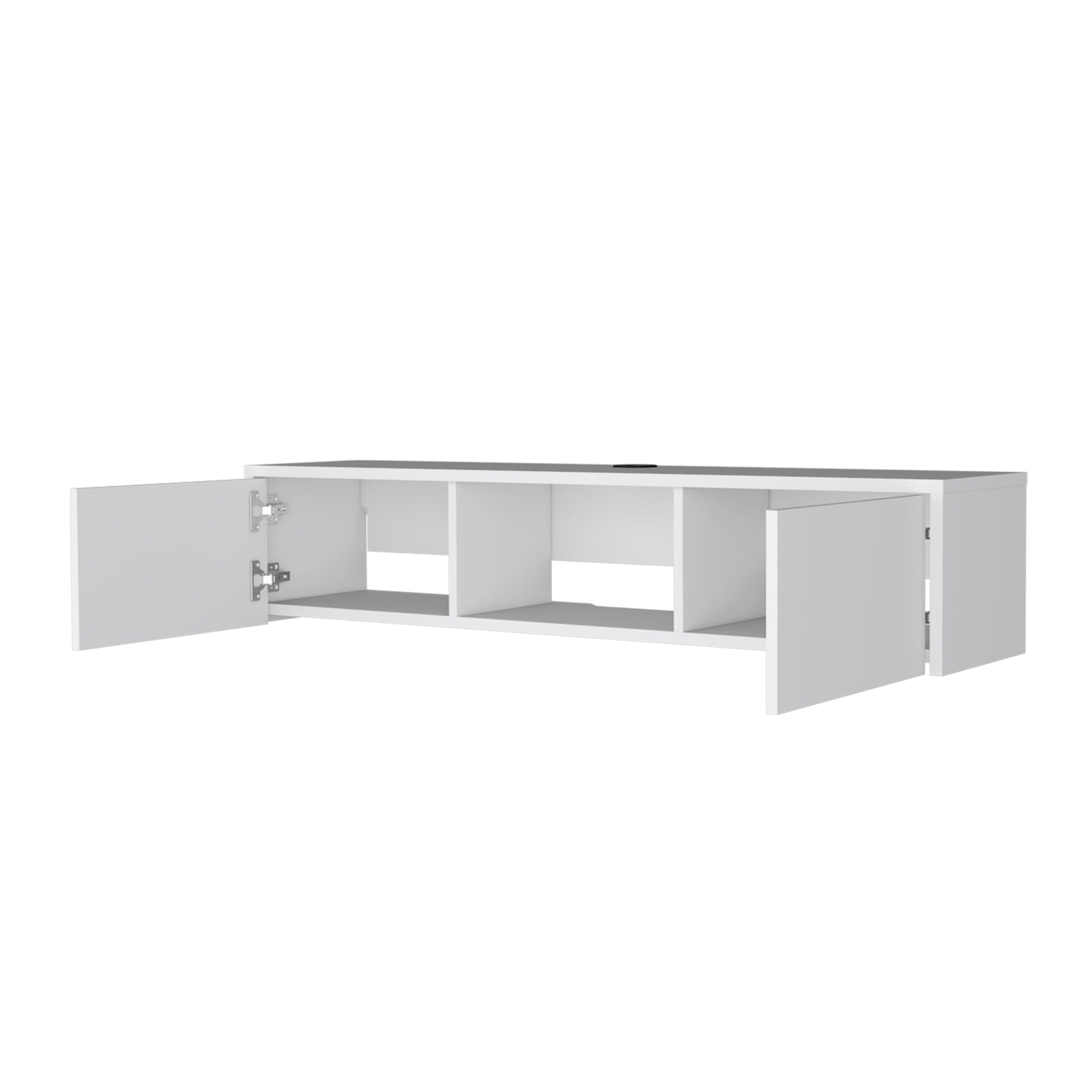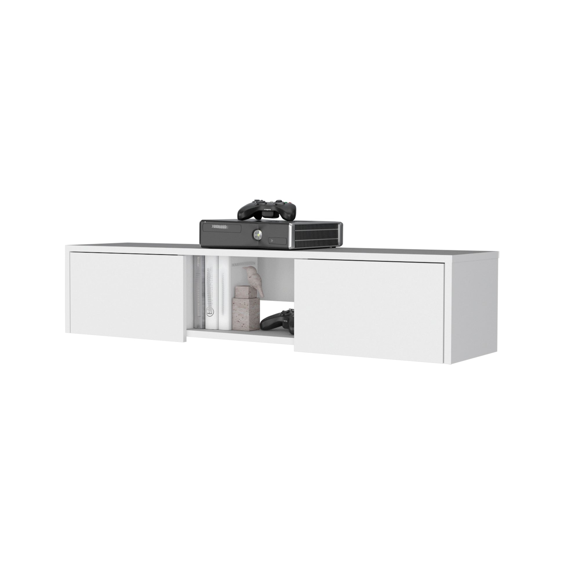 Tabor Floating Tv Stand, Wall Unit With 2 Doors And Open Shelf White Primary Living Space 40 49 Inches 40 49 Inches Modern Pine 50 Inches Particle Board Engineered Wood