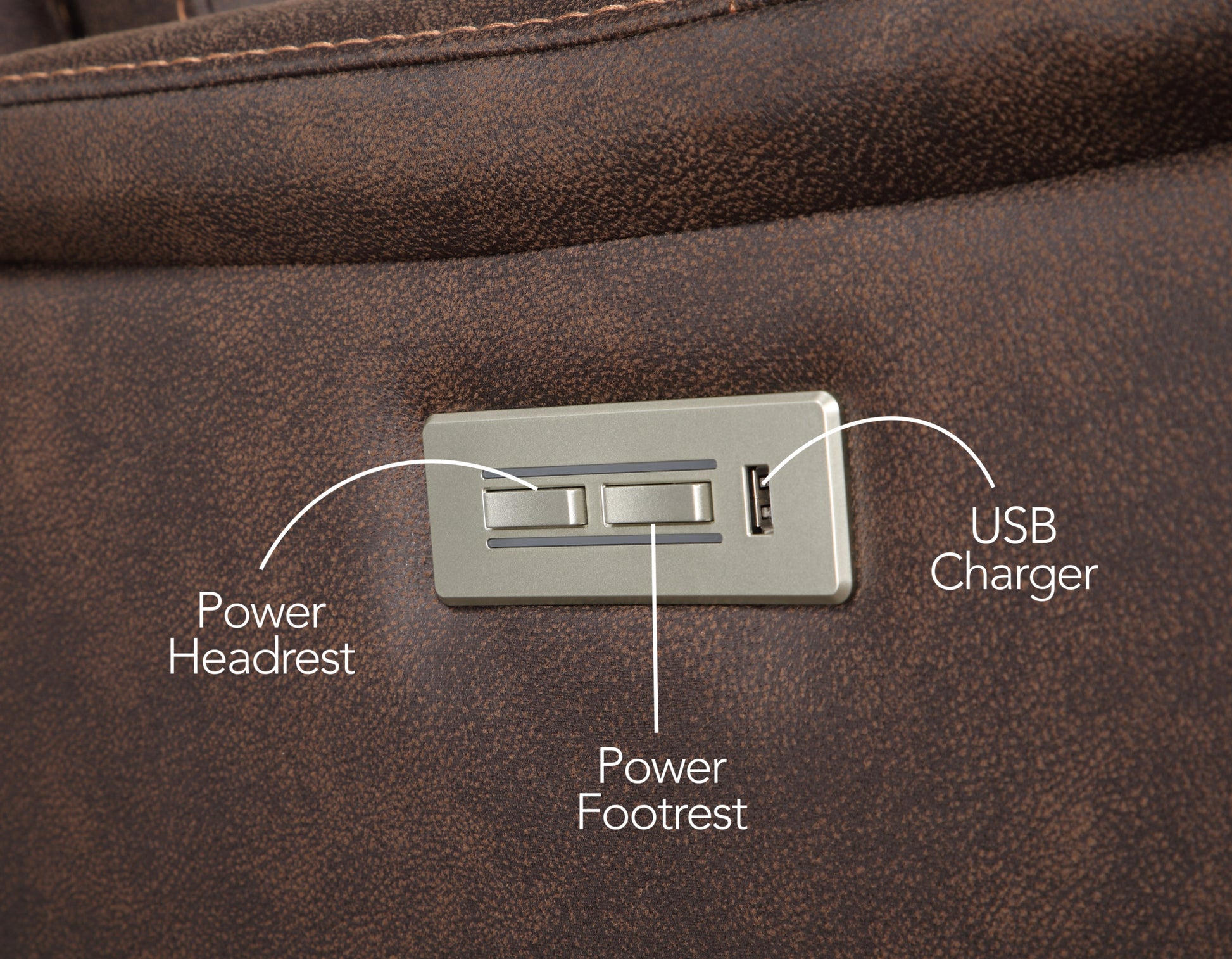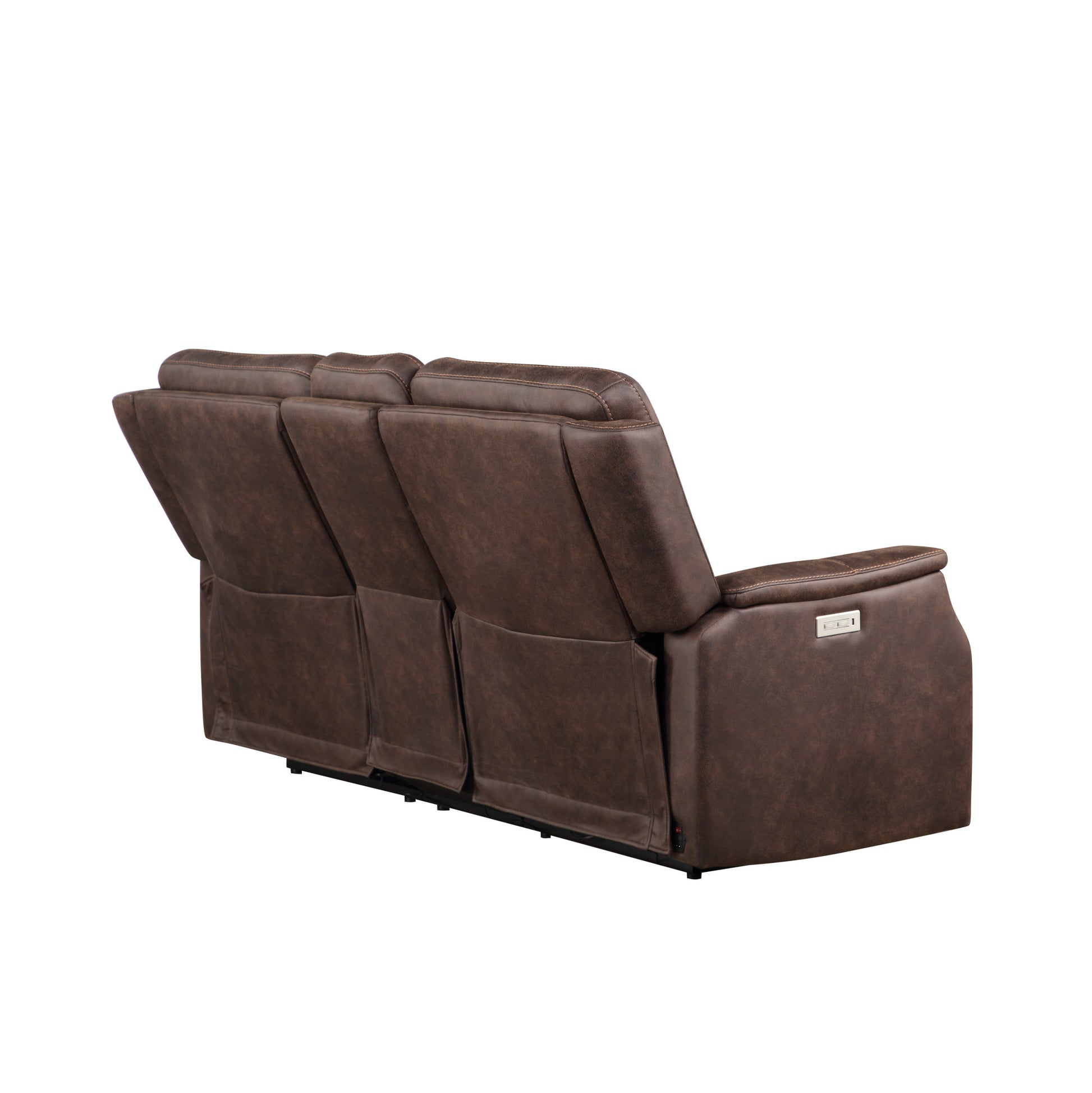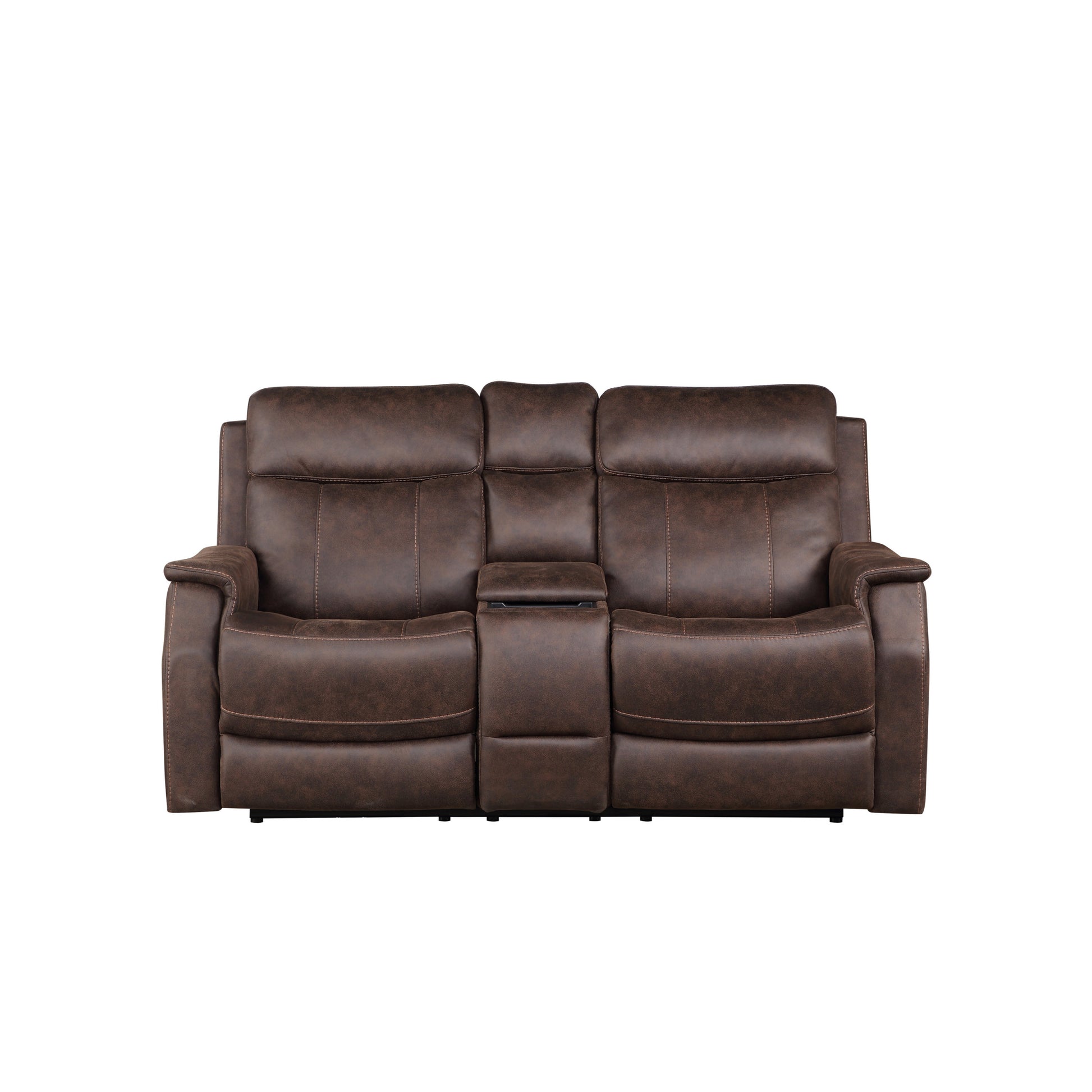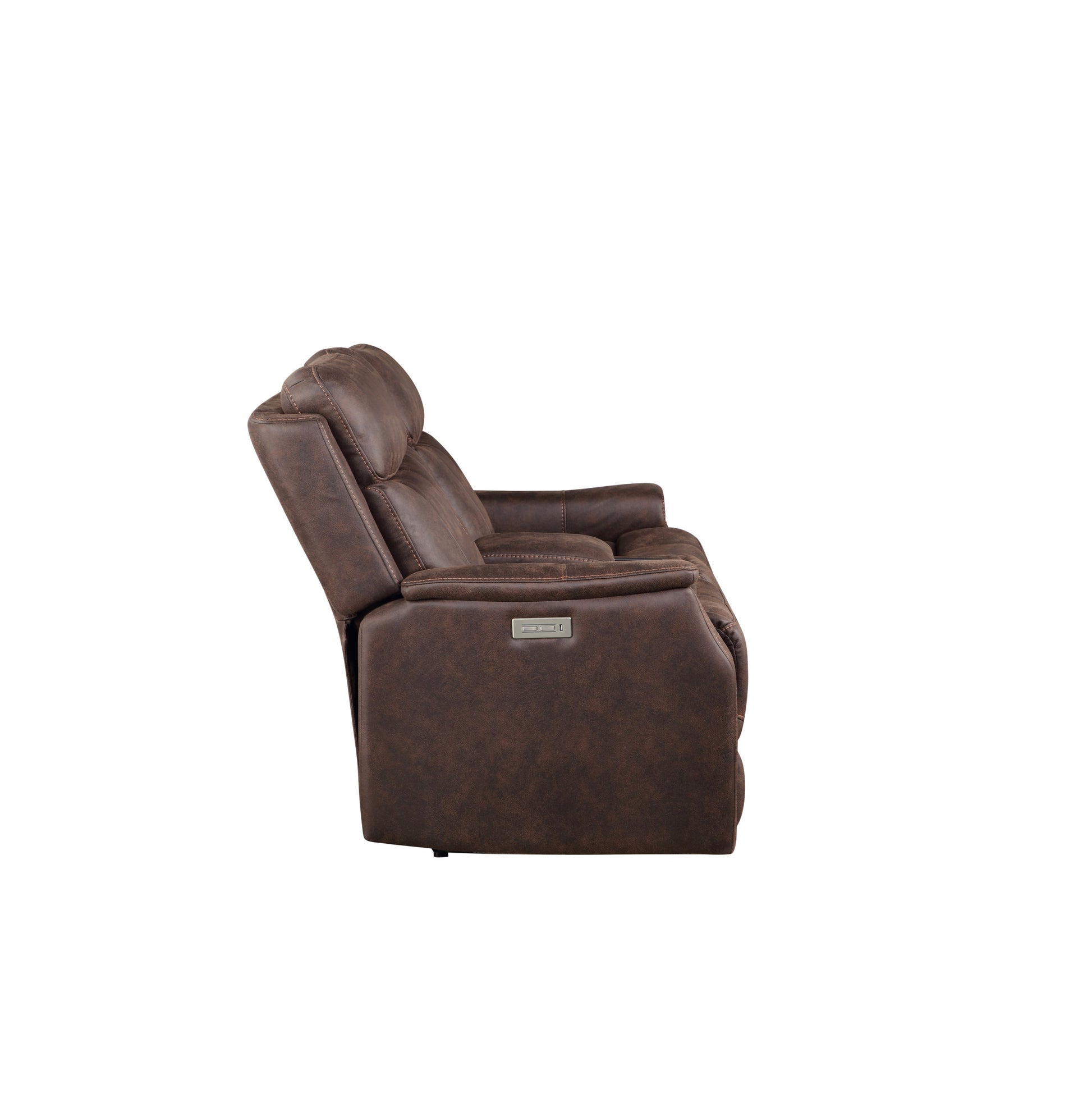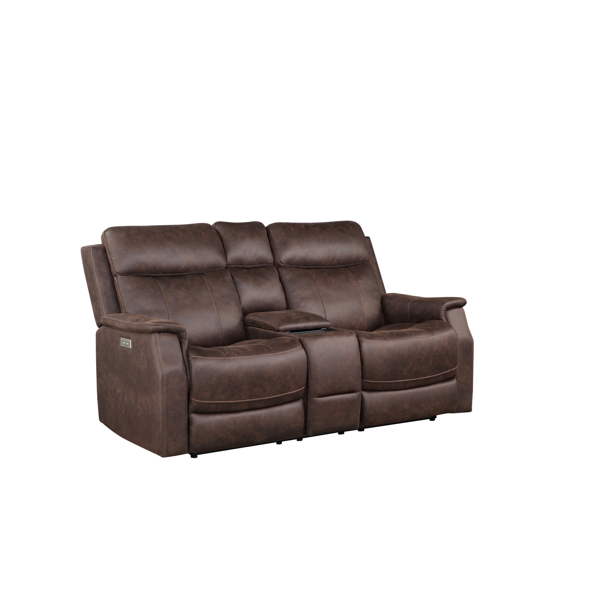 Tailored Power Console Loveseat Nubuck Likepower Headrest, Power Footrest Contemporary Silhouette, Hidden Storage, Usb Charging Brown Foam Fabric
