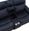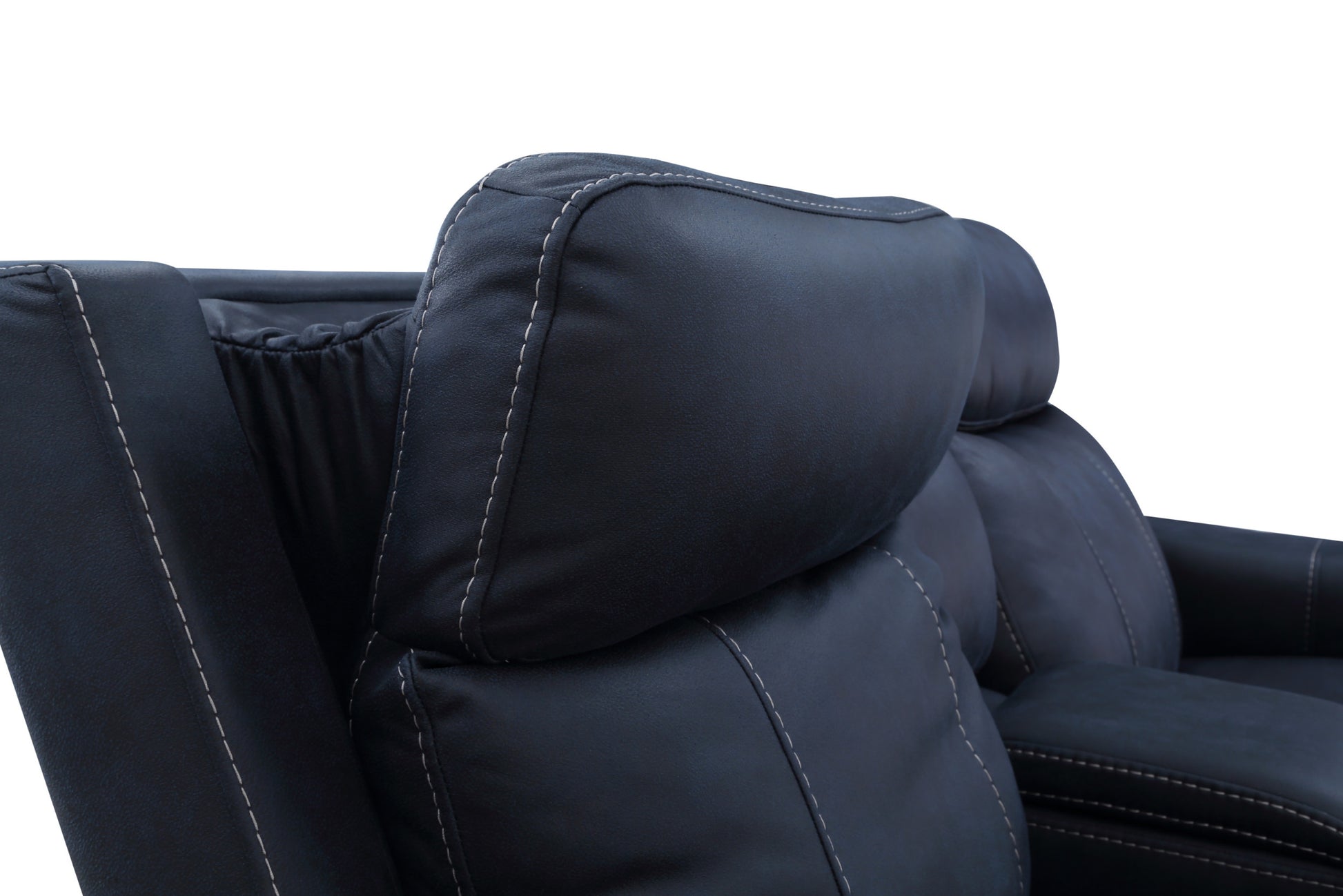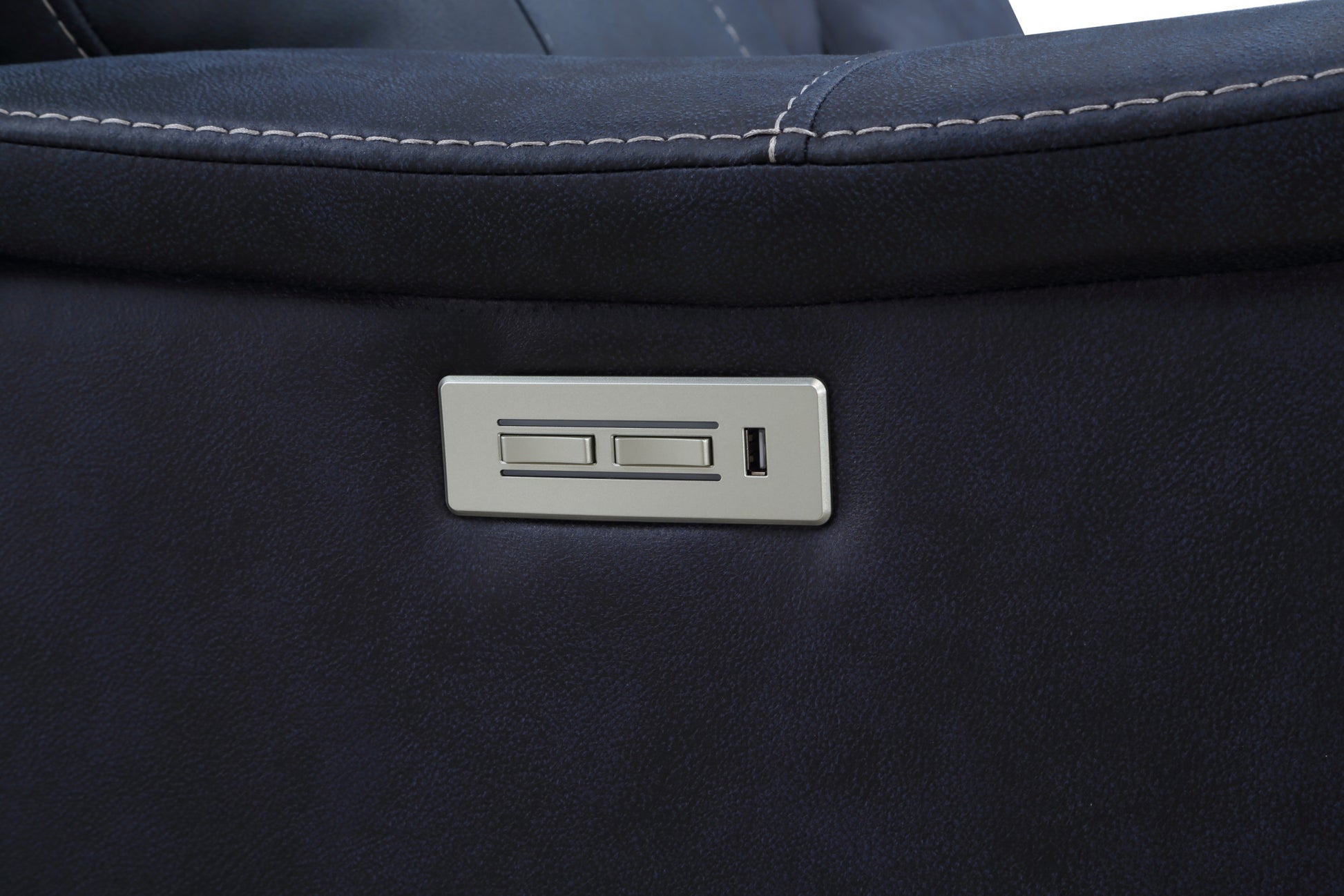 Tailored Power Console Loveseat Shaped Seats, Luxuriouscover Power Headrest, Power Footrest, Hidden Storage Dark Blue Foam Fabric