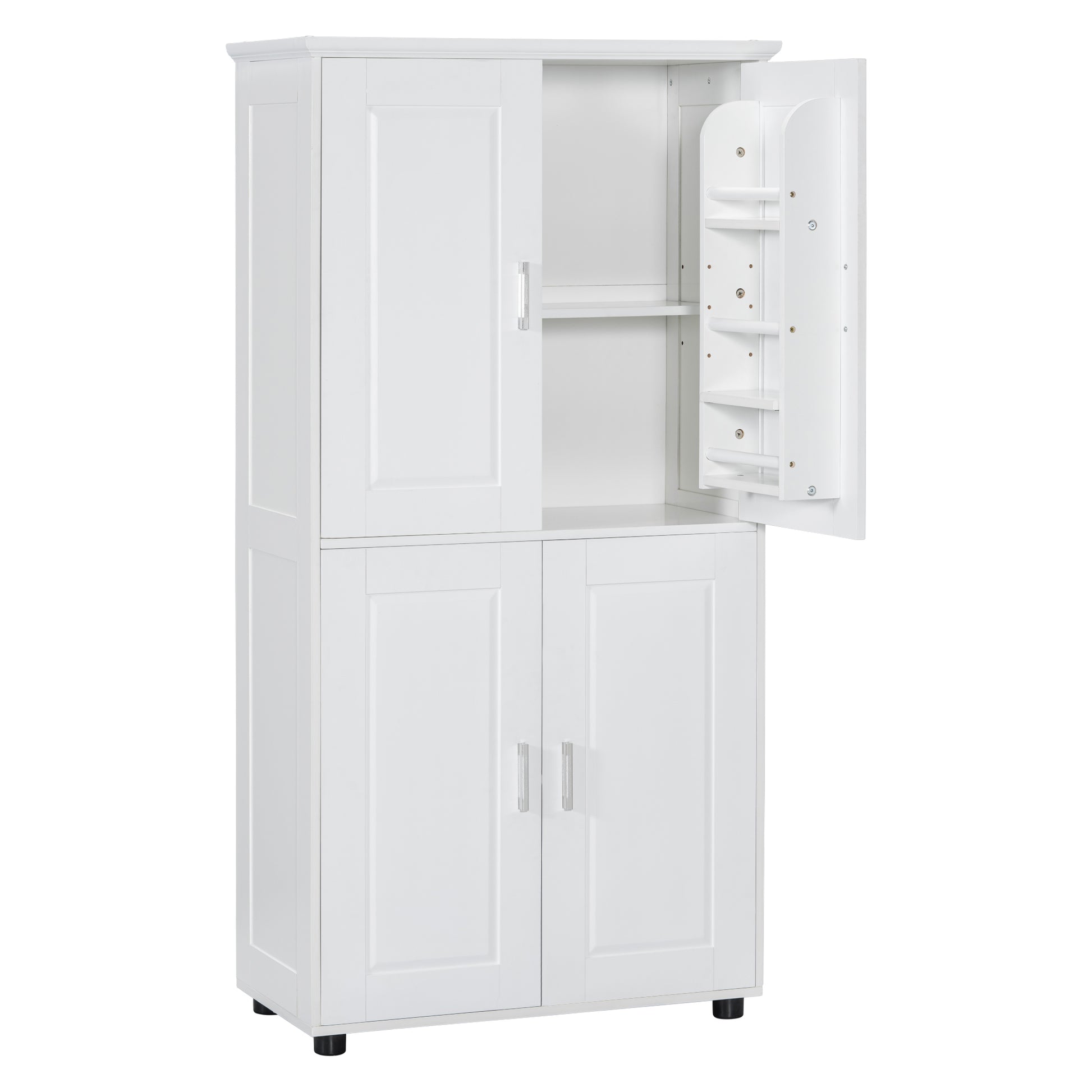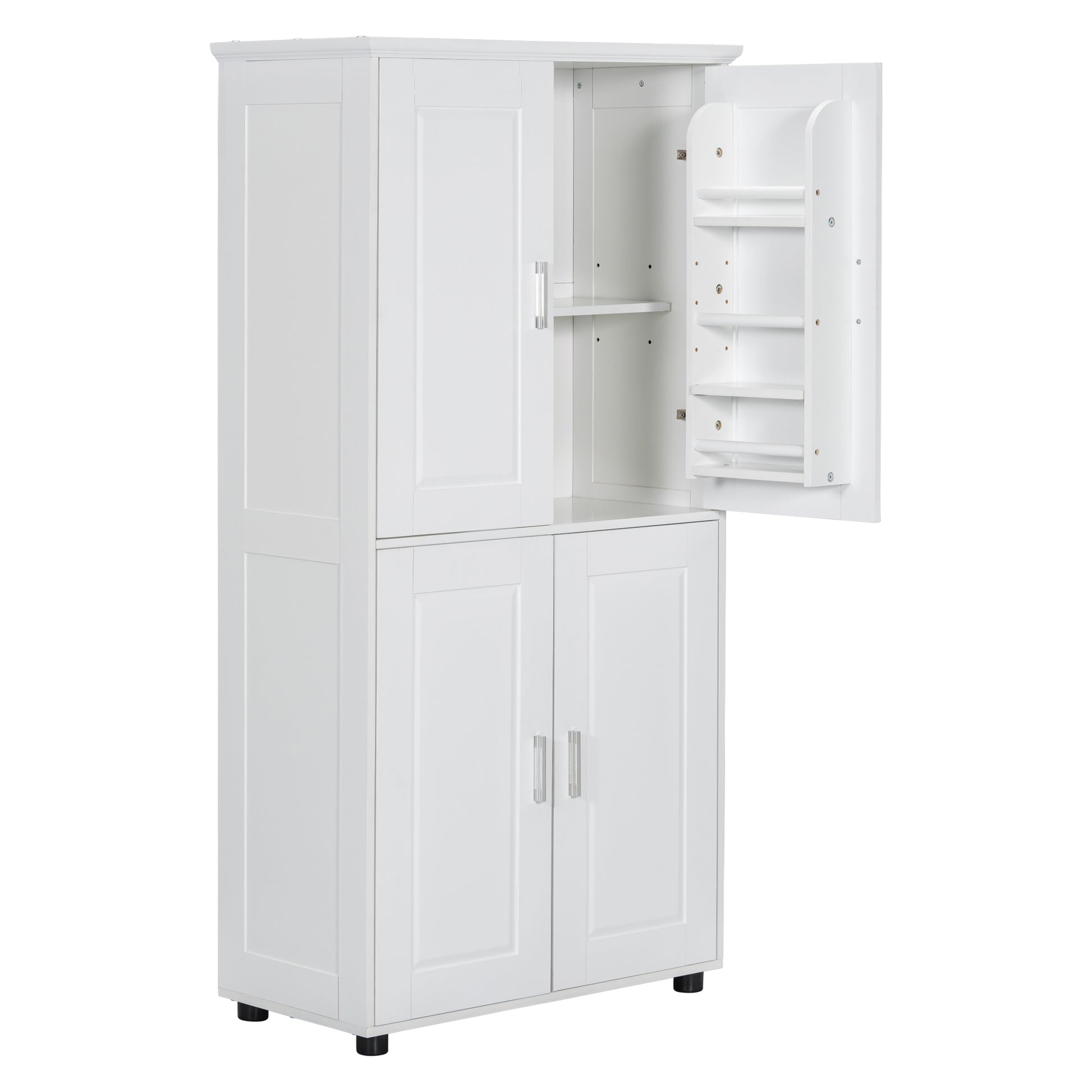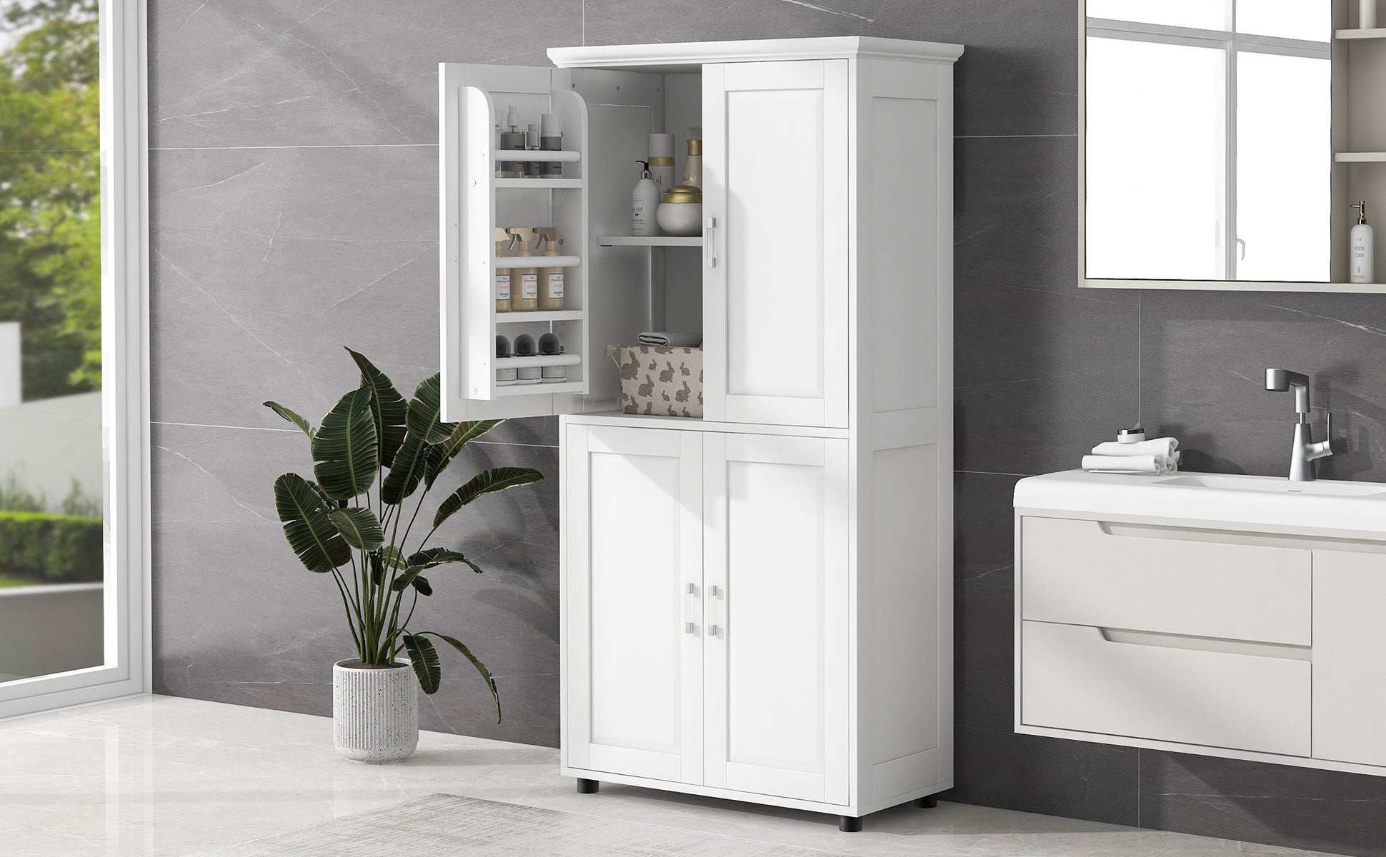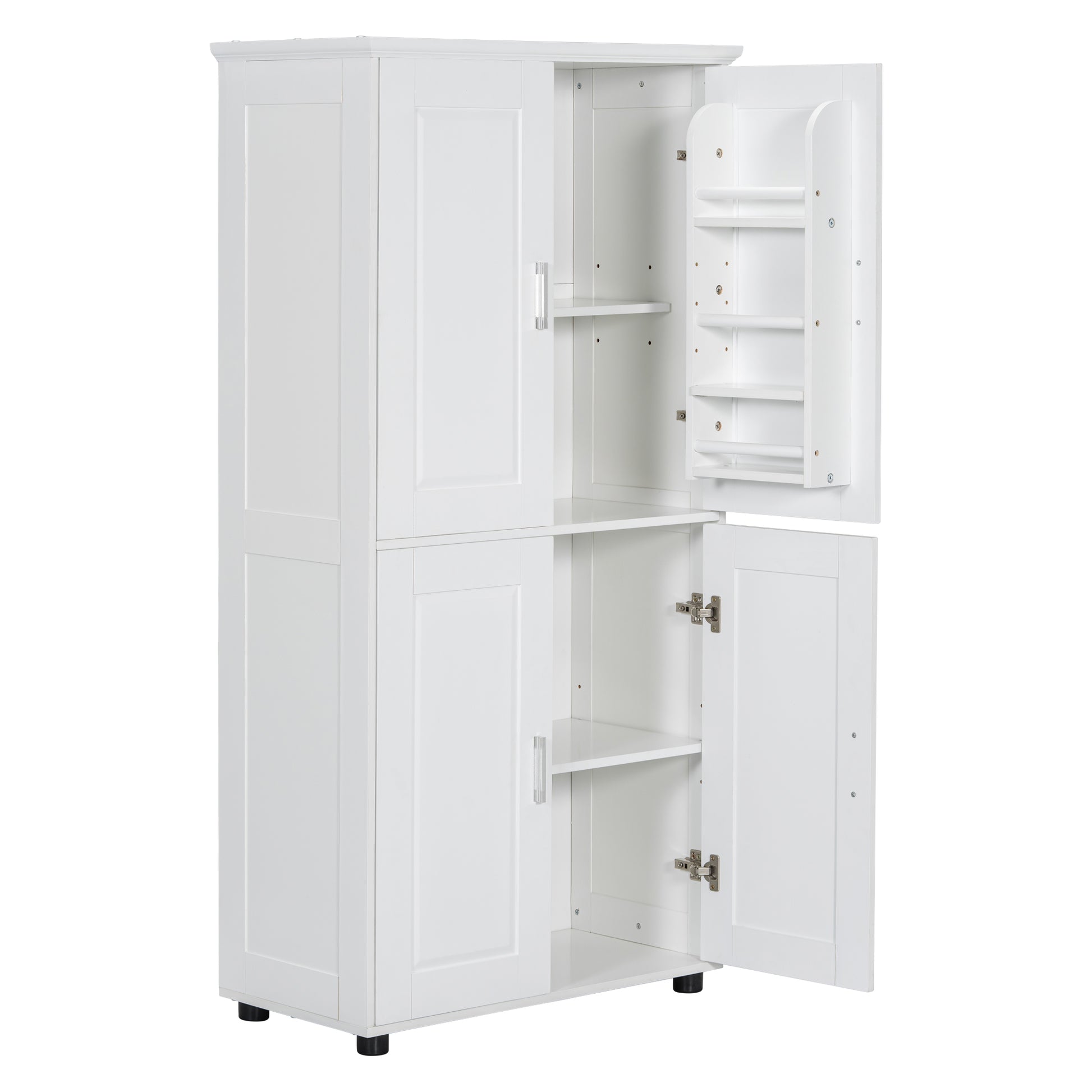 Tall And Wide Bathroom Floor Storage Cabinet, Bathroom Storage Unit, Freestanding Cabinet With 4 Doors, Adjustable Shelves, White White Mdf