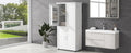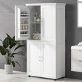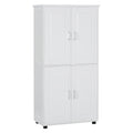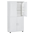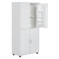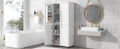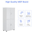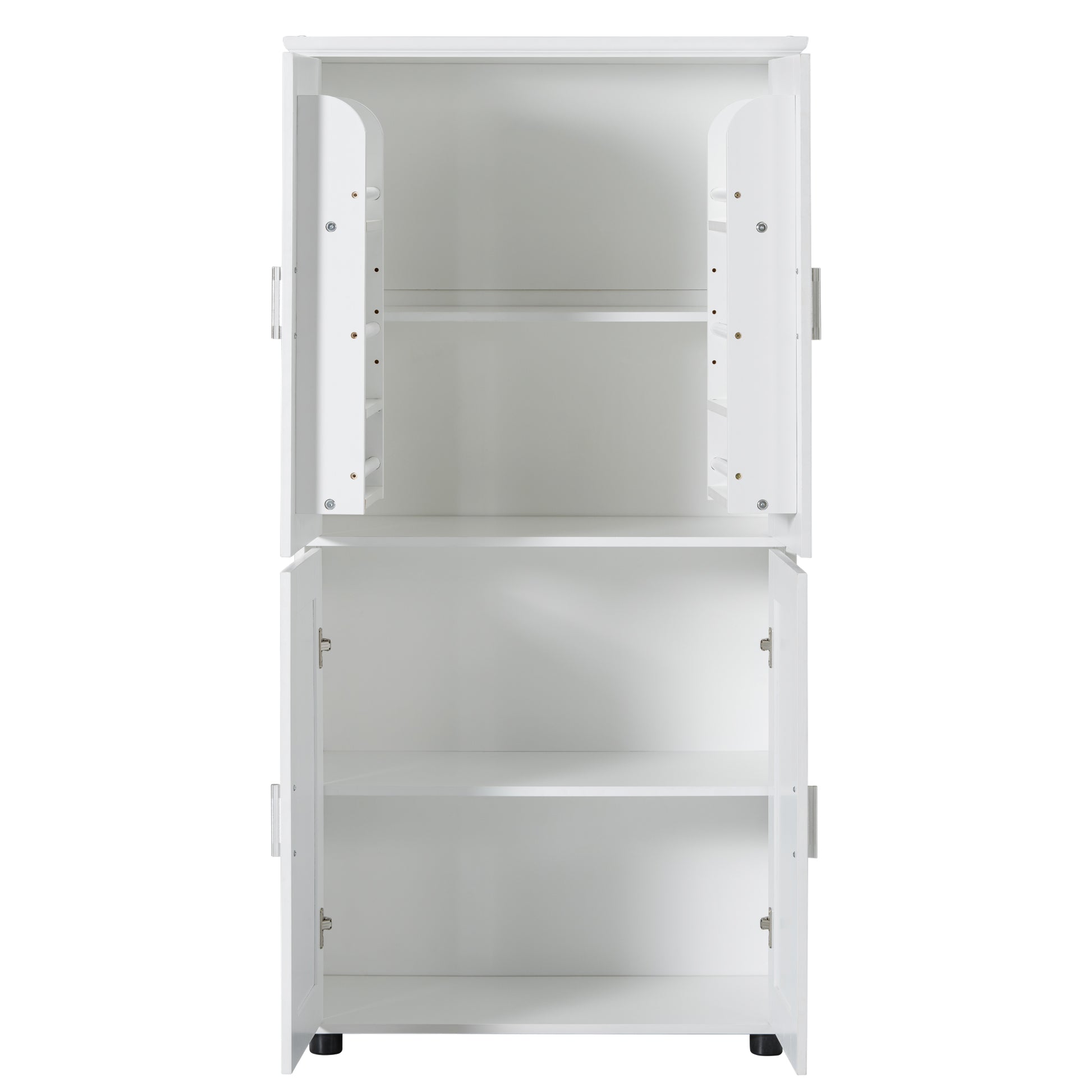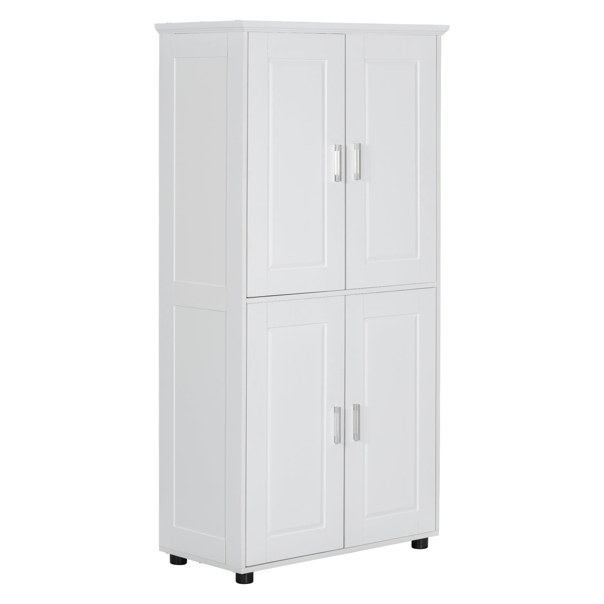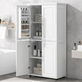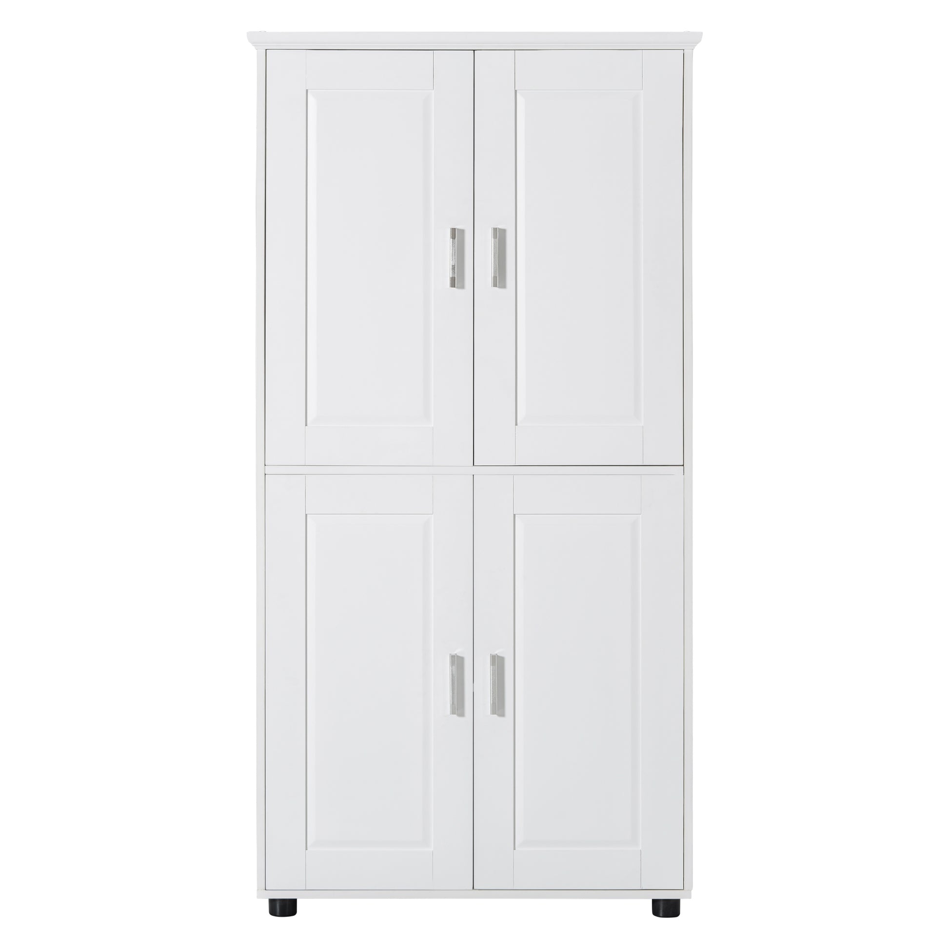 Tall And Wide Bathroom Floor Storage Cabinet, Bathroom Storage Unit, Freestanding Cabinet With 4 Doors, Adjustable Shelves, White White Mdf