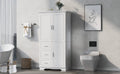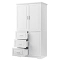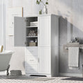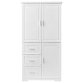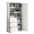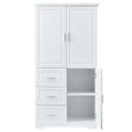 Tall And Wide Storage Cabinet With Doors For Bathroom Office, Three Drawers, White White Mdf