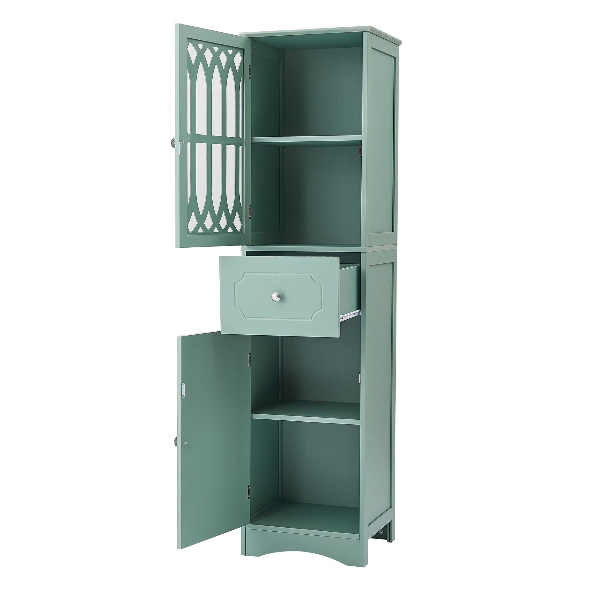 Tall Bathroom Cabinet, Freestanding Storage Cabinet With Drawer And Doors, Mdf Board, Acrylic Door, Adjustable Shelf, Green Green Mdf