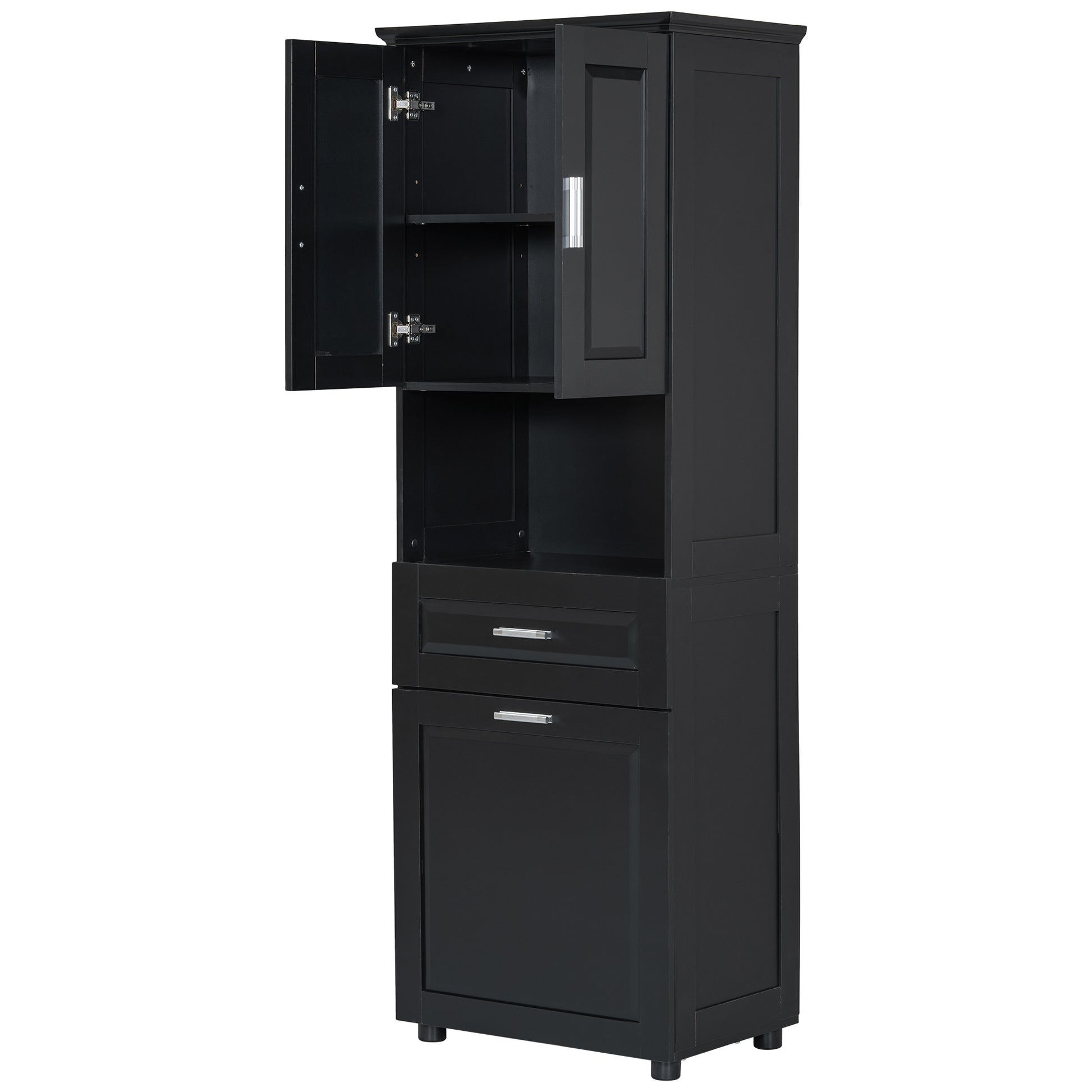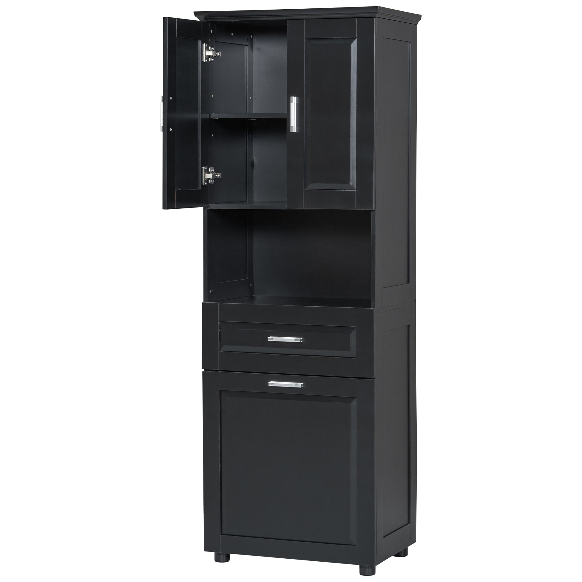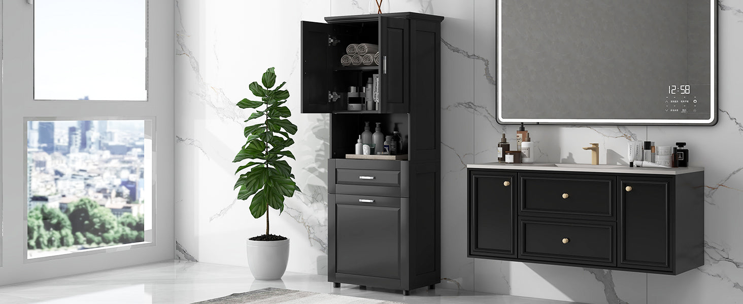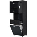 Tall Bathroom Cabinet With Laundry Basket, Large Storage Space Tilt Out Laundry Hamper And Upper Storage Cabinet, Black Black Mdf