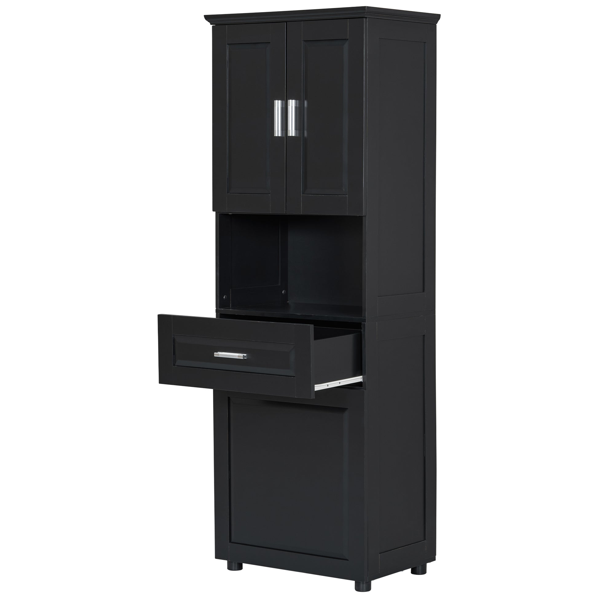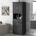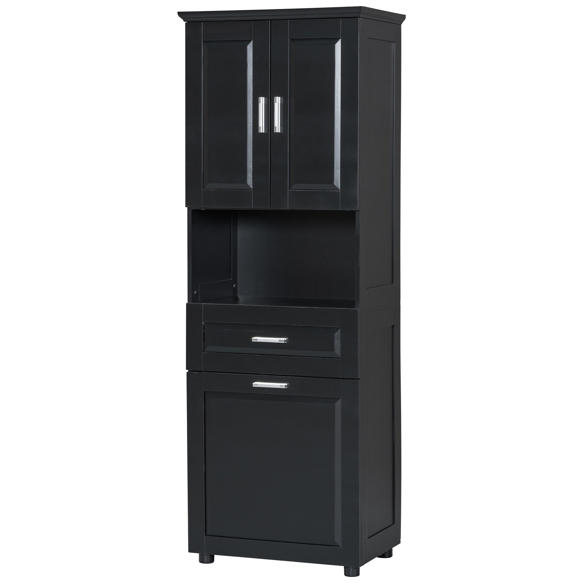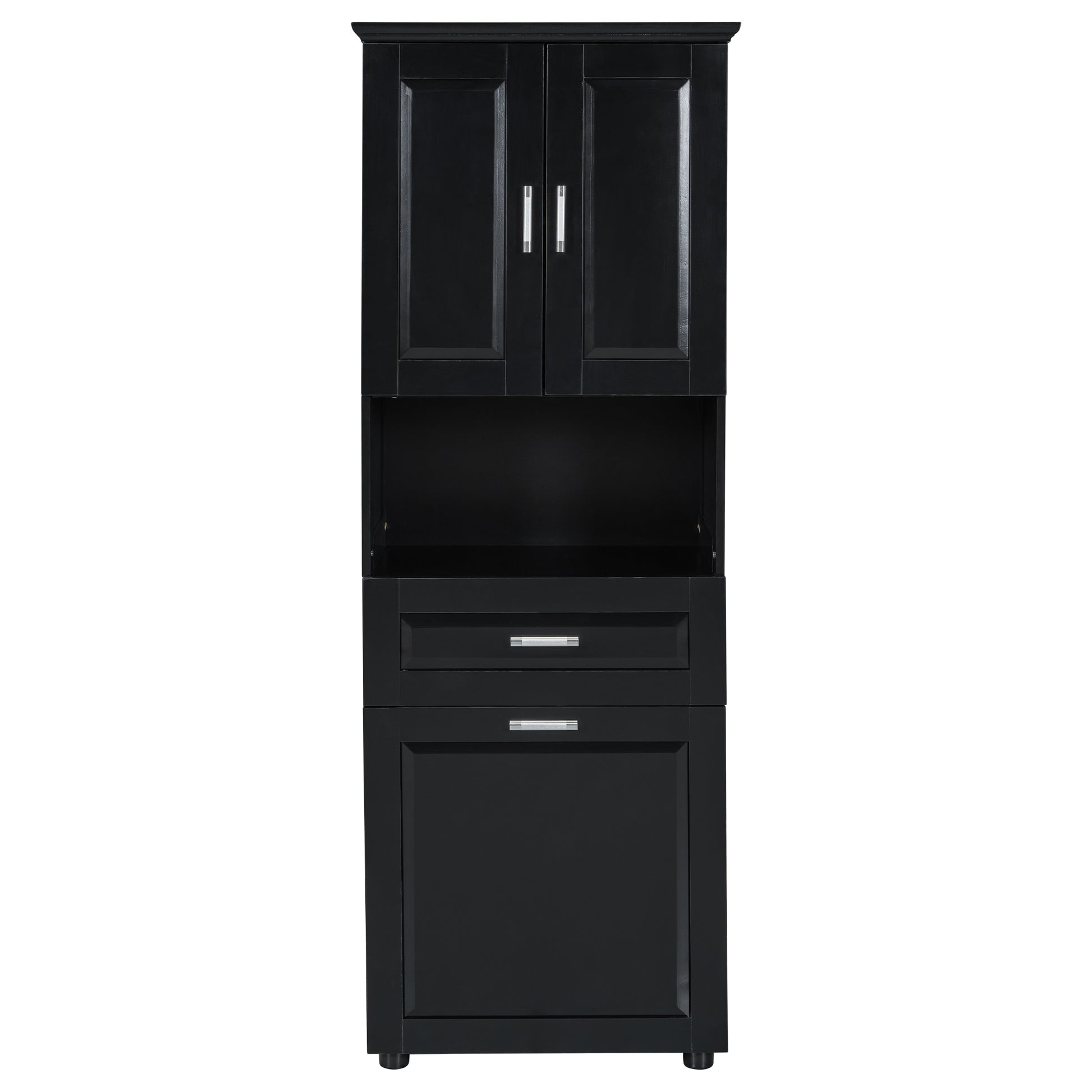 Tall Bathroom Cabinet With Laundry Basket, Large Storage Space Tilt Out Laundry Hamper And Upper Storage Cabinet, Black Black Mdf