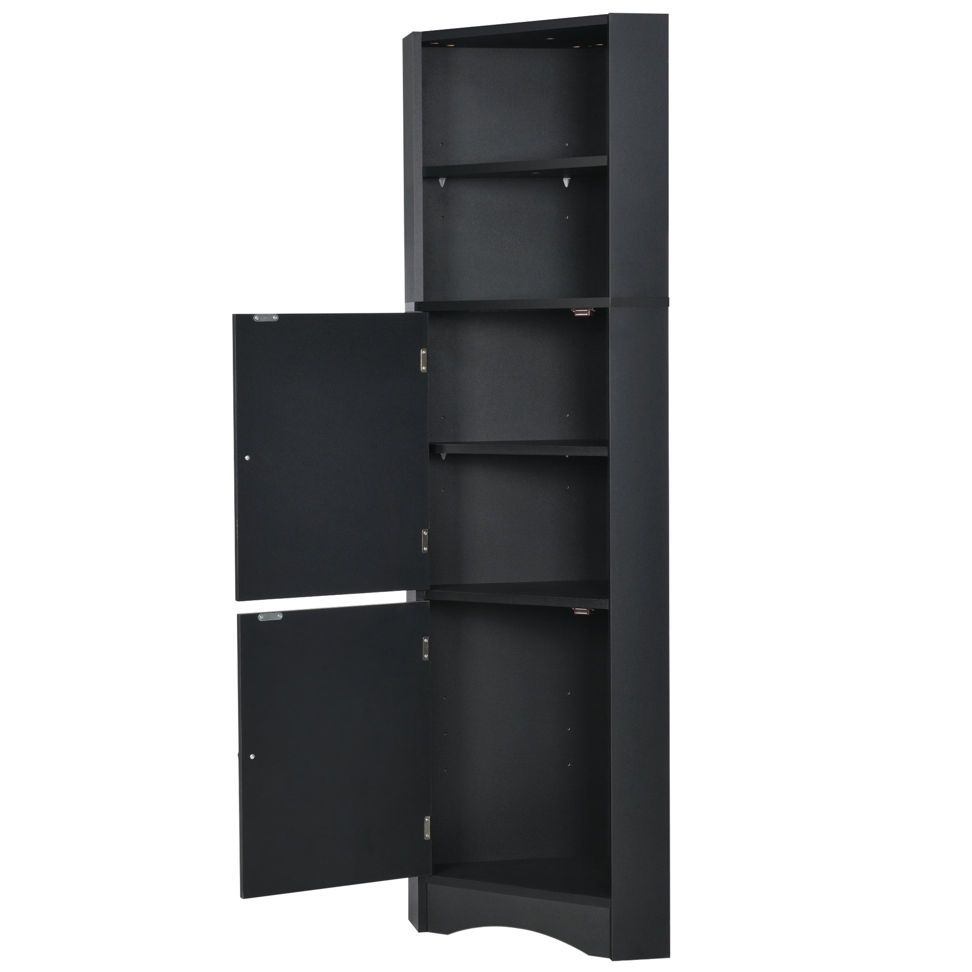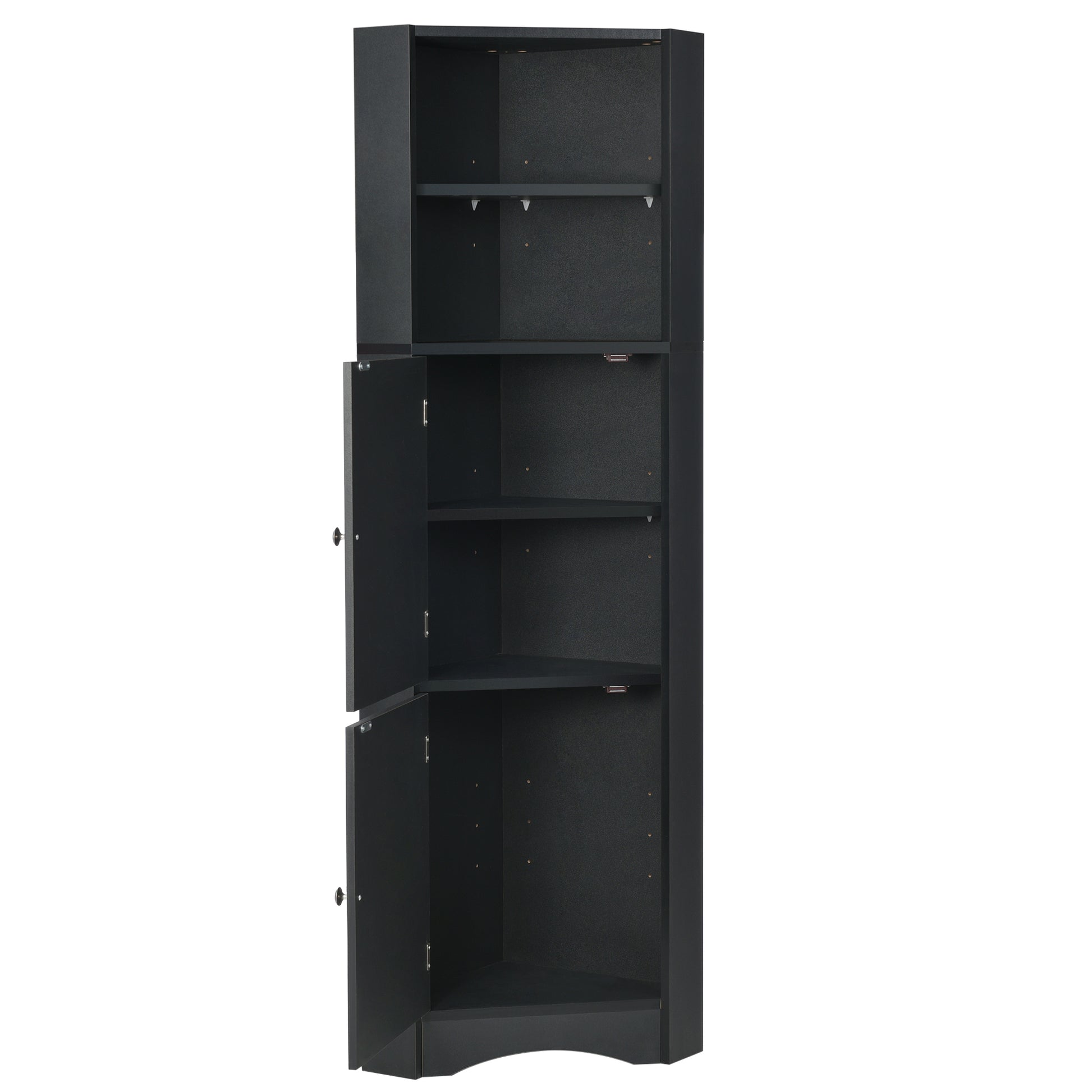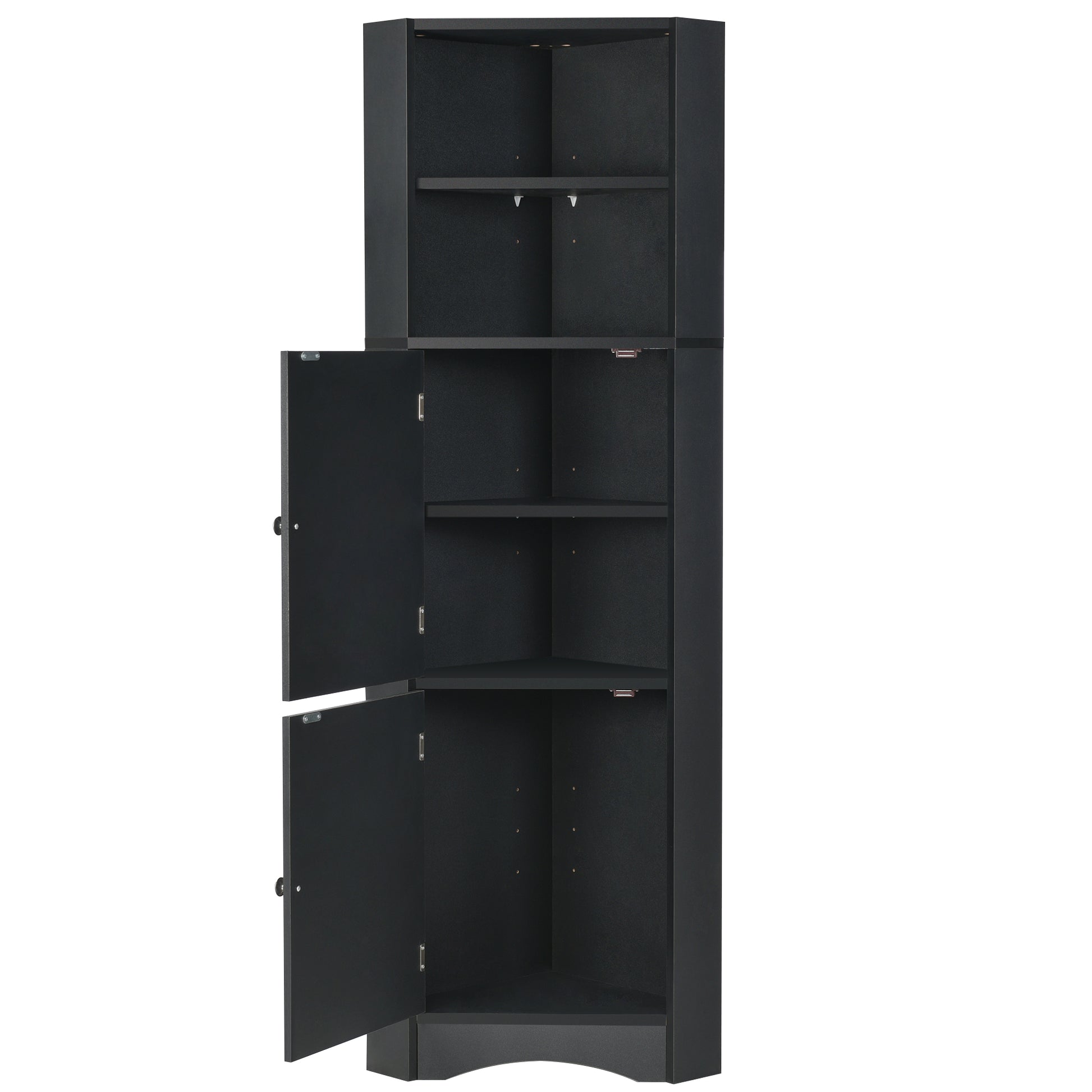 Tall Bathroom Corner Cabinet, Freestanding Storage Cabinet With Doors And Adjustable Shelves, Mdf Board, Black Black Mdf