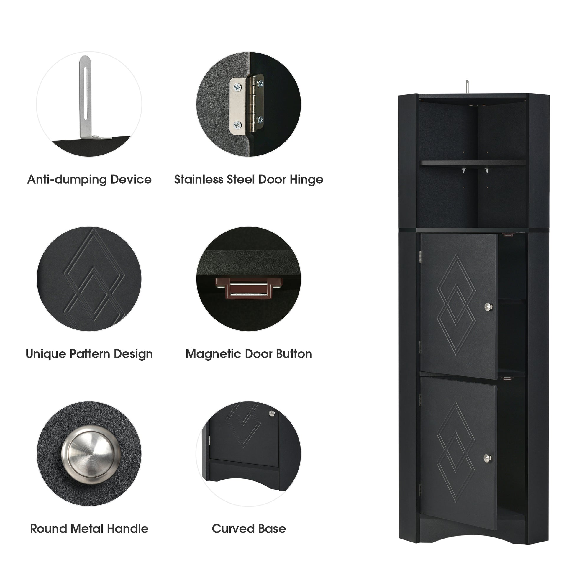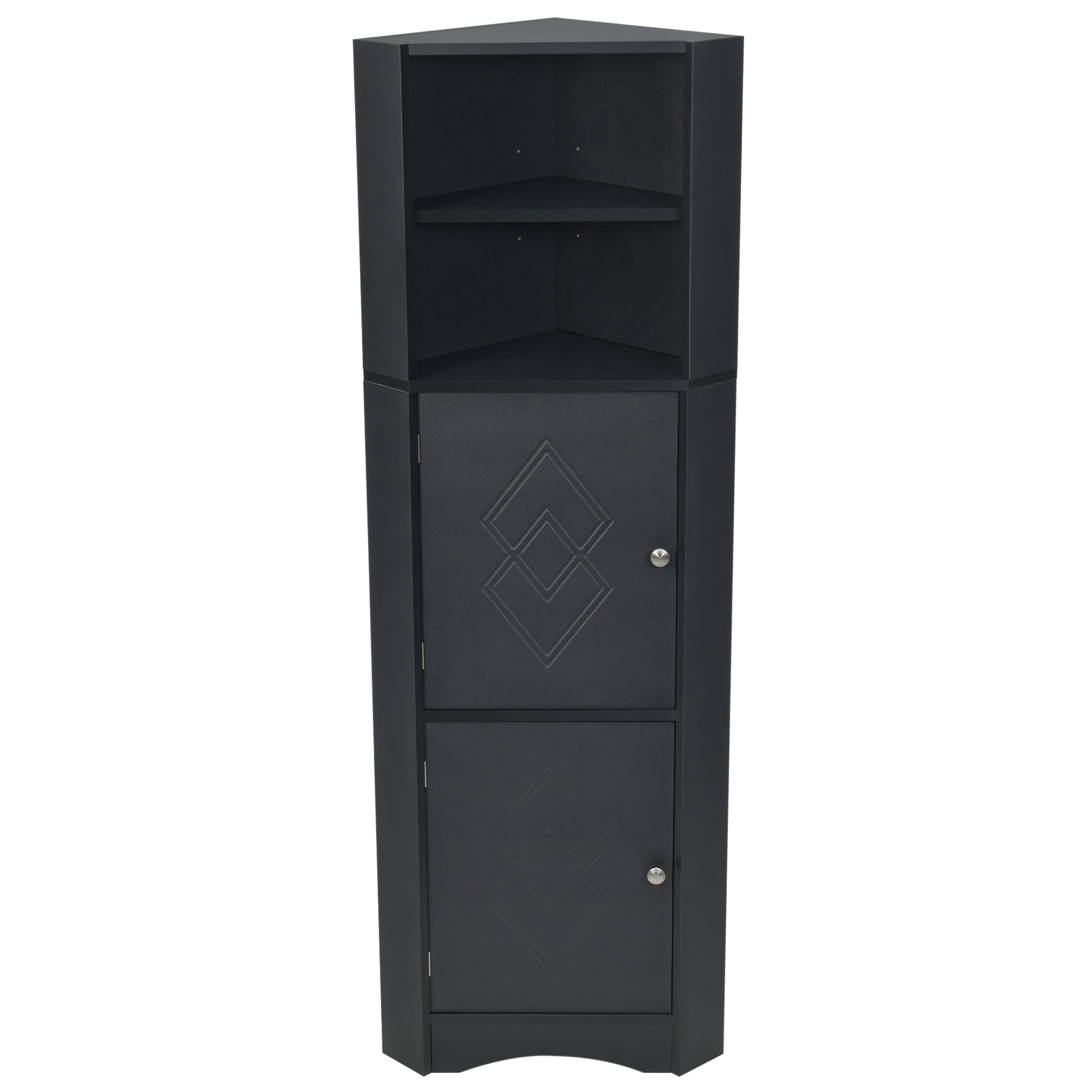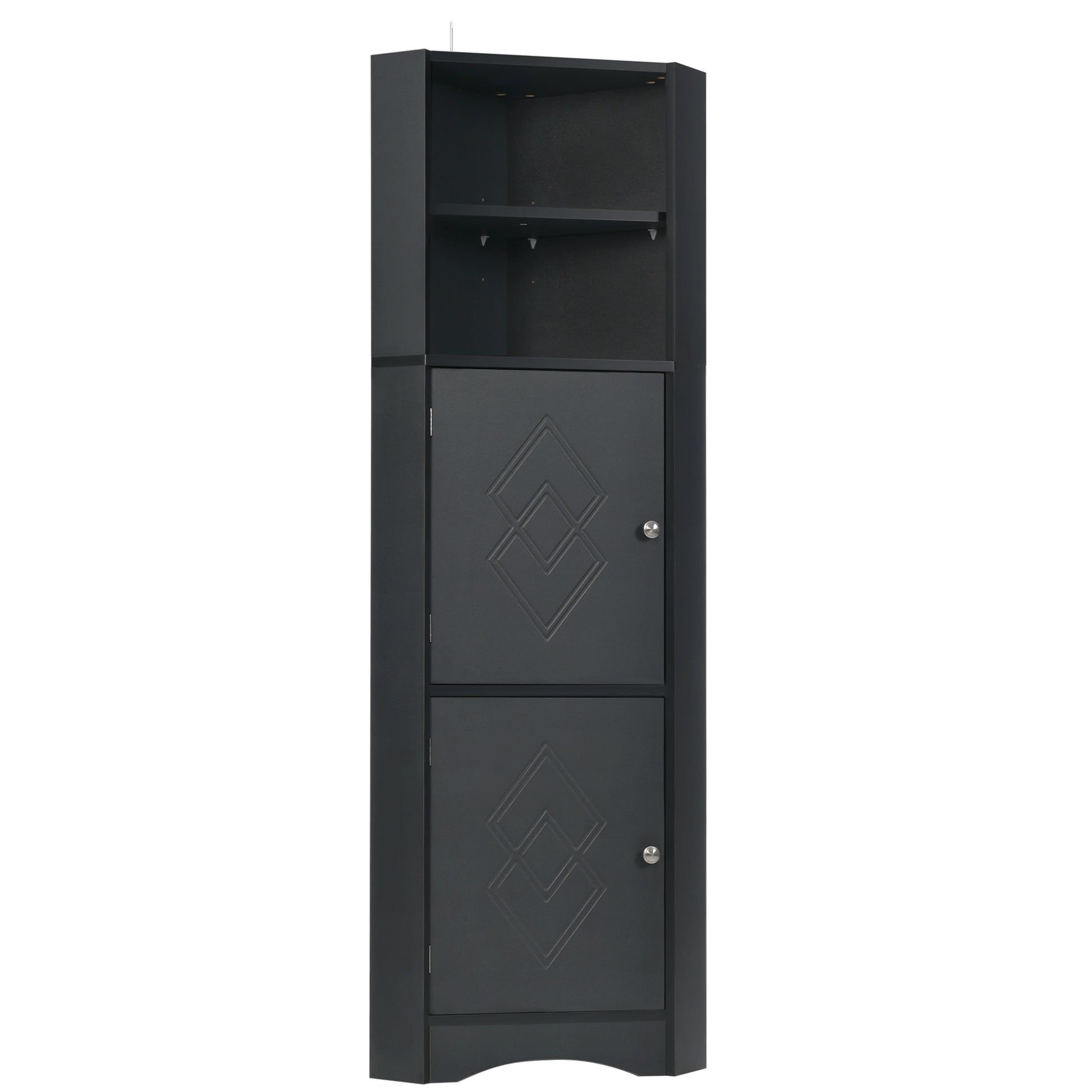 Tall Bathroom Corner Cabinet, Freestanding Storage Cabinet With Doors And Adjustable Shelves, Mdf Board, Black Black Mdf