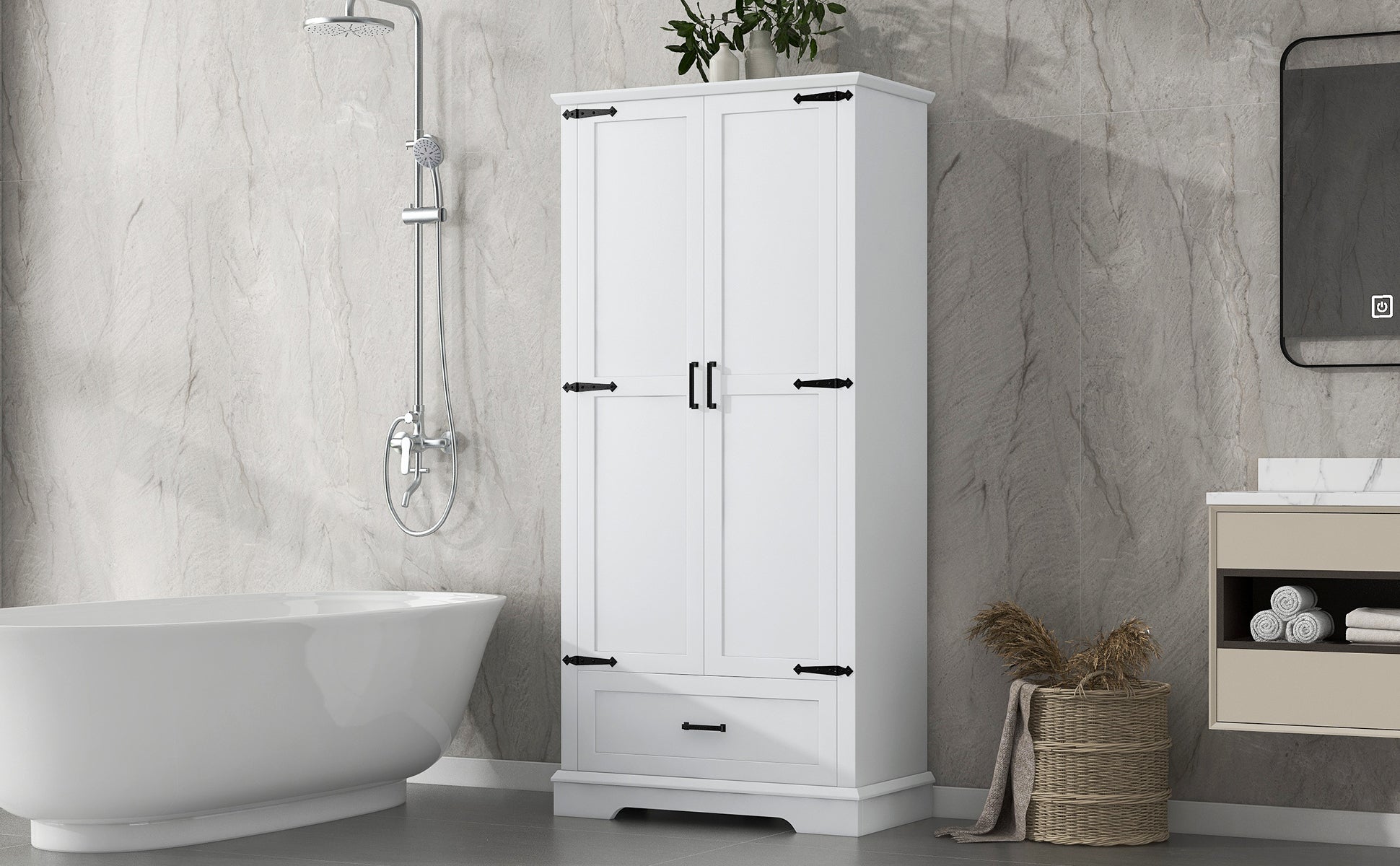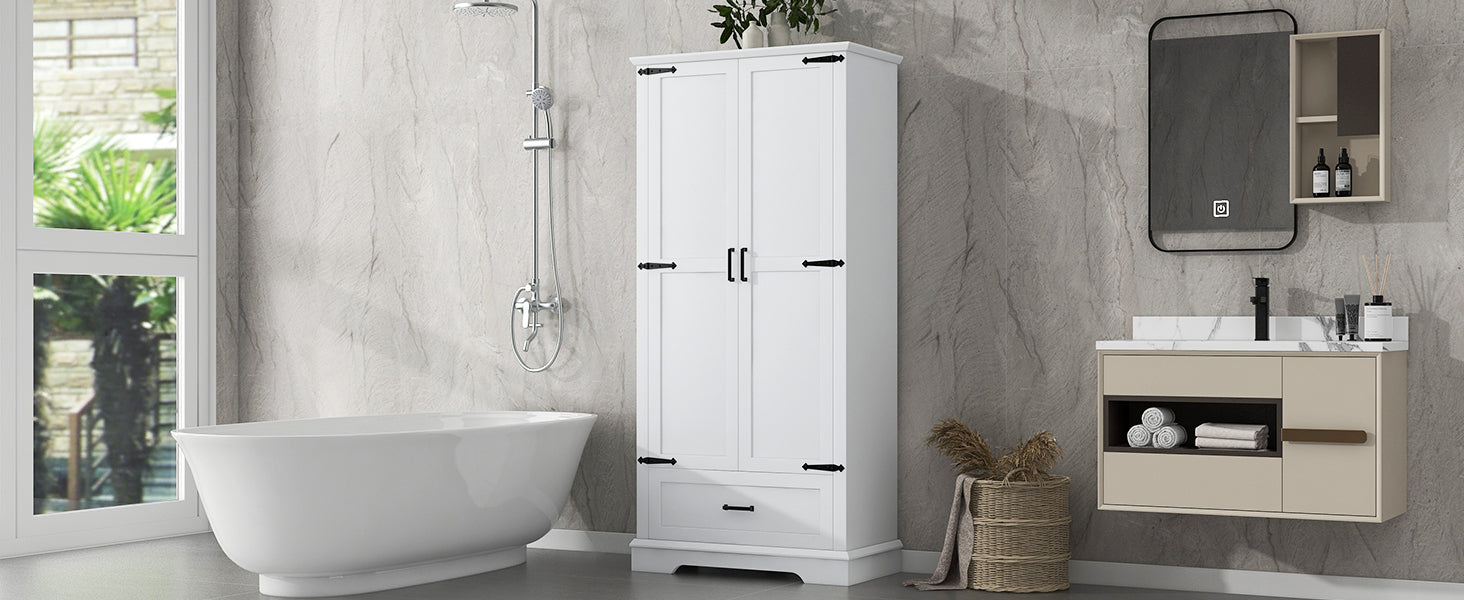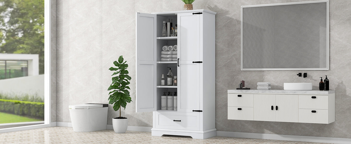 Tall Bathroom Storage Cabinet, Cabinet With Two Doors And One Drawer, Adjustable Shelf, Mdf Board, White White Mdf