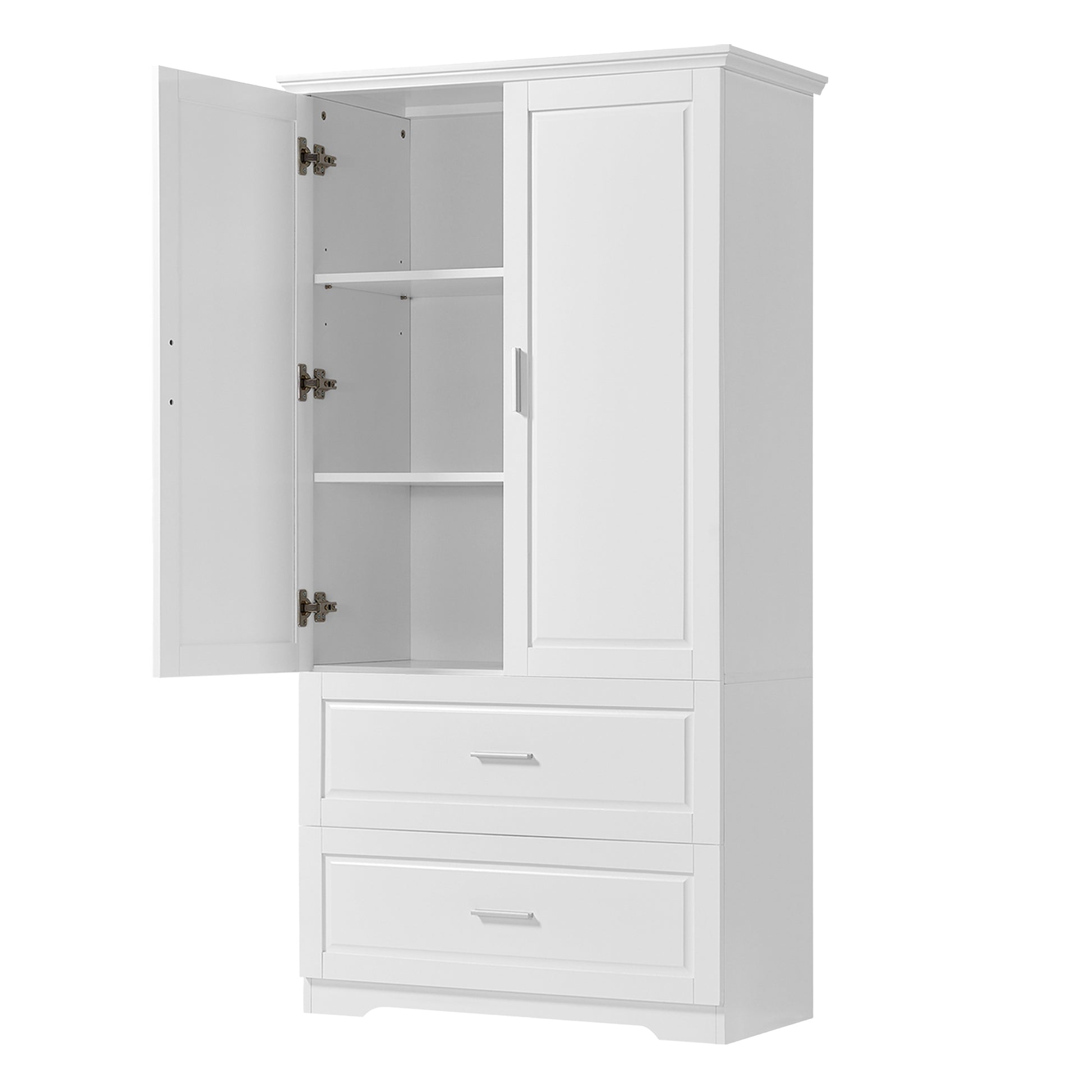 Tall Bathroom Storage Cabinet, Cabinet With Two Doors And Drawers, Adjustable Shelf, Mdf Board, White White Mdf