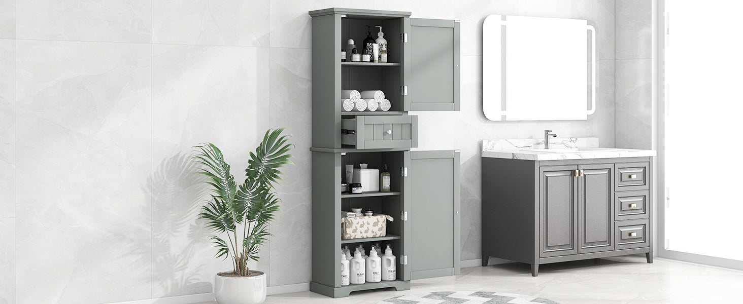 Tall Bathroom Storage Cabinet, Freestanding Storage Cabinet With Drawer And Adjustable Shelf, Mdf Board With Painted Finish, Grey Grey Mdf