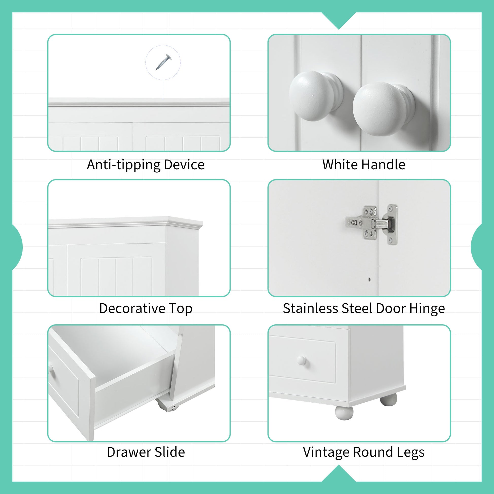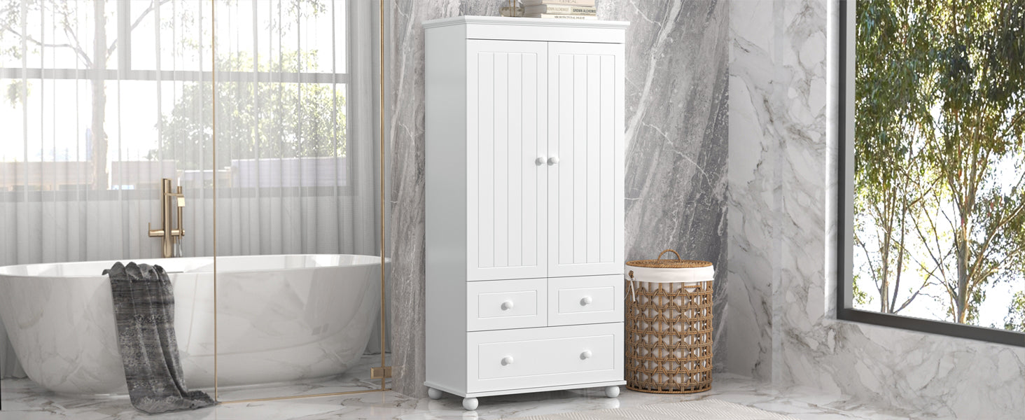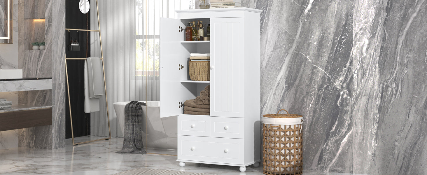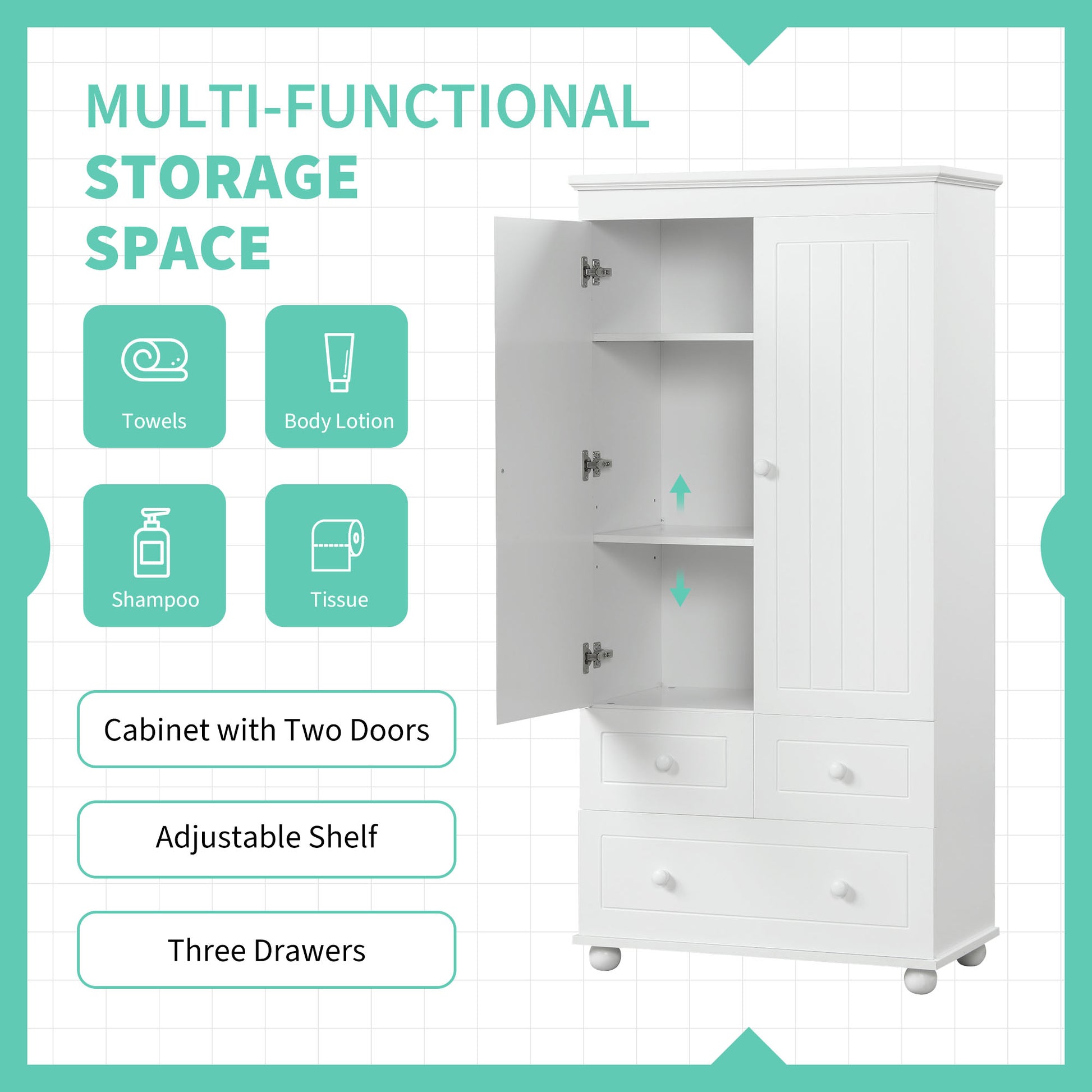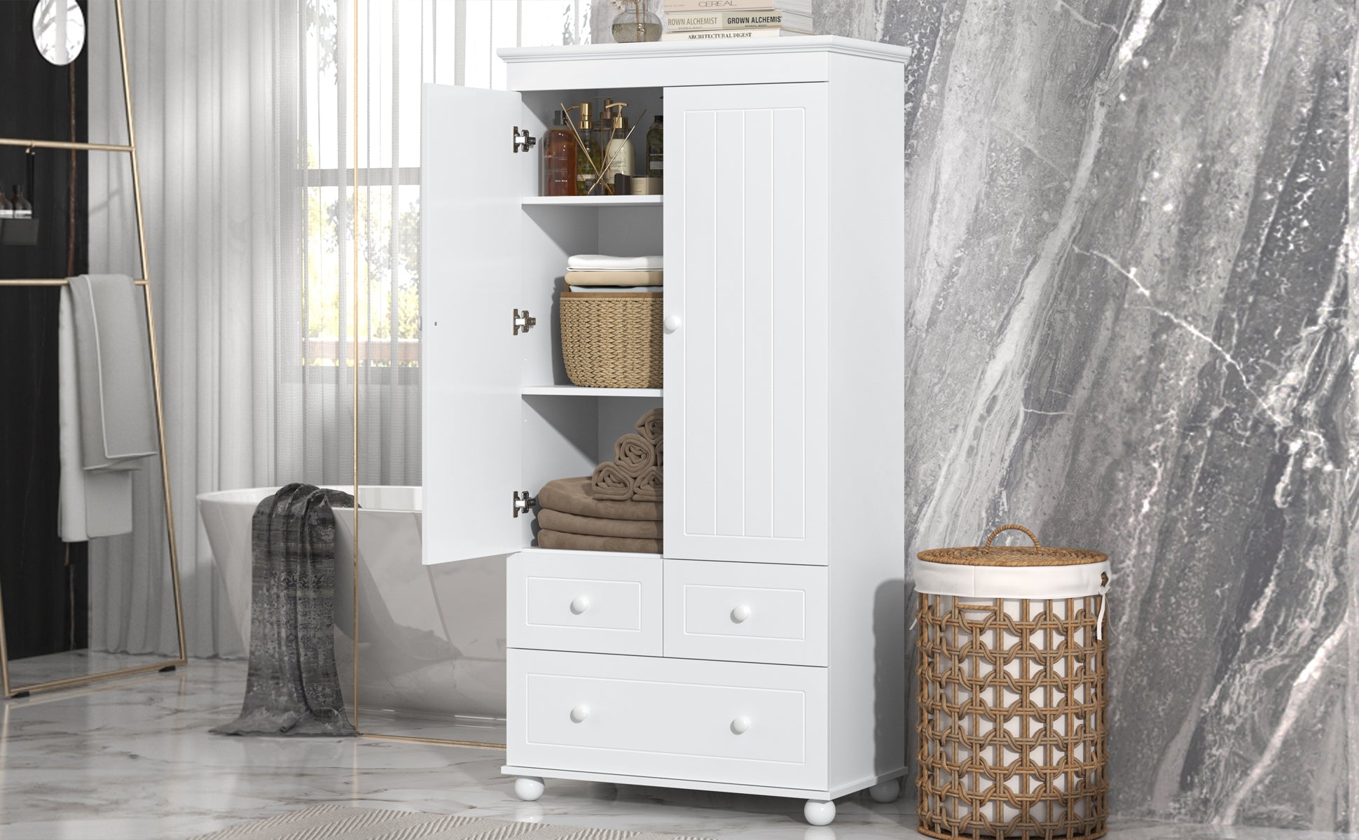 Tall Storage Cabinet With Three Drawers For Bathroom Office, White White Mdf