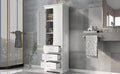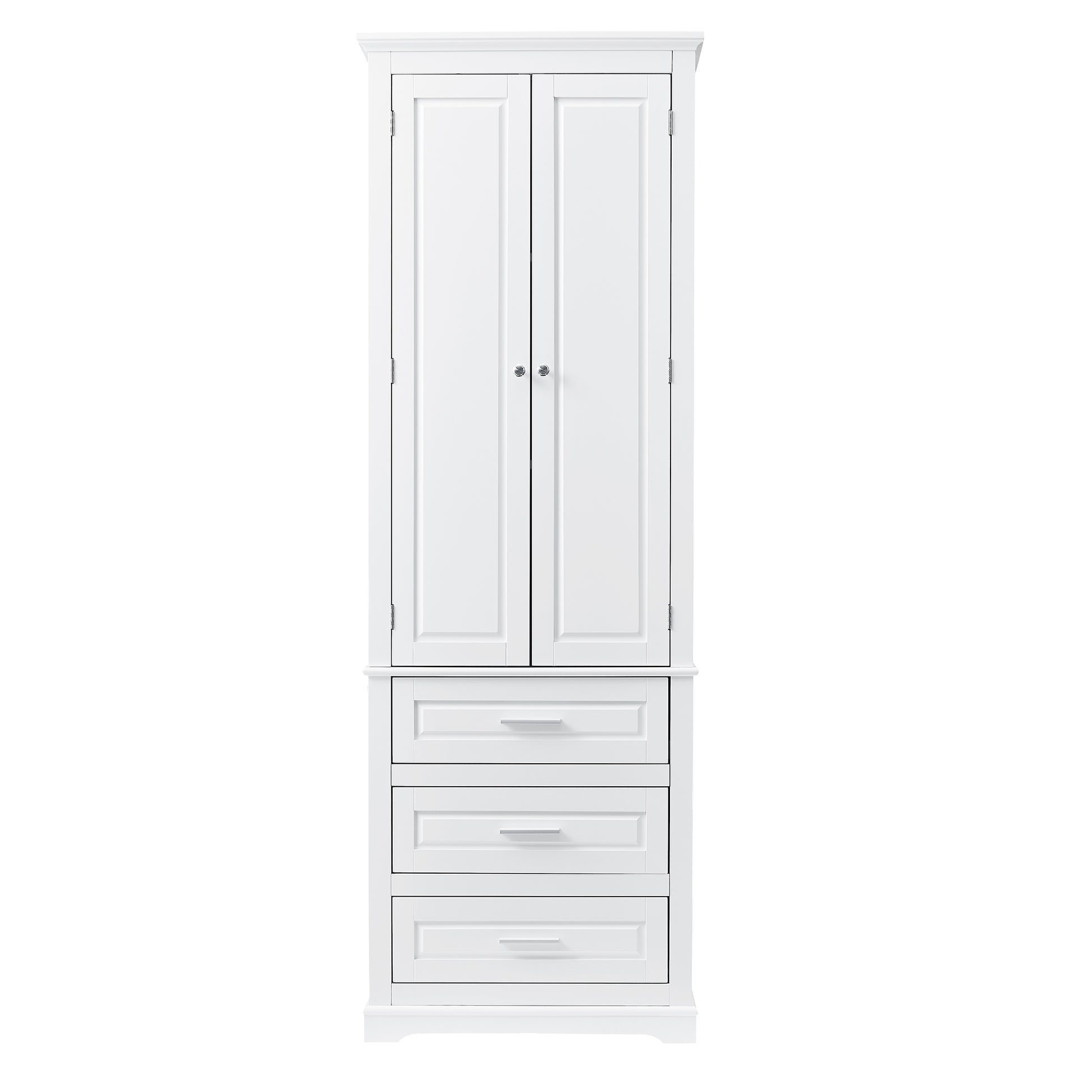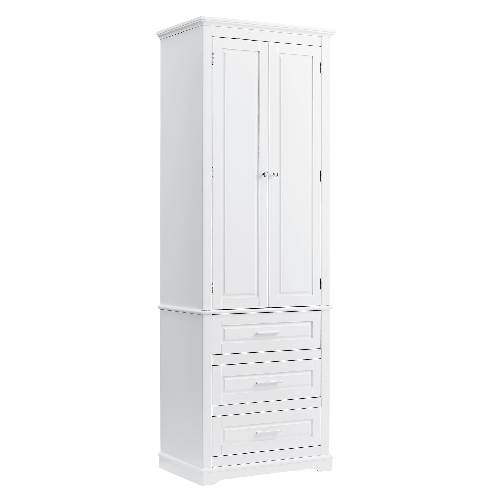 Tall Storage Cabinet With Three Drawers For Bathroom Office, White White Mdf