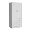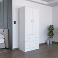 Taly Armoire With Double Doors, 2 Drawers, And Hanging Rod White White Particle Board