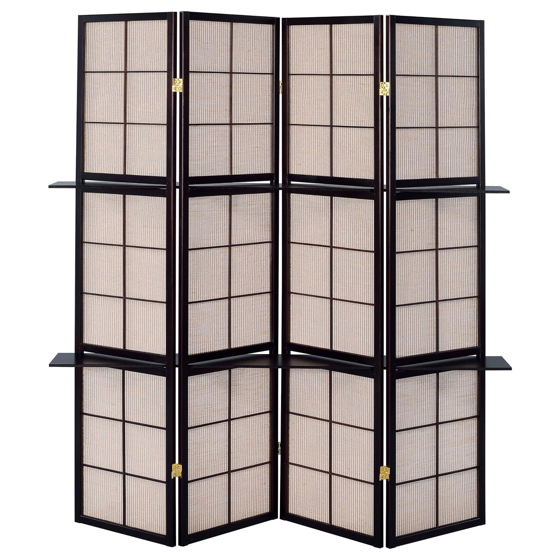 Tan And Cappuccino 4 Panel Folding Screen Brown Transitional Wood