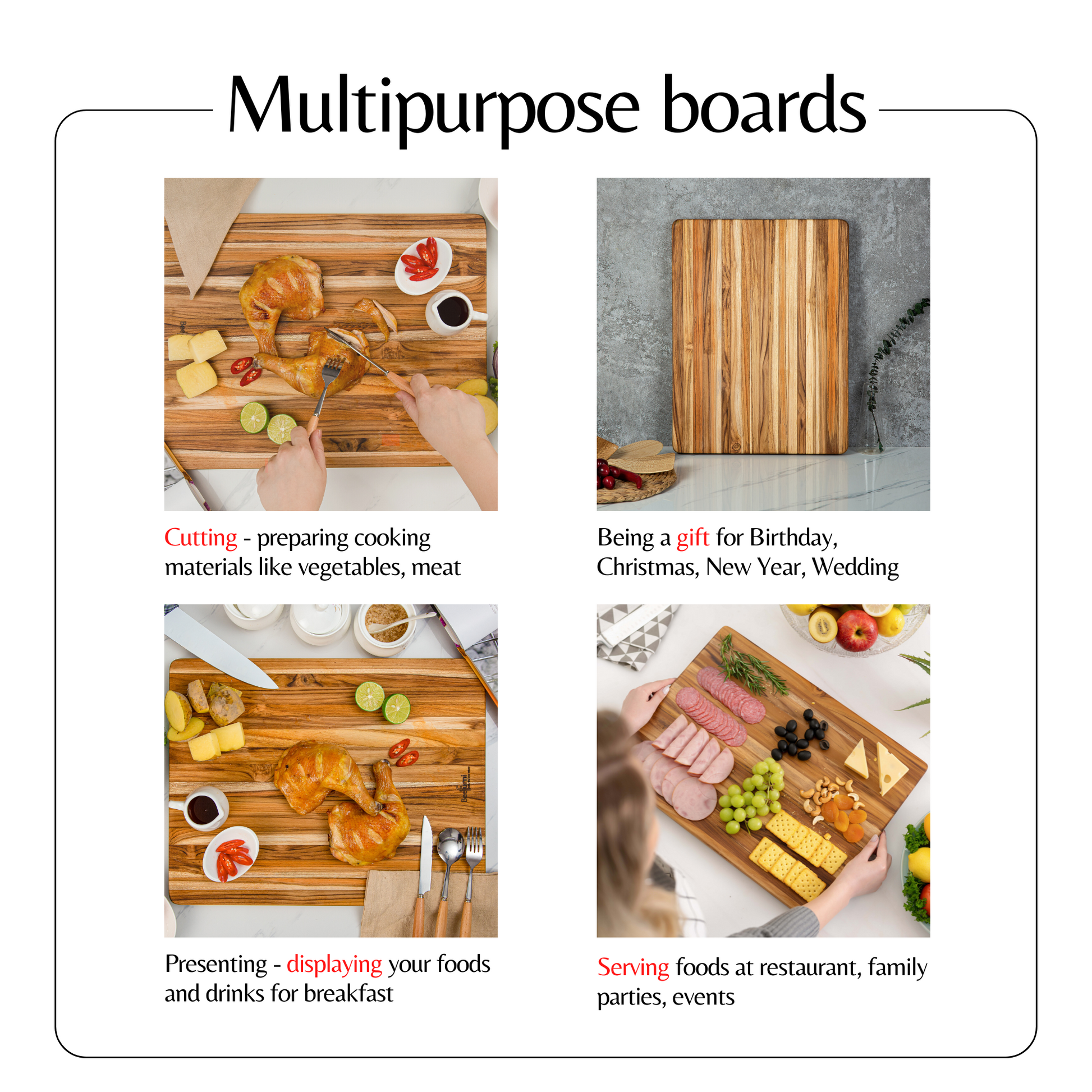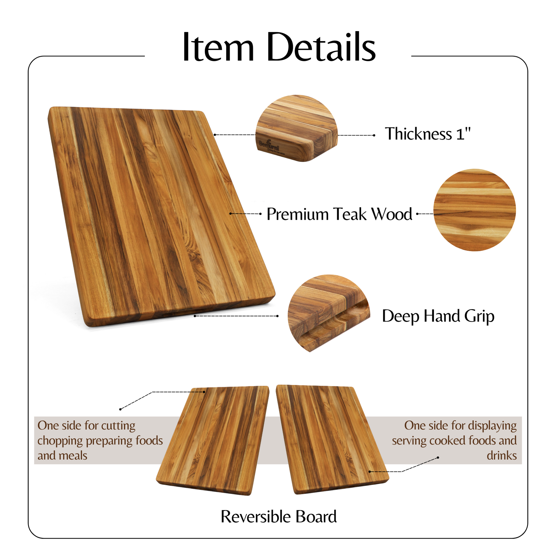 Teak Cutting Board Reversible Chopping Serving Board Multipurpose Food Safe Thick Board, Medium Size 18X14X1 Inches Natural Solid Wood
