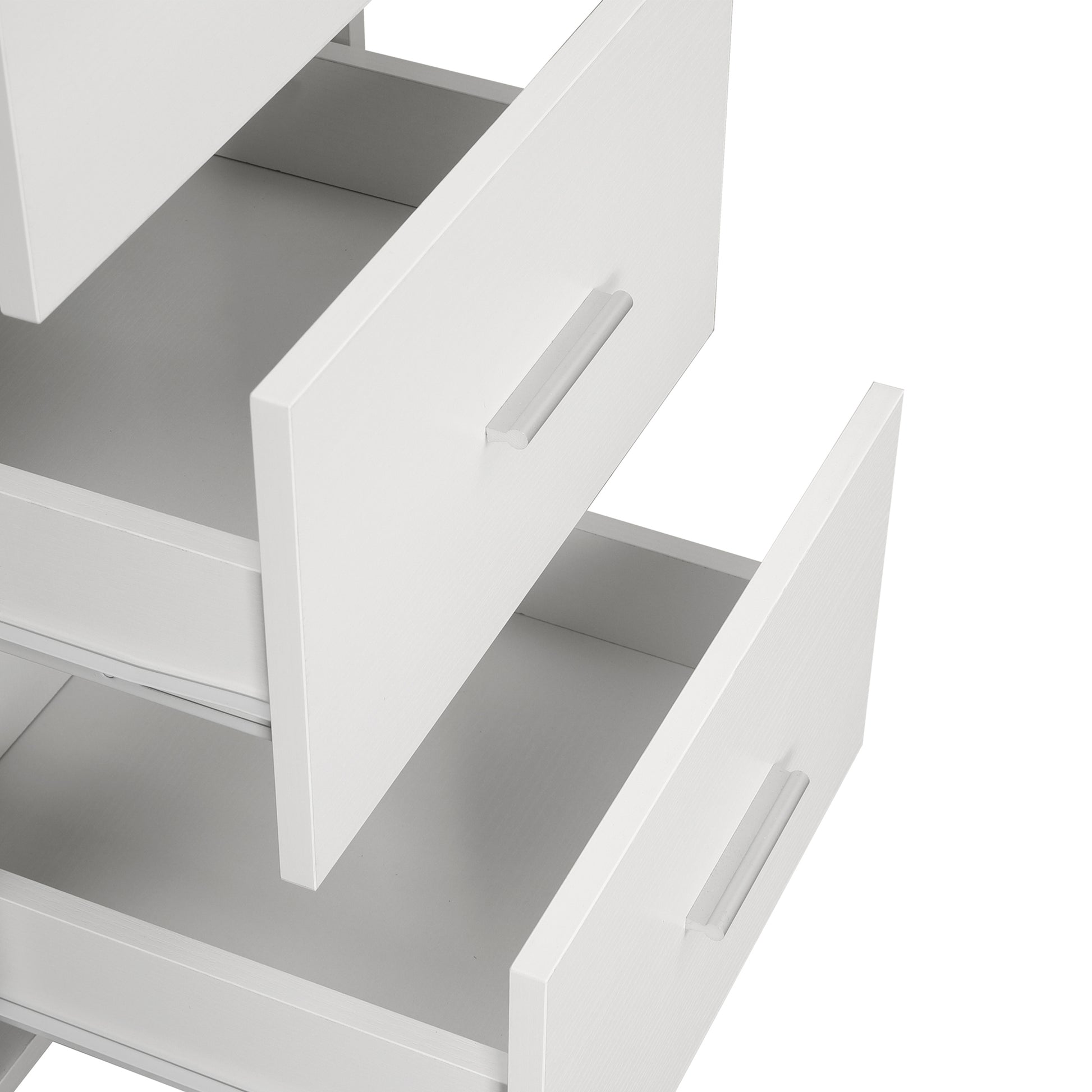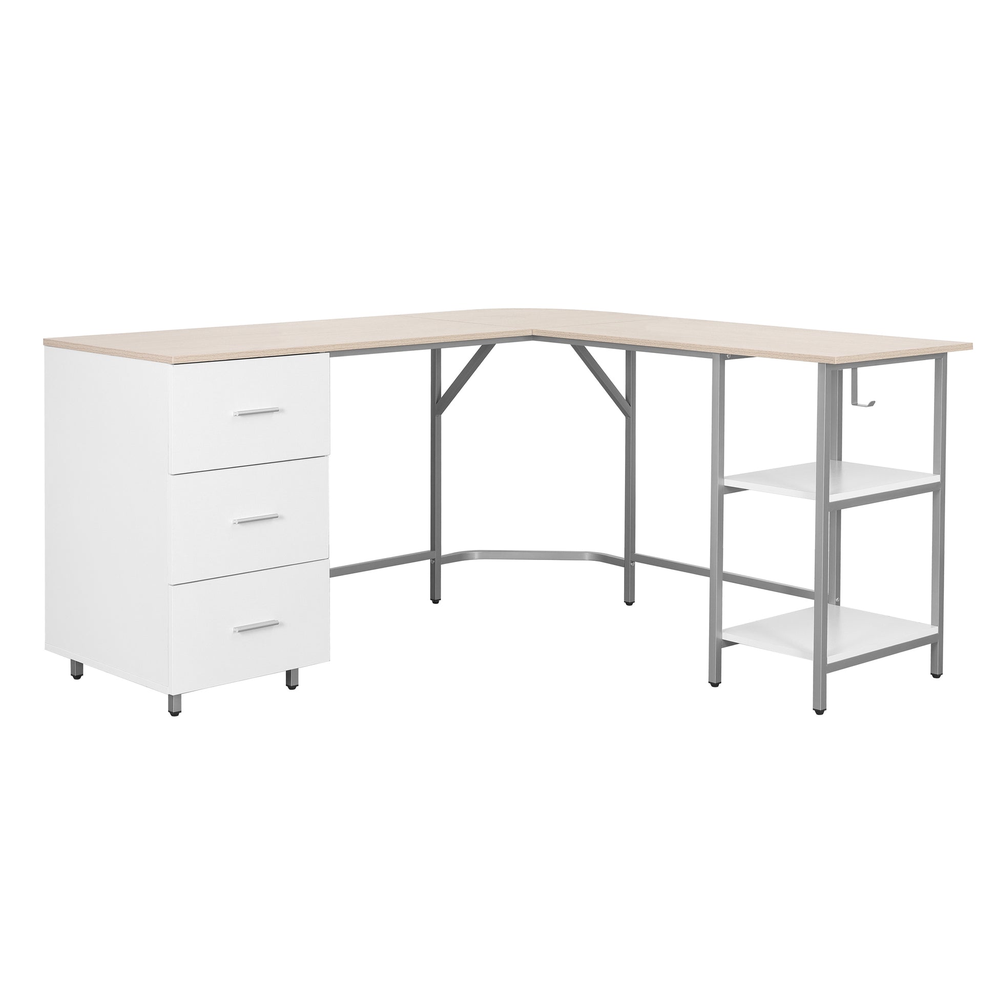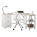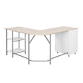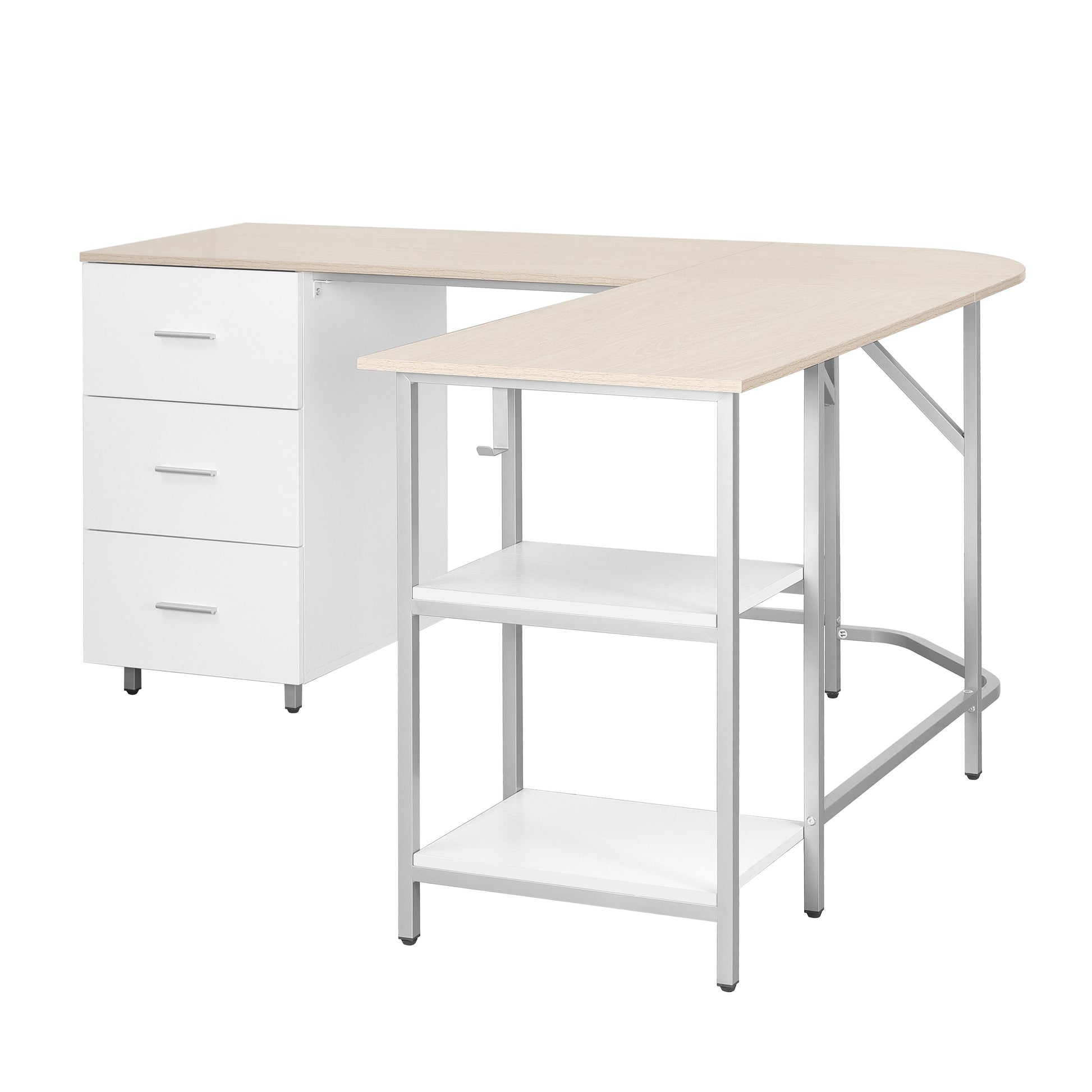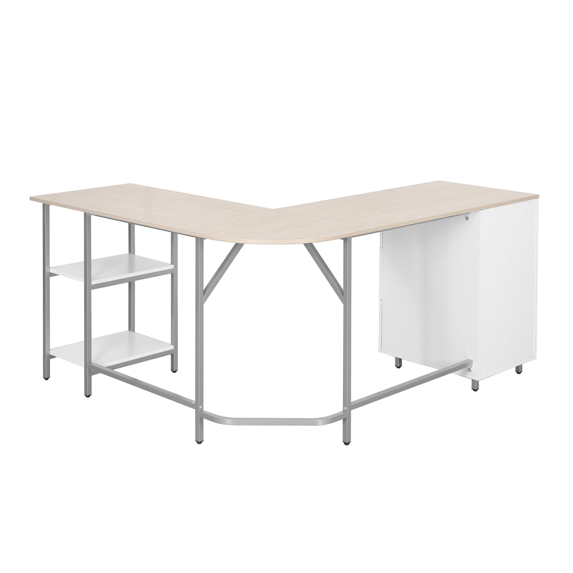 Techni Mobili L Shape Home Office Two Tone Desk With Storage, Sand Sand Computer Desk Office Modern L Shape Engineered Wood
