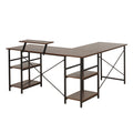 Techni Mobili L Shape Industrial Desk With Storage Shelves, Walnut Walnut Computer Desk Office Modern L Shape Particle Board