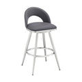 Teco 26 Inch Swivel Counter Stool, Chrome, Curved Back, Gray Faux Leather Gray Steel