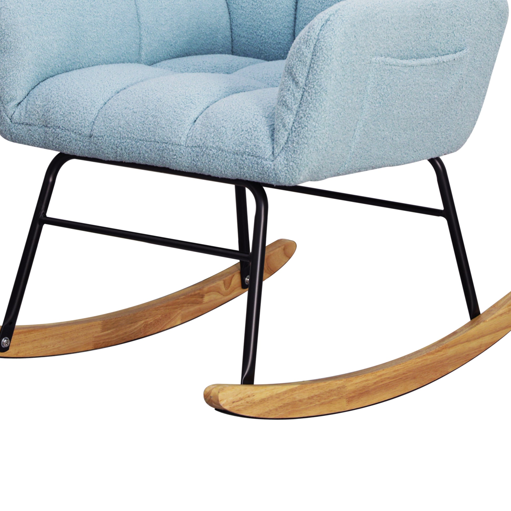 Teddy Fabric Rocking Chair, Modern Rocking Accent Chair For Nursery, Living Room, Bedroom, Sky Blue Metal Blue Bedroom Foam Modern Rocking Chairs Foam Wood Metal