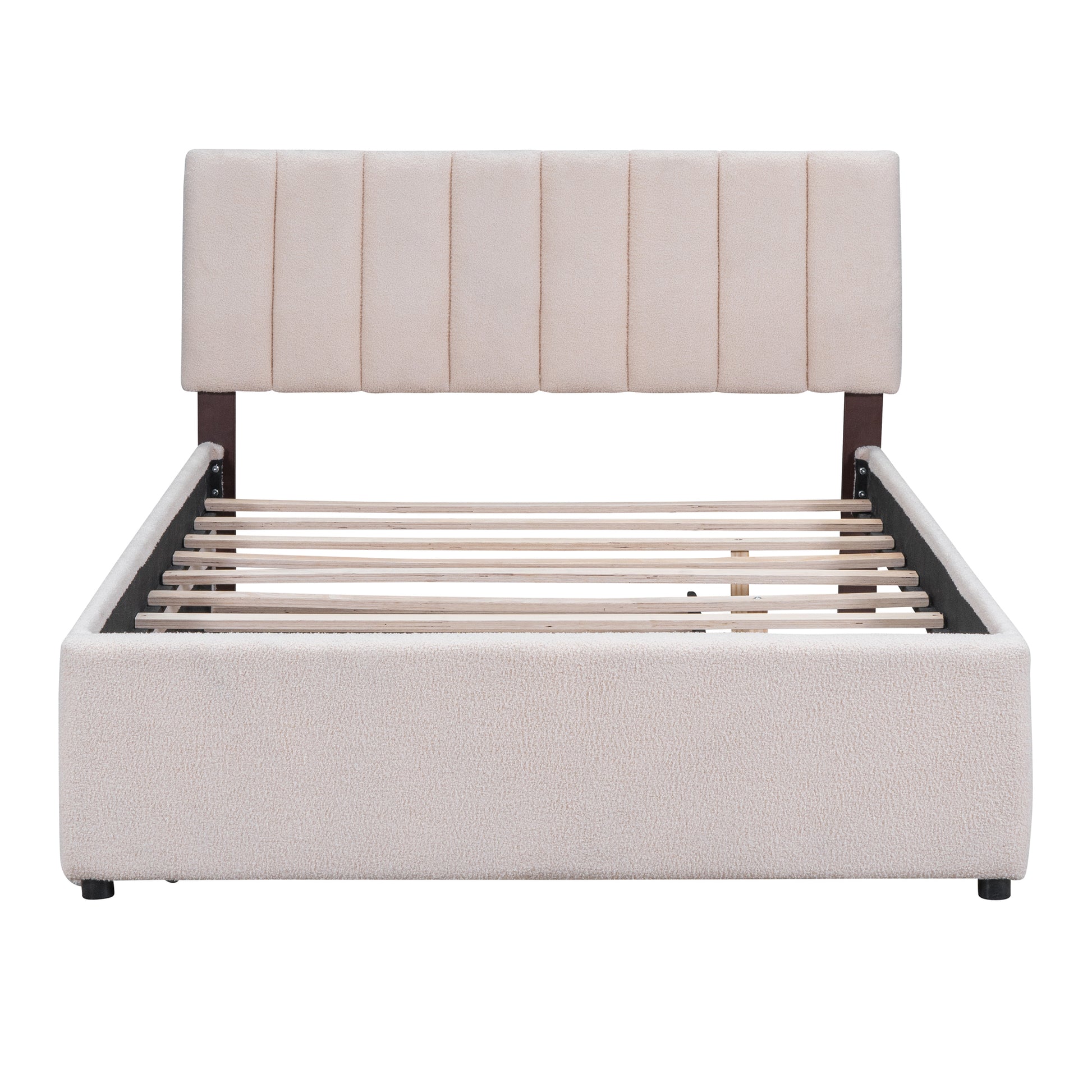 Teddy Fleece Full Size Upholstered Platform Bed With Trundle, Beige Full Beige Fleece