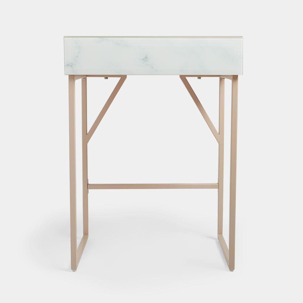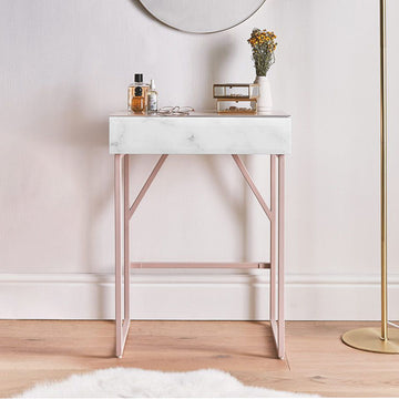 Tempered Glass Marble Pattern Small Makeup Table Dressing Table Nightstands Bedroom Livingroom Furniture Pink White Wood Glass