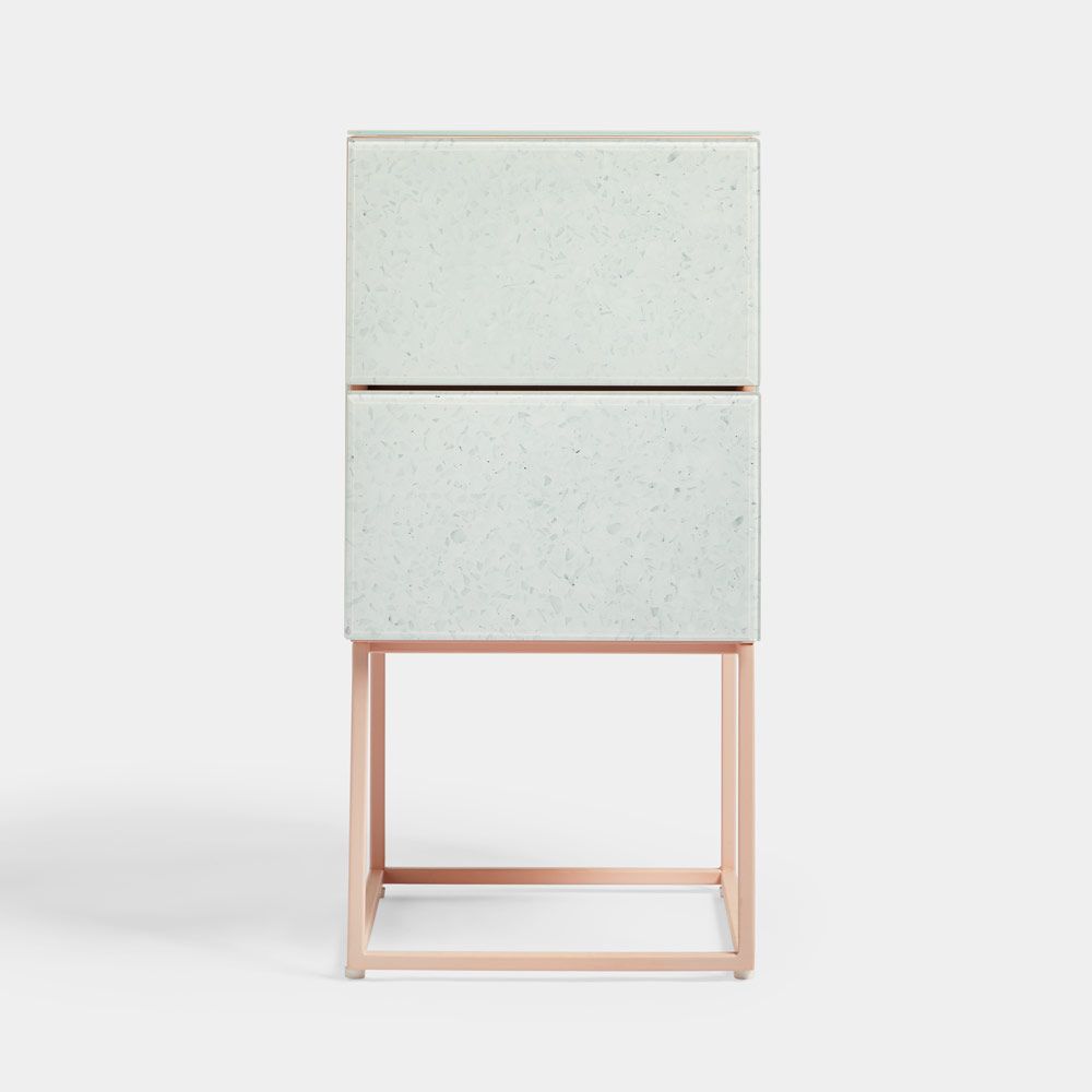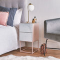 Tempered Glass Marble Stone Double Drawer Bedside Table For Bedroom, Living Room Pink White Mdf Glass