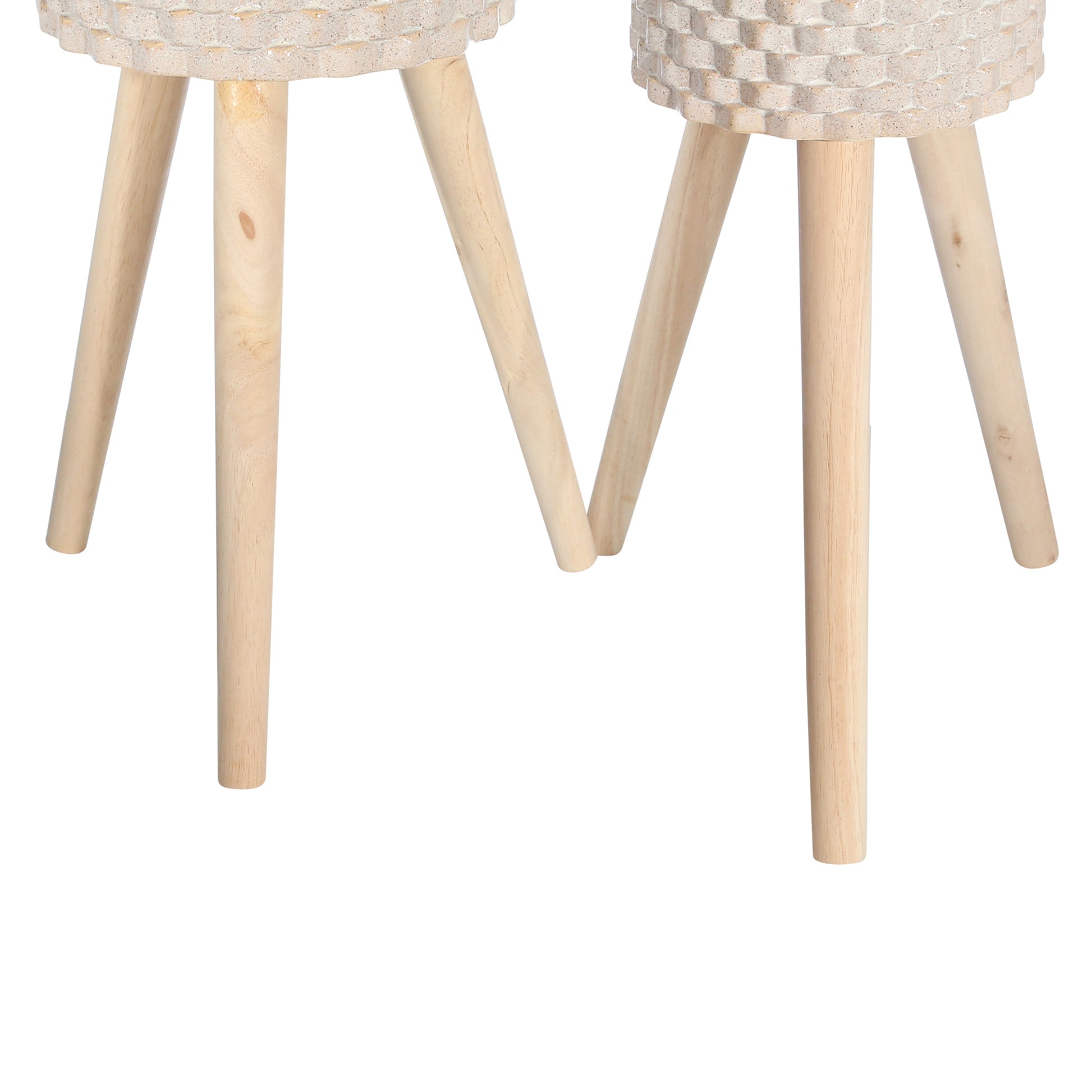 Textured Ceramic Planter With Tripod Legs, Set Of 2, Cream And Brown Cream Wood