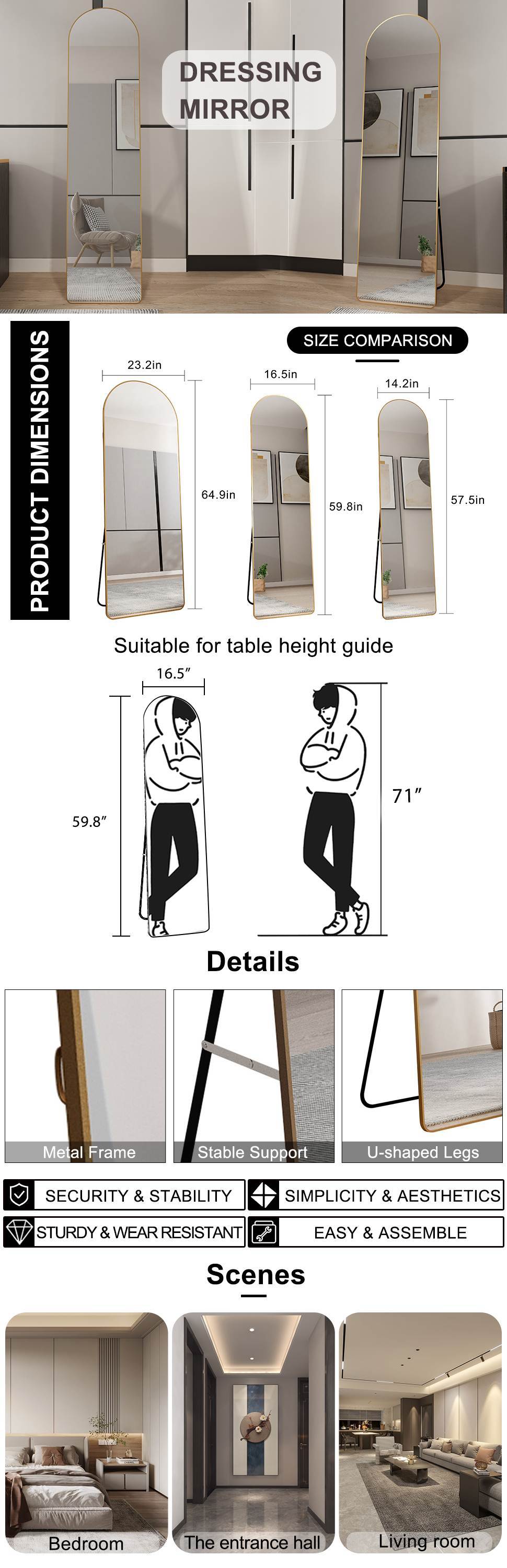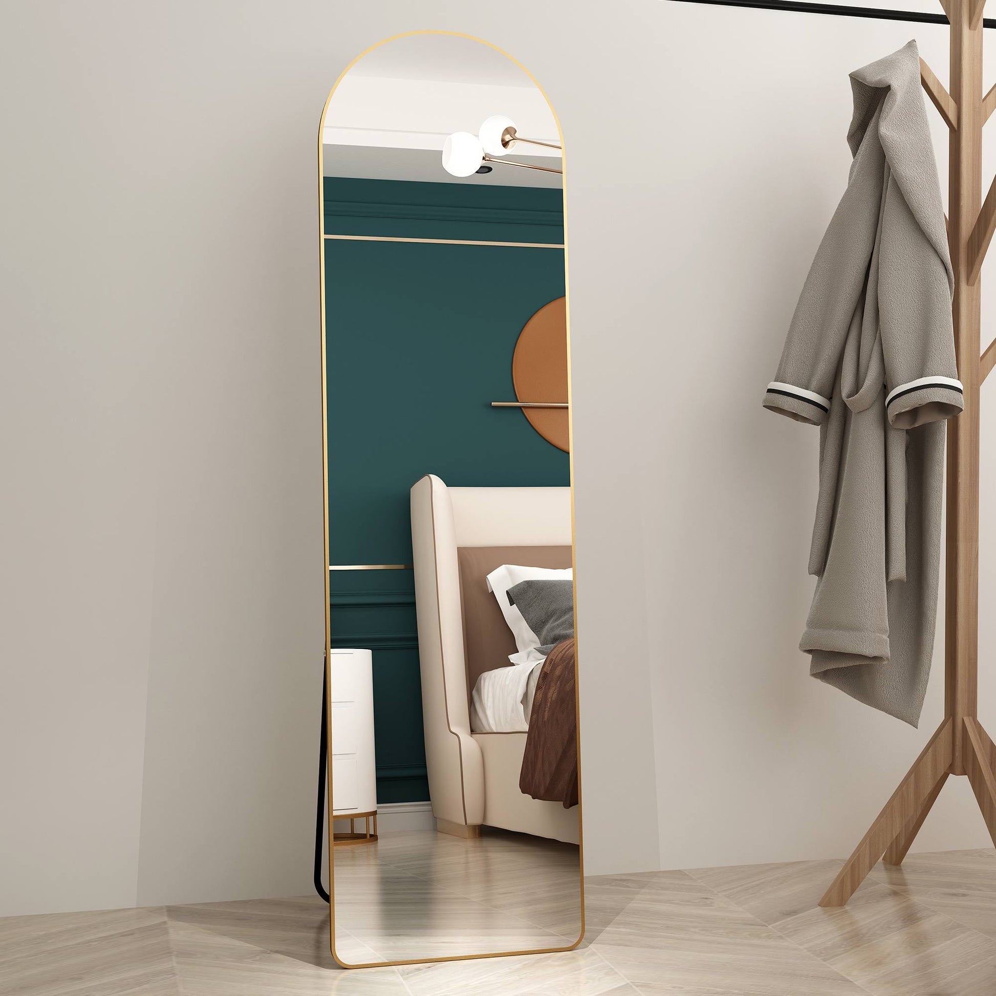 The Third Generation Floor Mounted Full Length Rearview Mirror. Aluminum Alloy Metal Frame Arched Wall Mirror, Bathroom Makeup Mirror, Clothing Store, Wall Mounted. Gold 60 "*16.5"W115158172 Golden Glass
