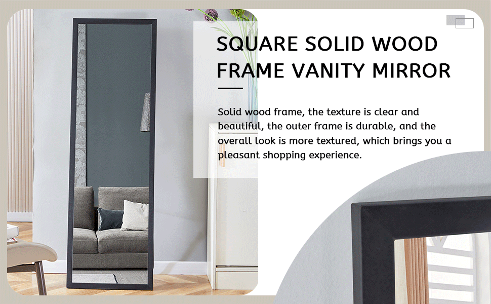 Third Generation, Black Thick Wooden Frame Full Body Mirror, Large Floor Standing Mirror, Dressing Mirror, Decorative Mirror, Suitable For Bedrooms, Living Rooms, Clothing Stores57.9"*18.1" Black Solid Wood