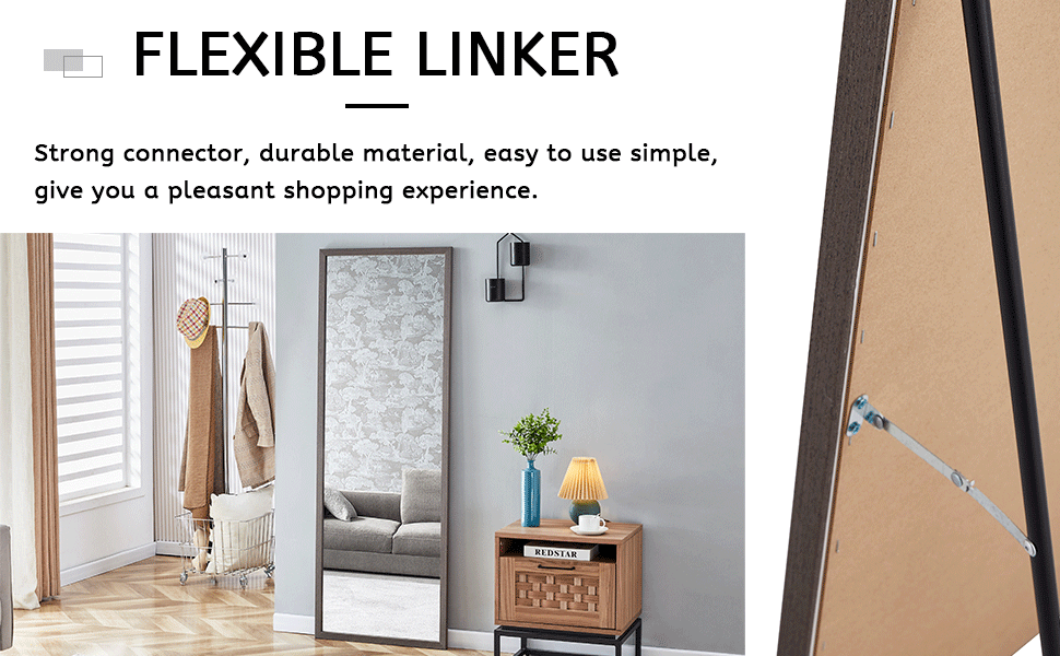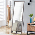 Third Generation Packaging Upgrade, Thickened Frame, Gray Wood Grain Solid Wood Frame Full Length Mirror, Dressing Mirror, Bedroom Entrance, Decorative Mirror, Floor Standing Mirror. 65"*22.8" Gray Solid Wood