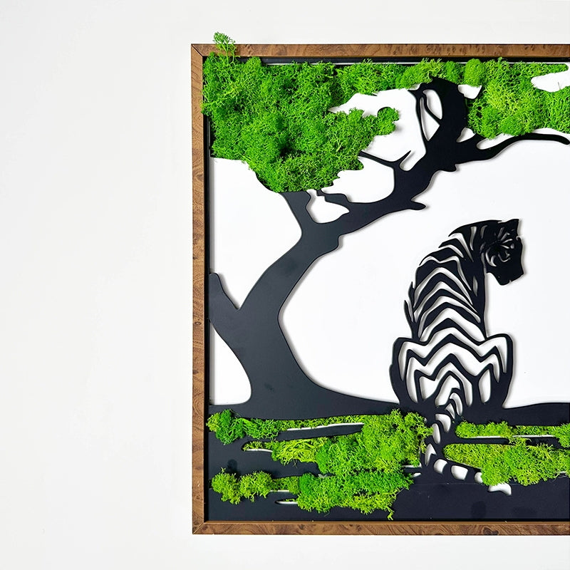 Tiger Metal Art Moss Wall Decor Green Iron