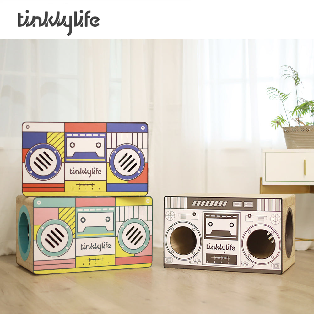 Tinklylife Cat Condo Scratcher Post Cardboard, Rectangle Shape Stereo Pattern Cat Scratching House Bed, Green Colour Multicolor Carbon Fiber