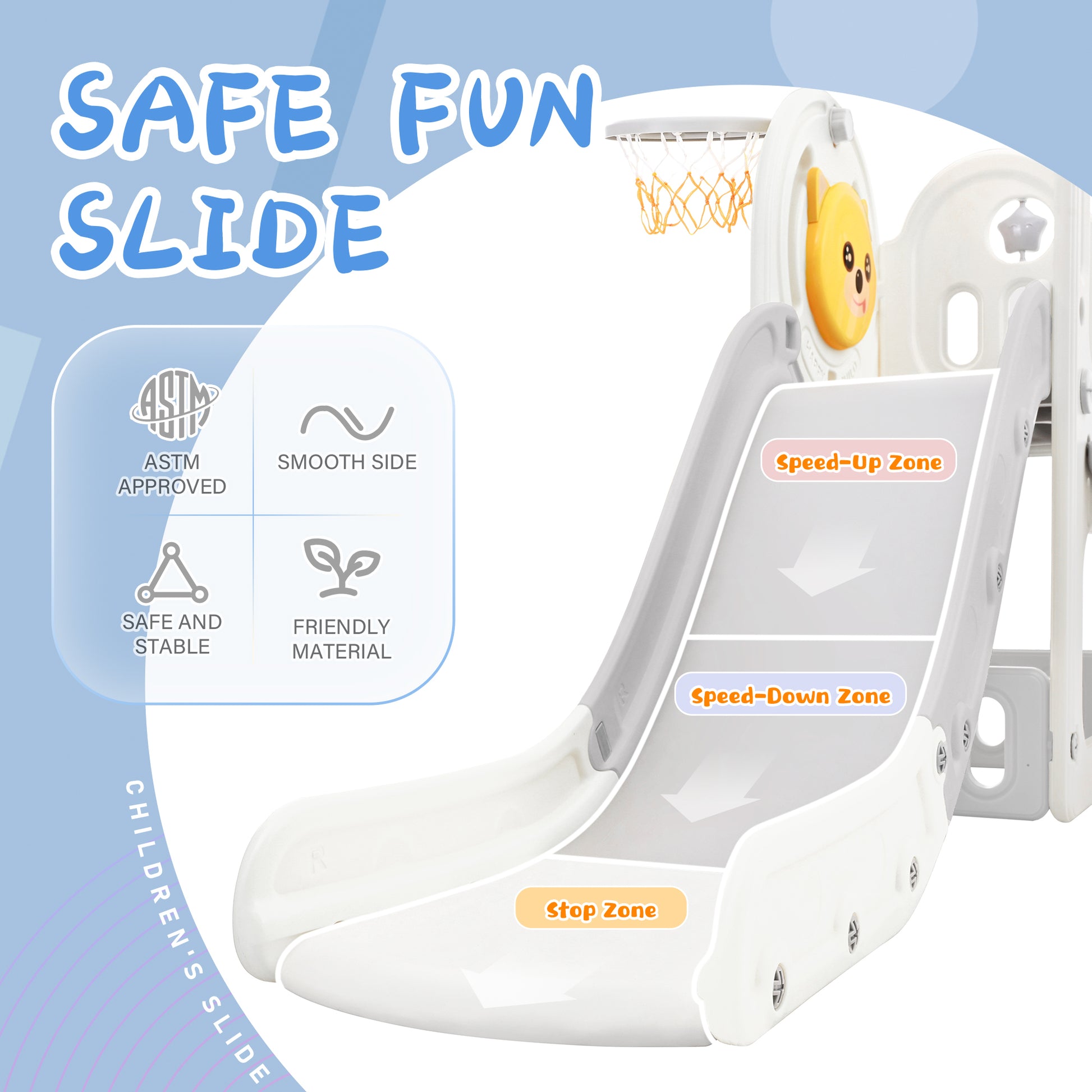 Toddler Climber And Slide Set 4 In 1, Kids Playground Climber Freestanding Slide Playset With Basketball Hoop Play Combination For Babies Indoor & Outdoor Grey Hdpe