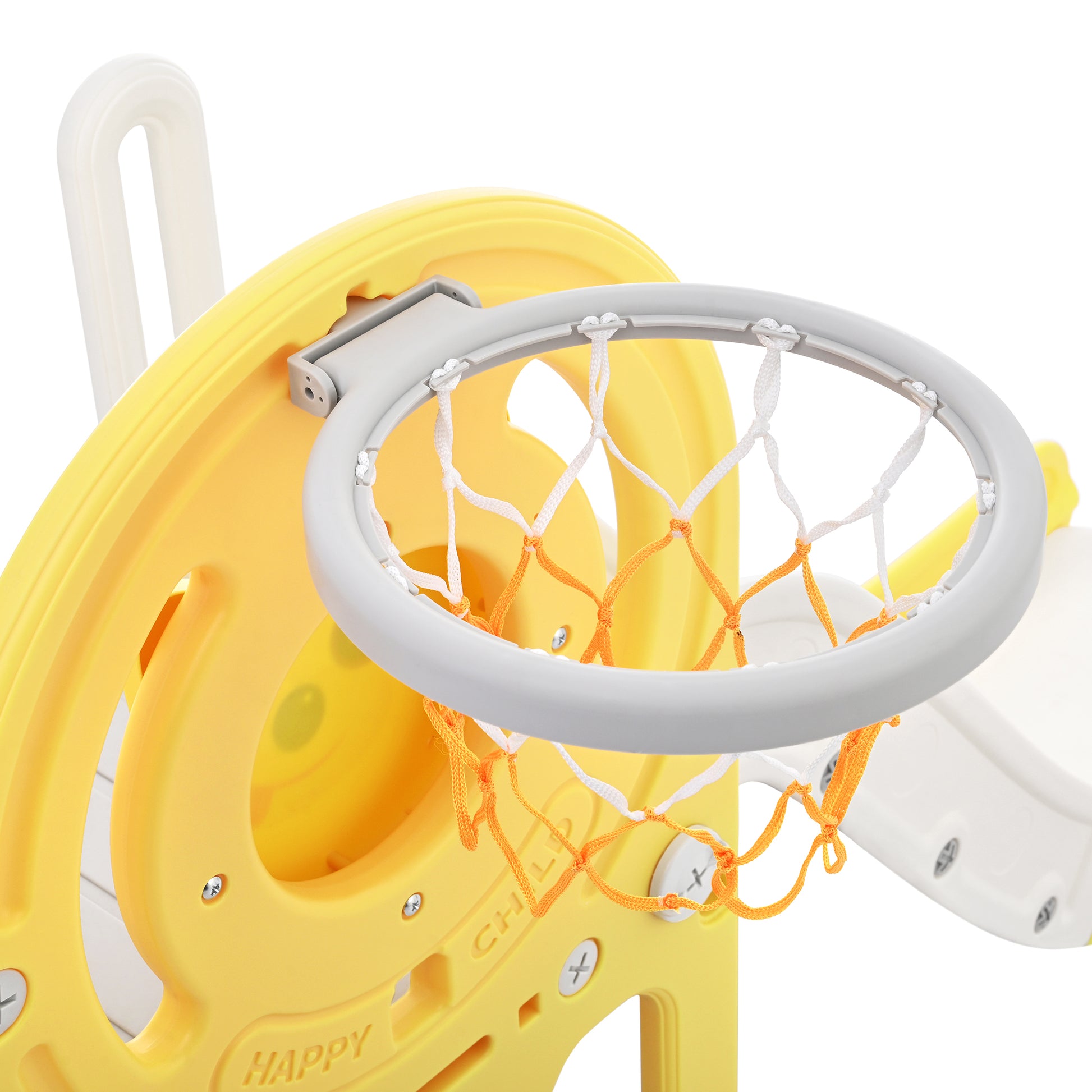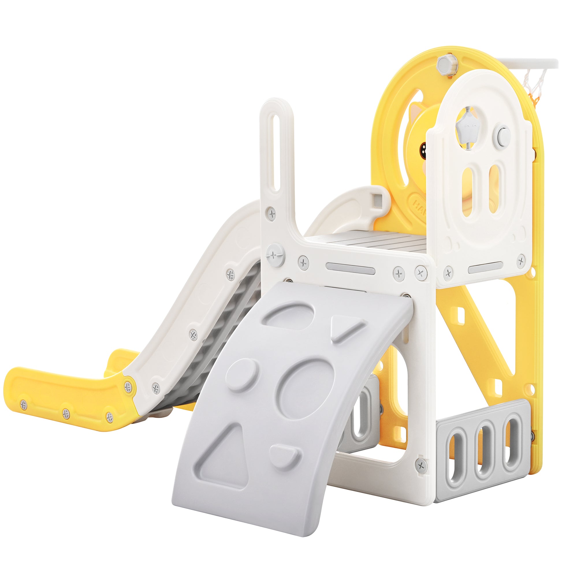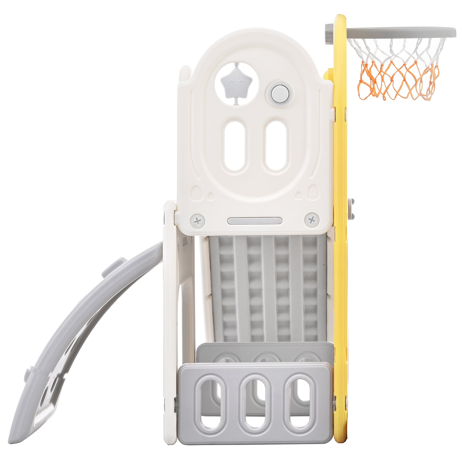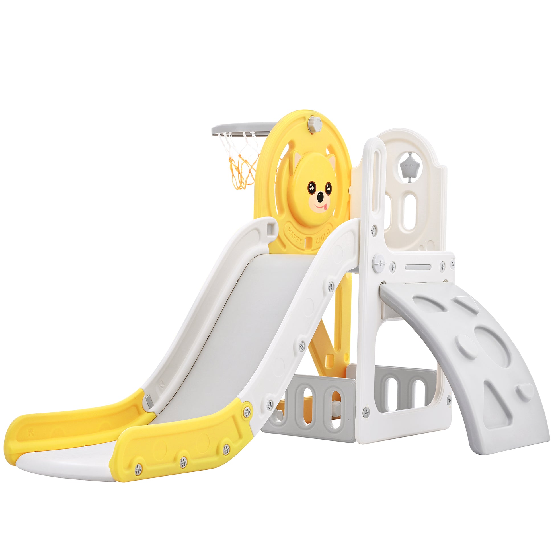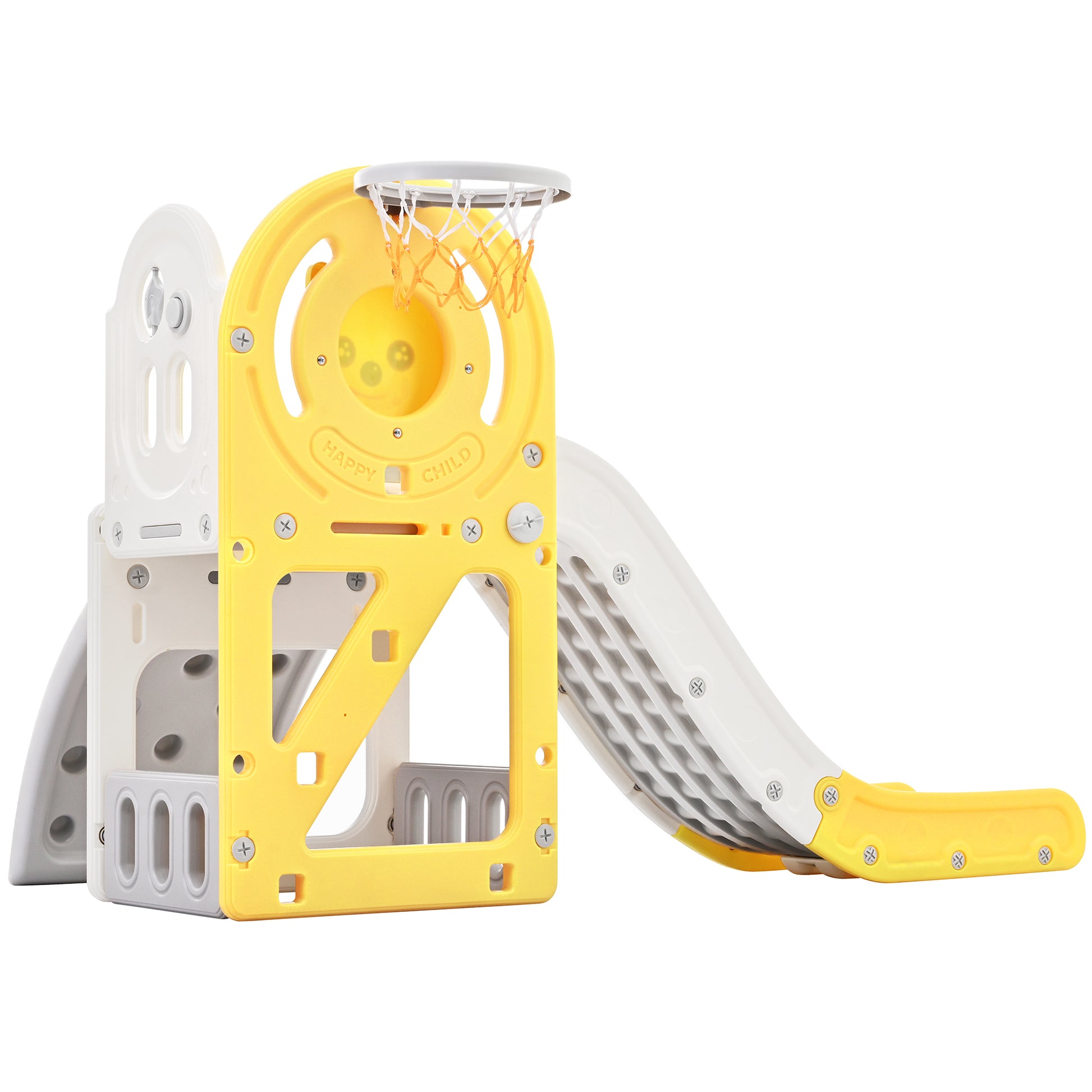 Toddler Climber And Slide Set 4 In 1, Kids Playground Climber Freestanding Slide Playset With Basketball Hoop Play Combination For Babies Indoor & Outdoor Yellow Hdpe