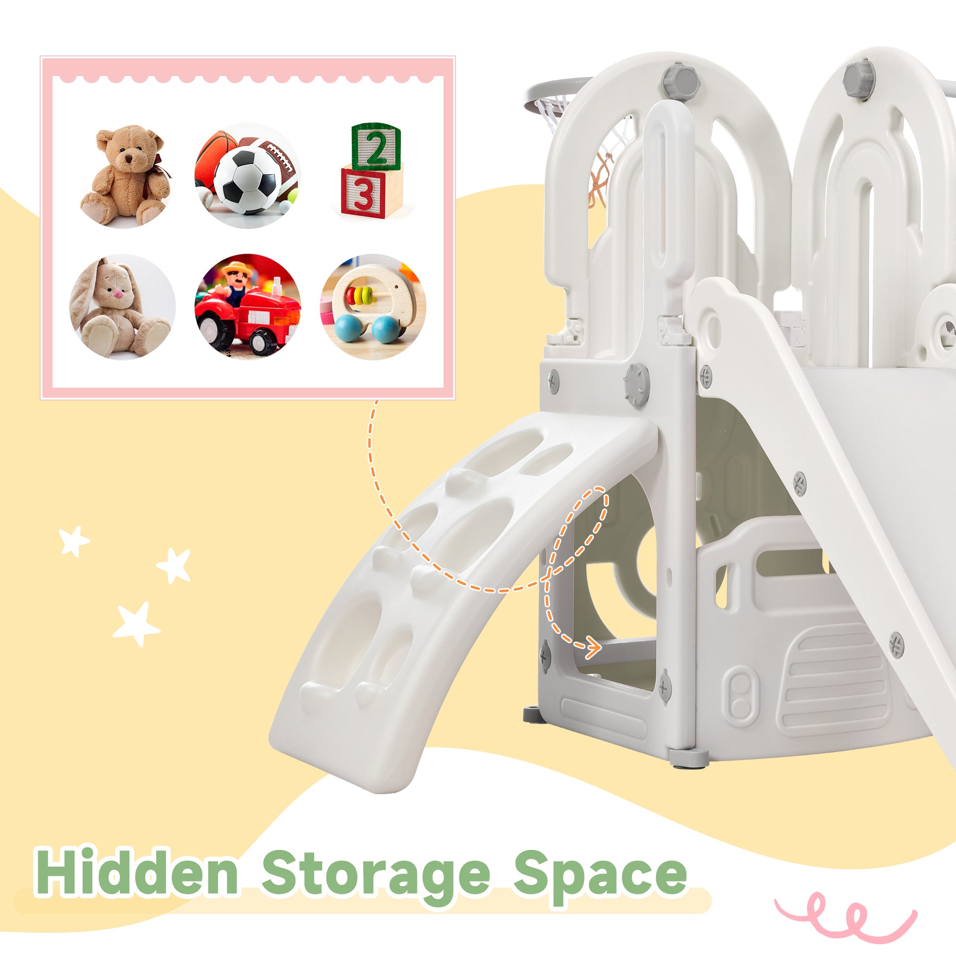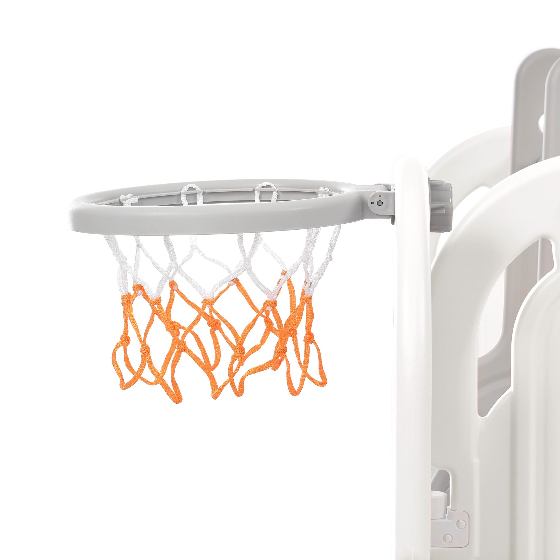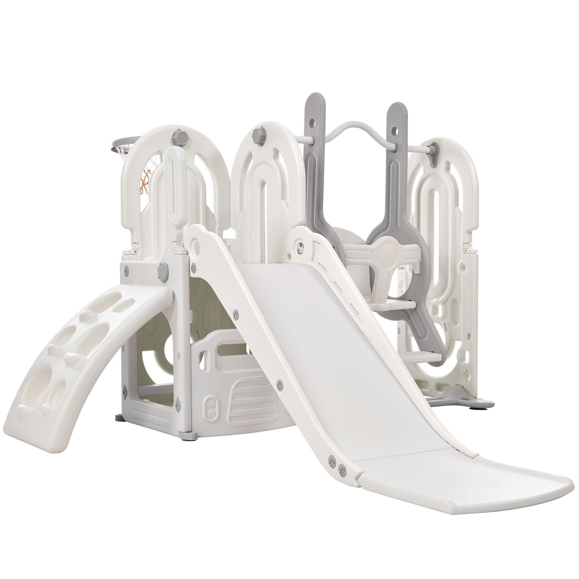 Toddler Slide And Swing Set 5 In 1, Kids Playground Climber Slide Playset With Basketball Hoop Freestanding Combination For Babies Indoor & Outdoor Gray Hdpe