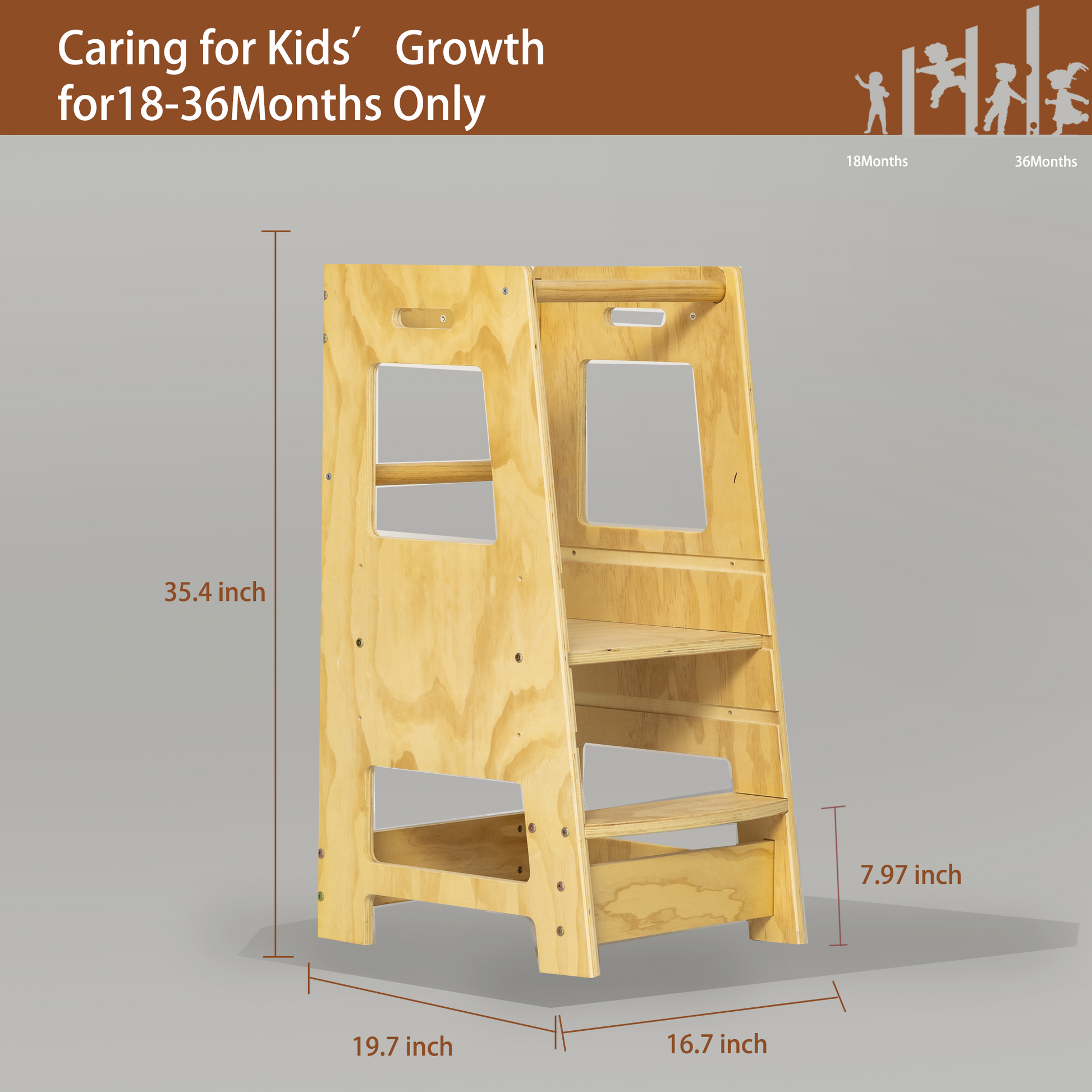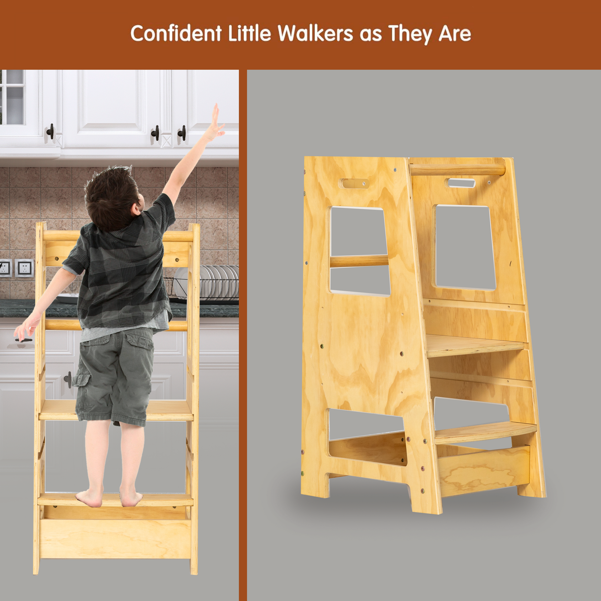 Toddler Standing Tower Kitchen Step Stool For Kid'S Adjustable Height Learning Stool, Toddler Kitchen Stool Helper Removable Anti Drop Safety Rail Stool For Bedroom, Bathroom, Natural Natural Wood